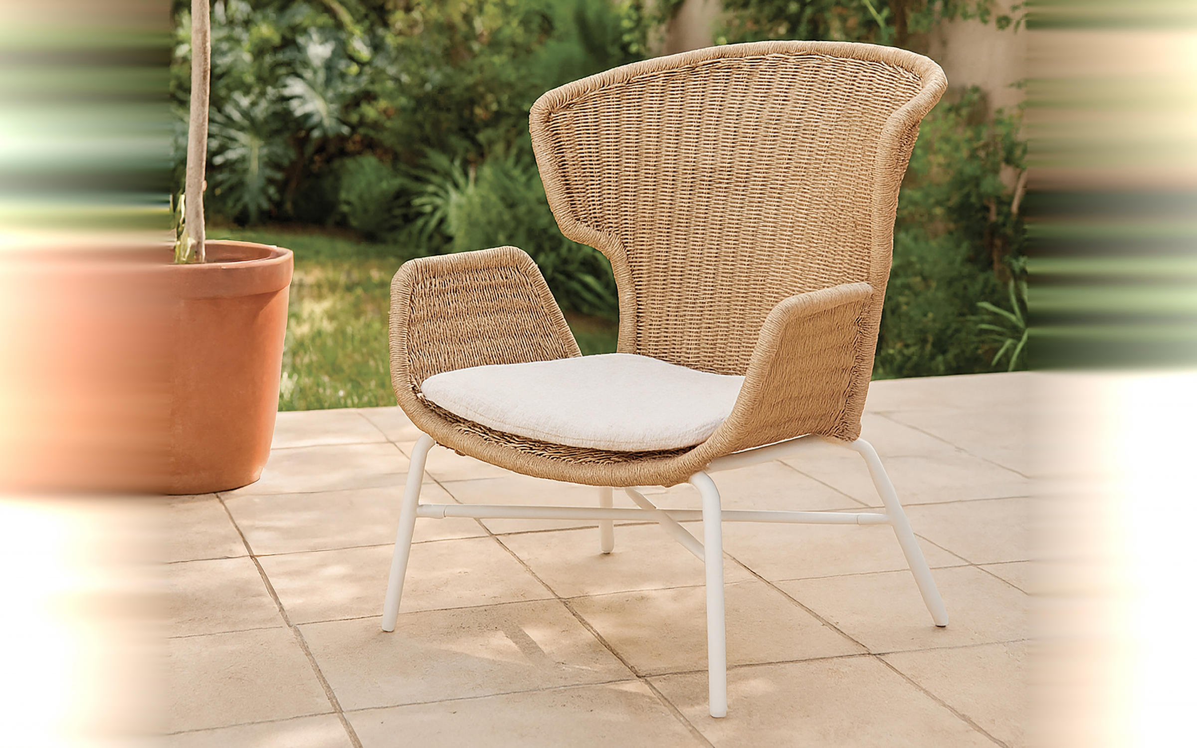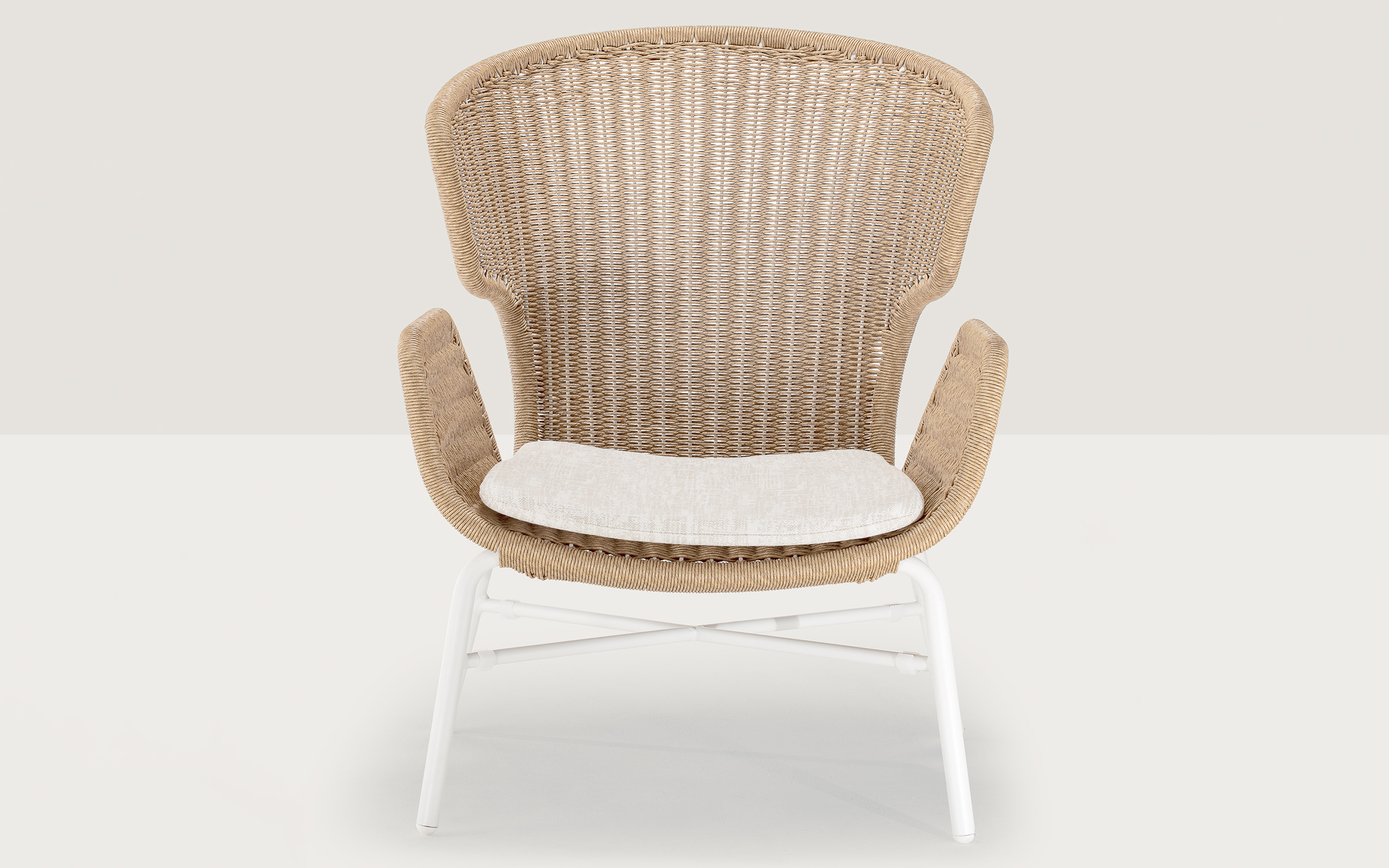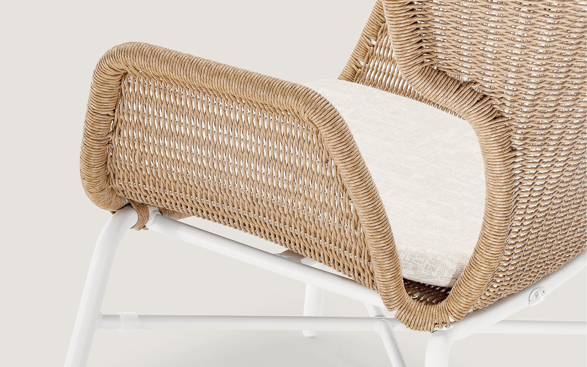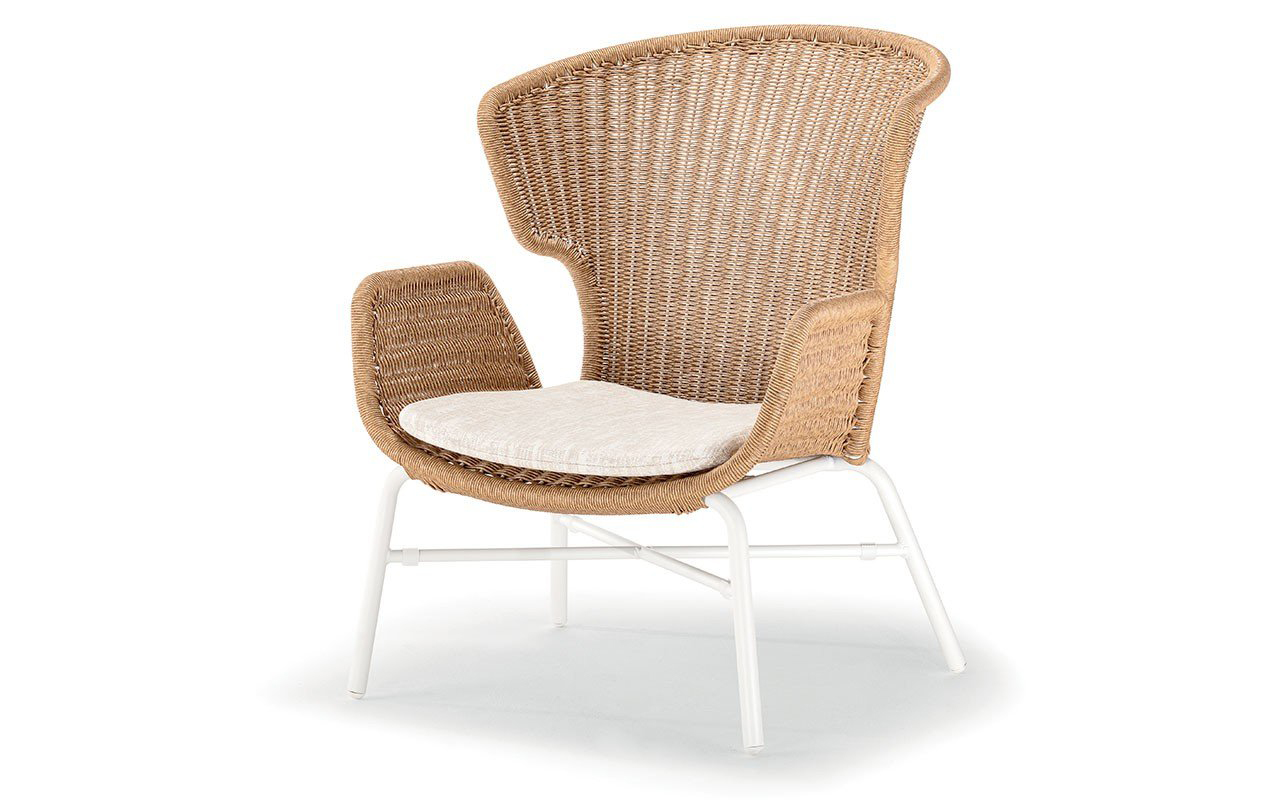 Wykorzystanie tej nowoczesnej plecionki sprawia, że fotel nie absorbuje wilgoci i jest wyjątkowo łatwy w pielęgnacji, oferując przy tym luksusową, miękką w dotyku fakturę.