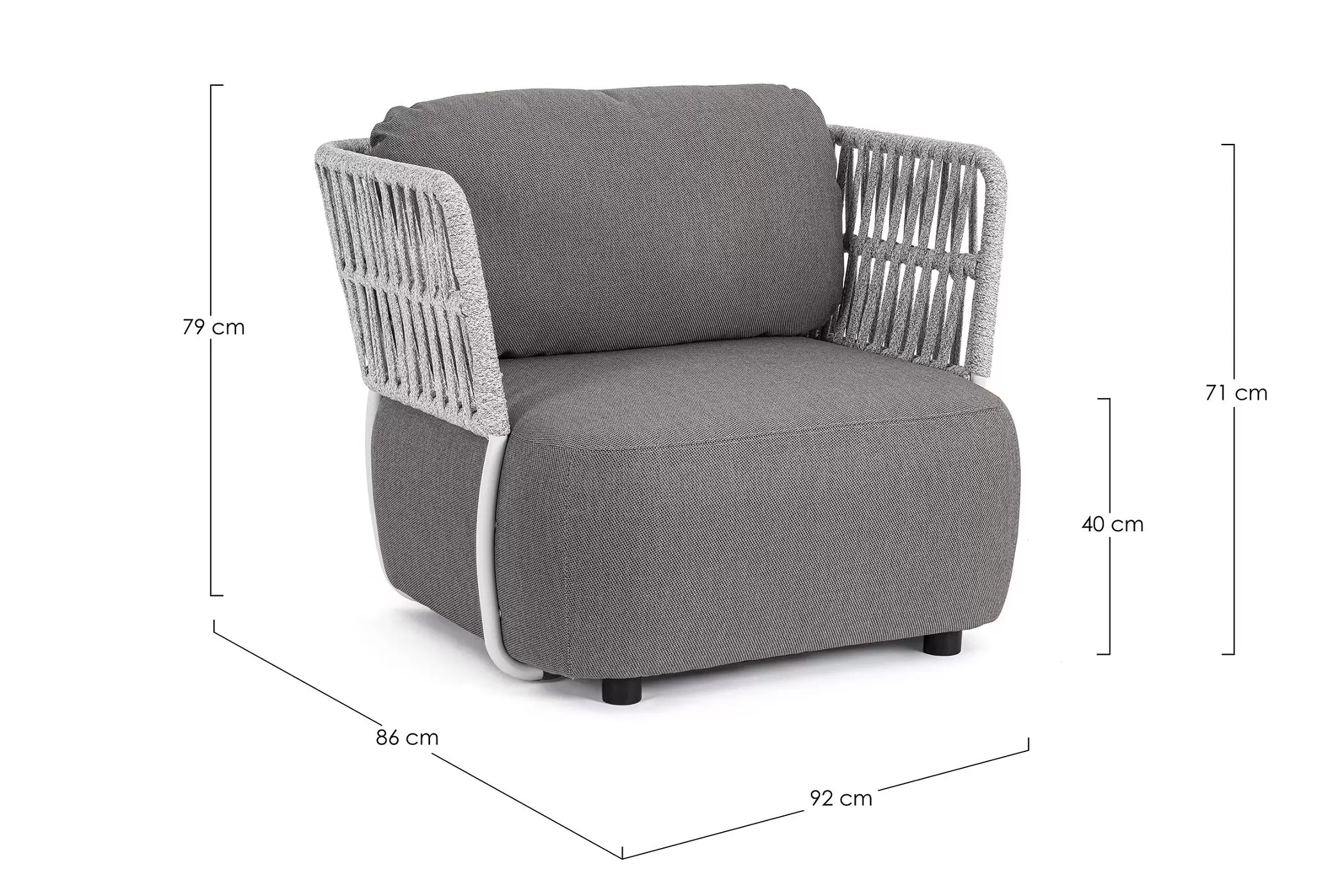 Szerokość 92 cm / Glębokość 86 cm / Wysokość 79 cm (71 cm do wysokości konstrukcji)