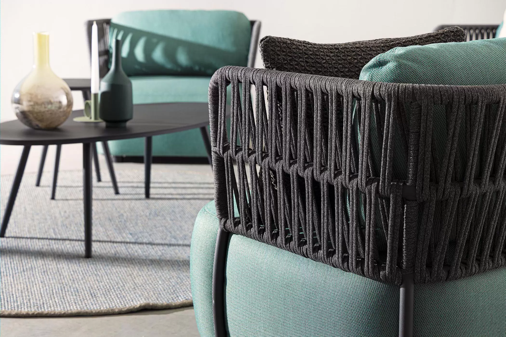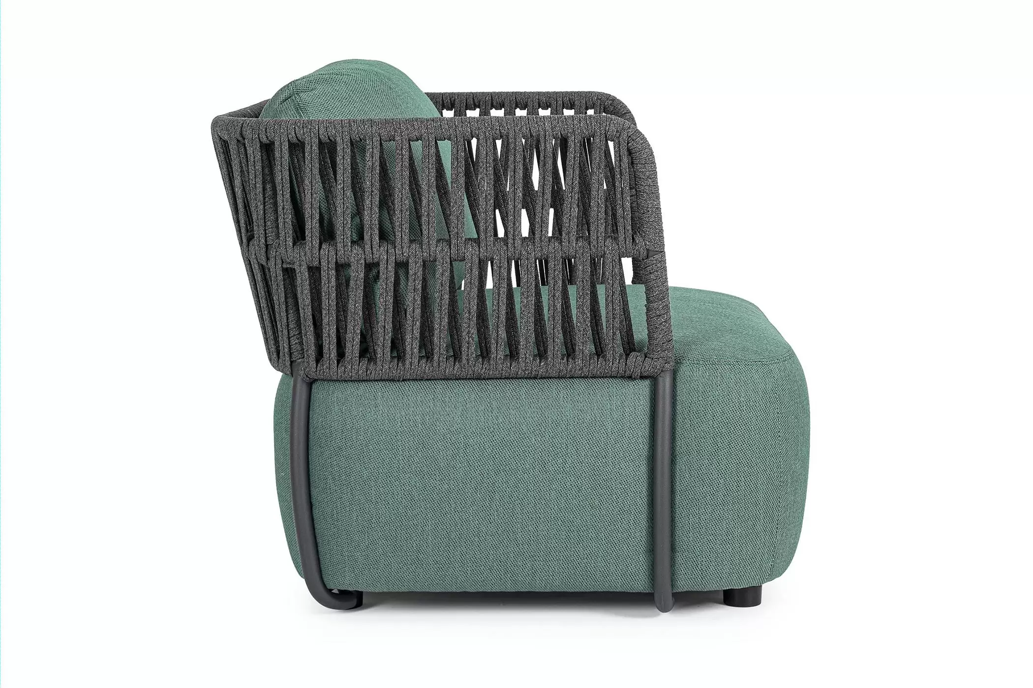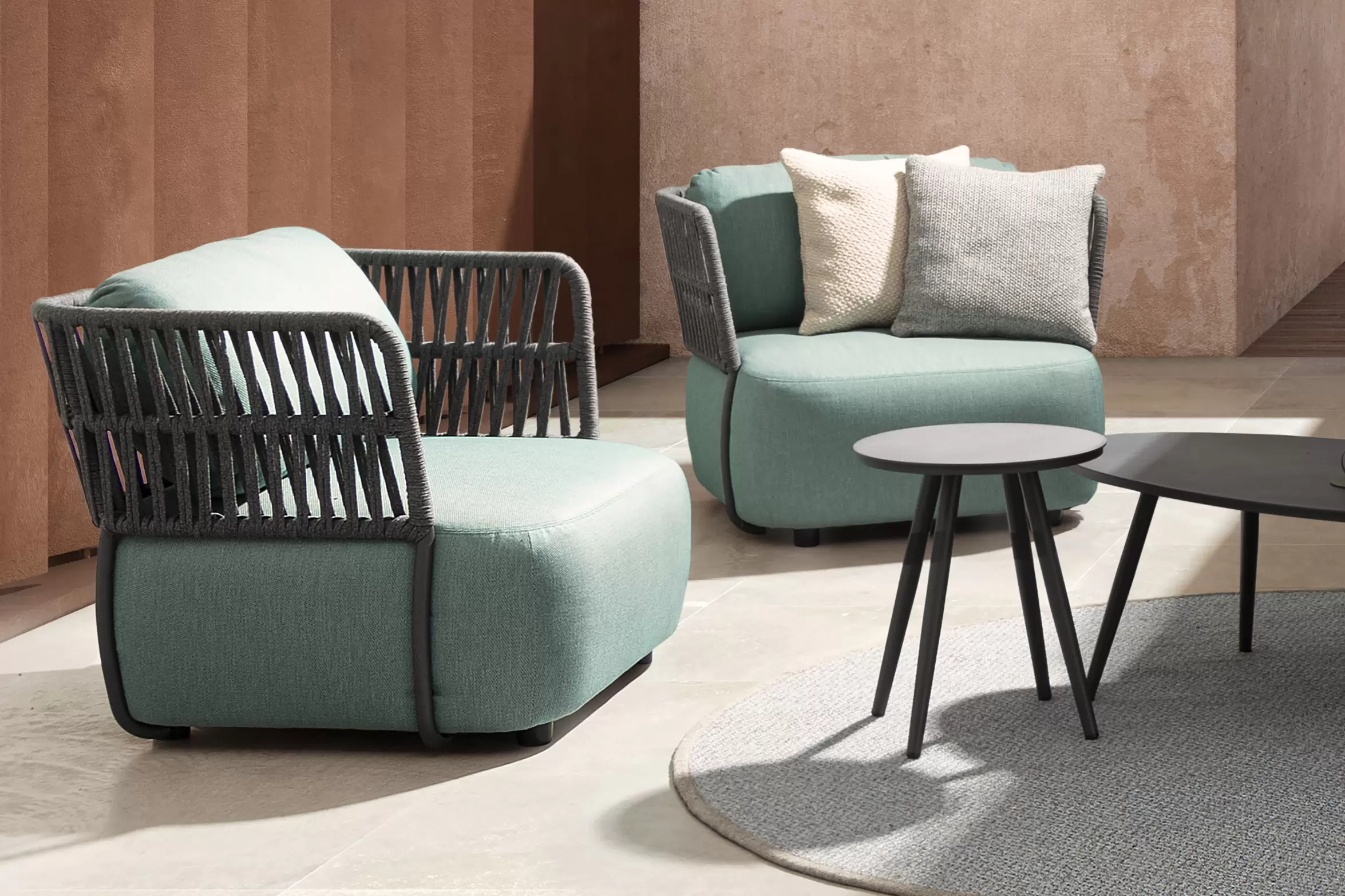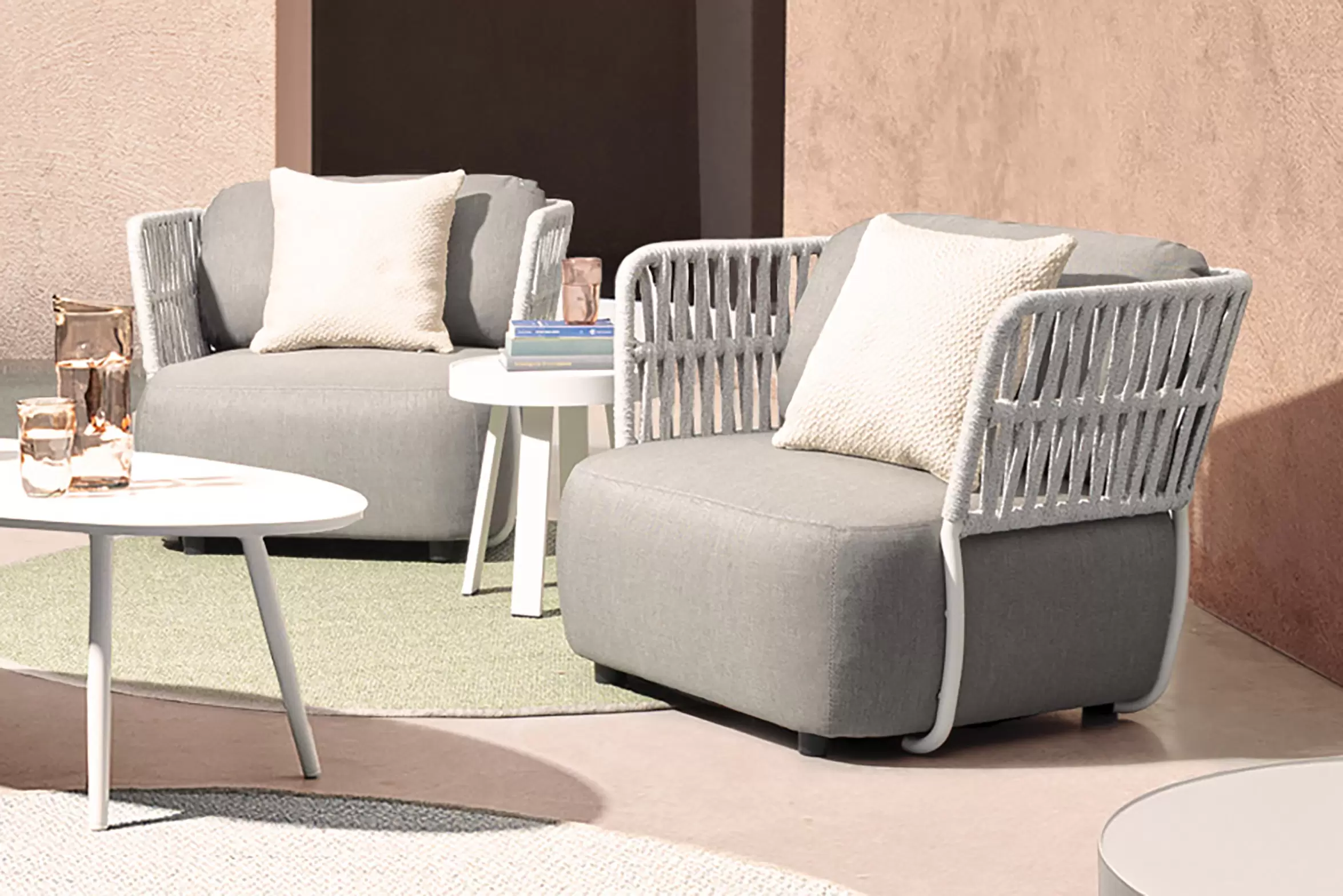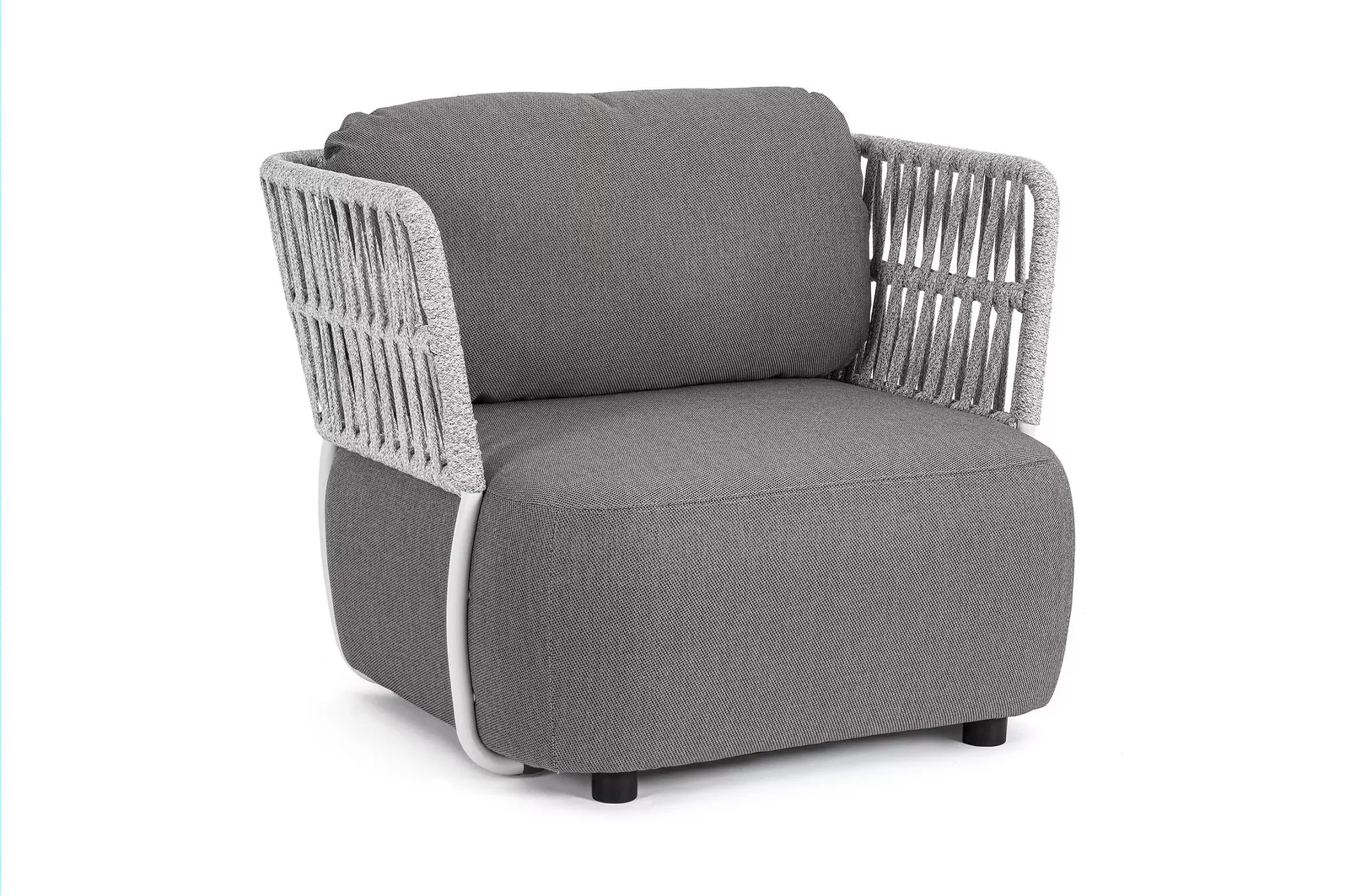 Fotel ogrodowy Palmer to mistrzowskie połączenie nowoczesnej, geometrycznej formy z niezrównanym komfortem, który redefiniuje pojęcie wypoczynku na świeżym powietrzu. Jego sercem jest solidna, a zarazem lekka konstrukcja z aluminium malowanego proszkowo, zapewniająca pełną odporność na korozję i zmienne warunki pogodowe. Wyjątkowy charakter mebla podkreślają ażurowe boki i oparcie wykonane z liny poliolefinowej, która nie tylko pięknie rozprasza światło, ale jest również niezwykle odporna na rozciąganie oraz promieniowanie UV. Całość dopełniają obszerne, miękkie poduszki wypełnione pianką szybkoschnącą, które dzięki luksusowemu obiciu z tkaniny Olefin pozostają przyjemne dla skóry i łatwe w utrzymaniu czystości. Ergonomiczny design fotela Palmer sprawia, że każda chwila spędzona na tarasie staje się luksusowym doświadczeniem, a najwyższa jakość zastosowanych materiałów gwarantuje trwałość na długie lata.