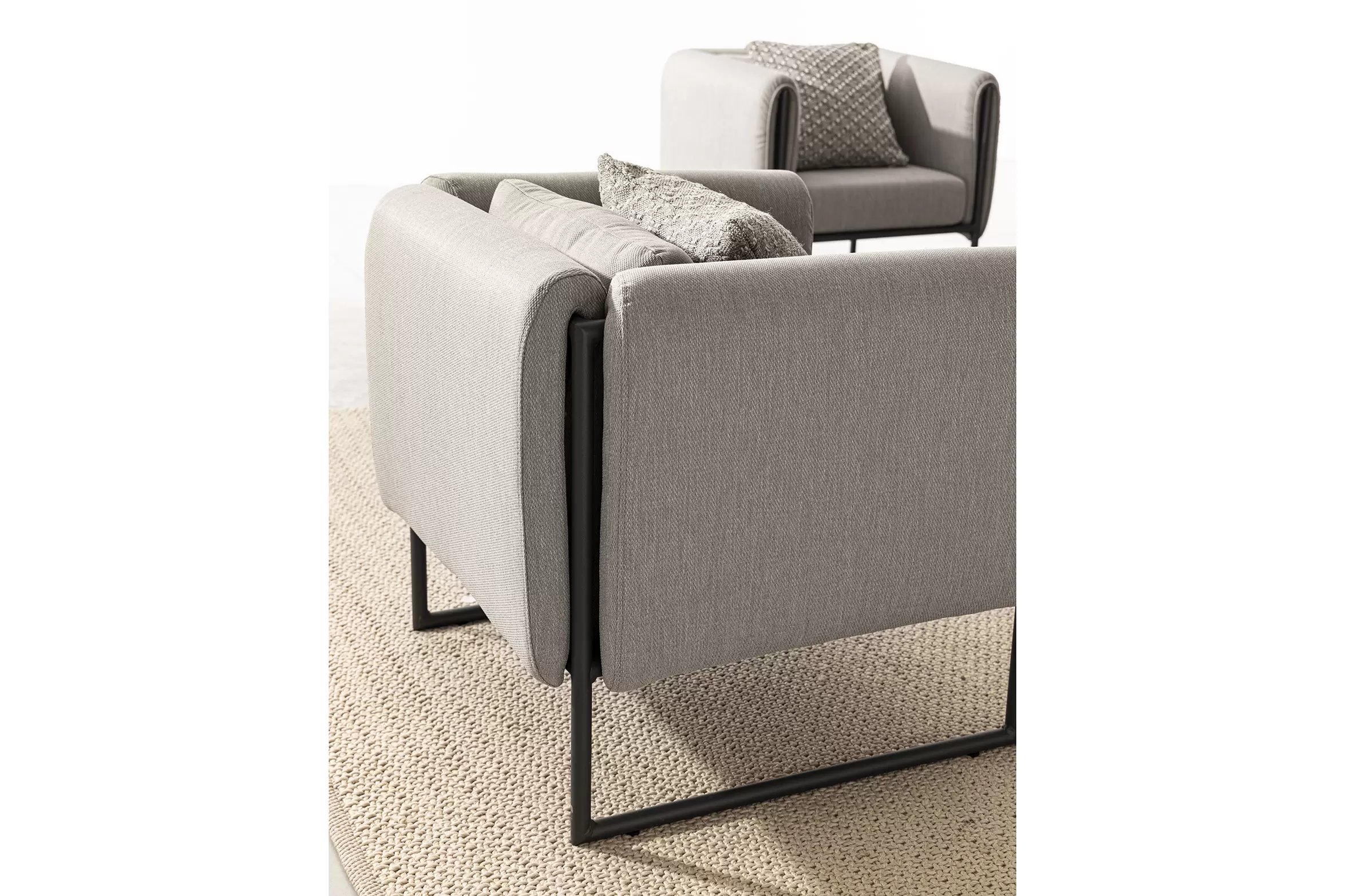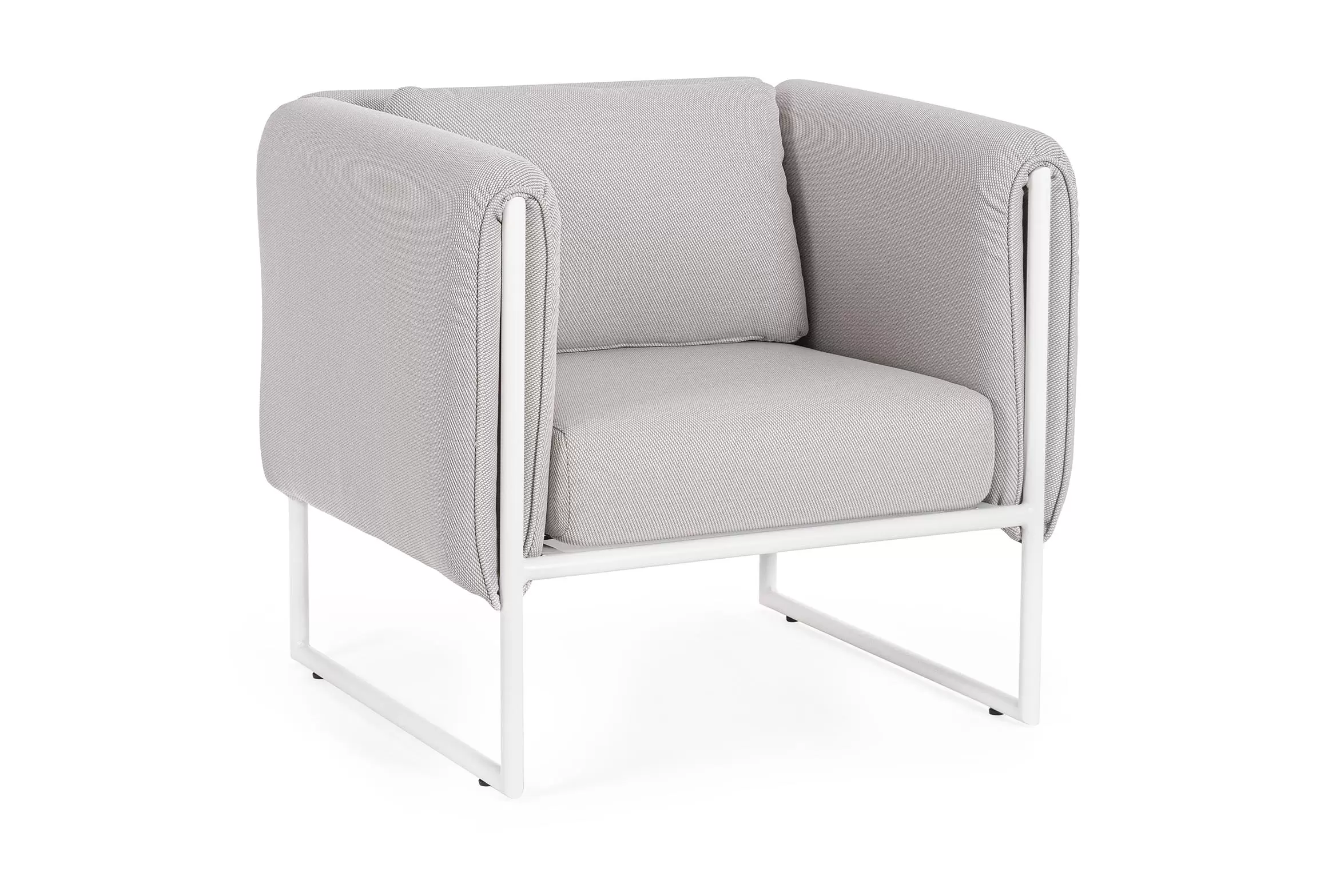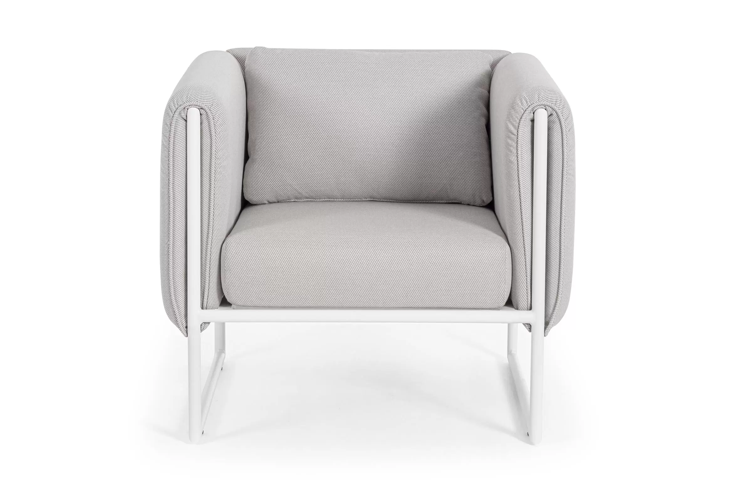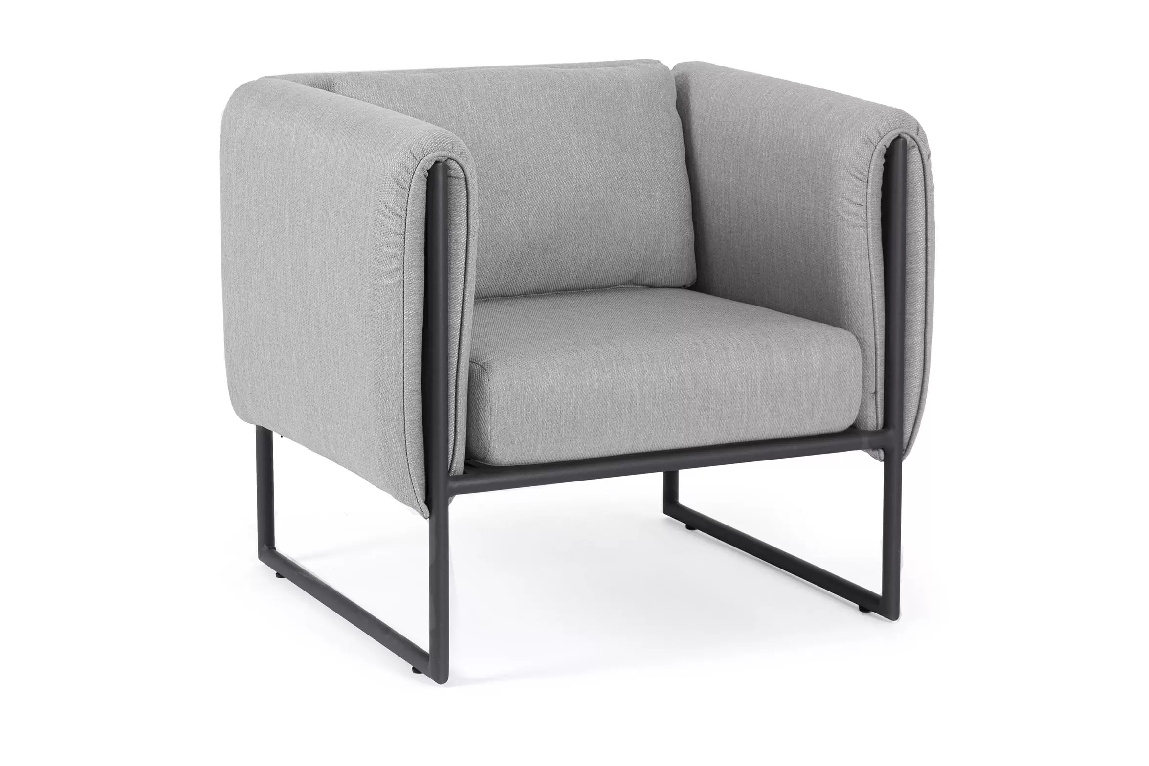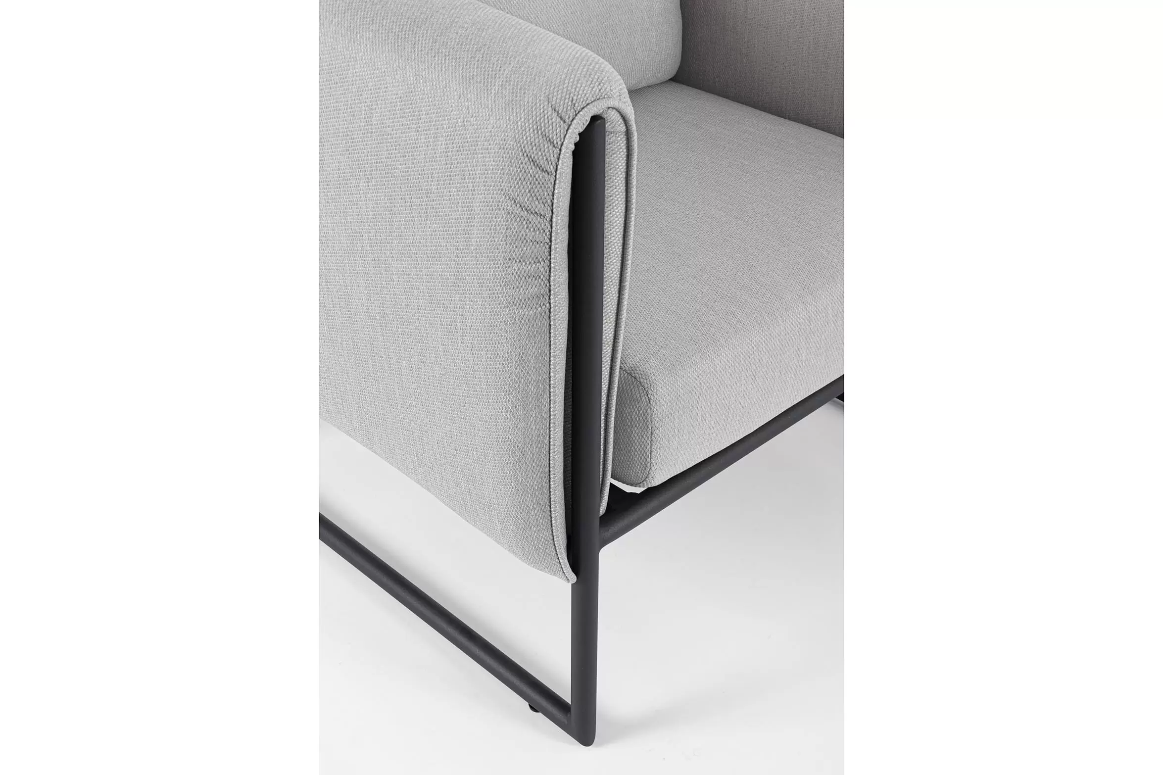 Nowoczesny design kolekcji Pixel przyciąga wzrok. Fotel posiada niezdejmowalne wodoodporne poduszki na siedziskach oraz bocznych obiciach z materiału Olefin.