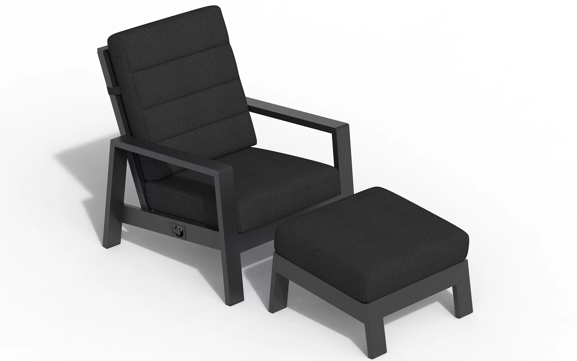 Pasujący podnóżek oraz pochylenie oparcia zamienia ten zestaw w wygodną leżankę.