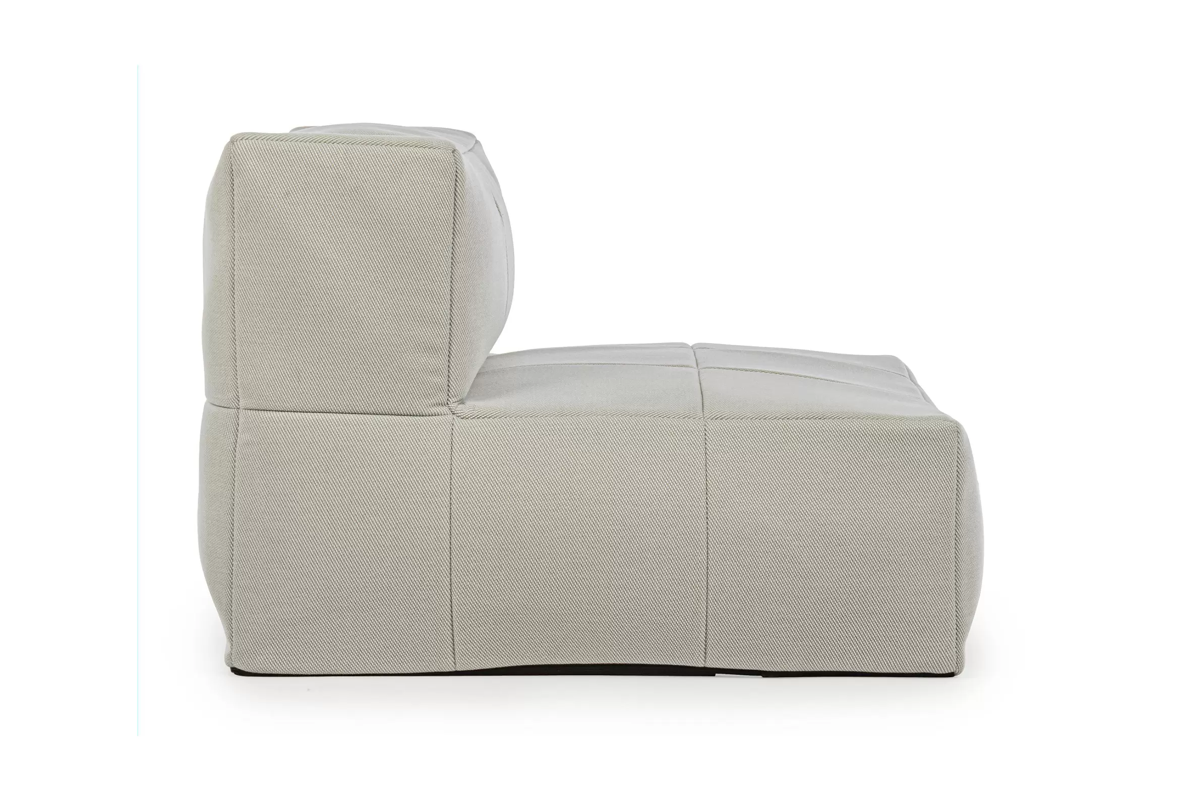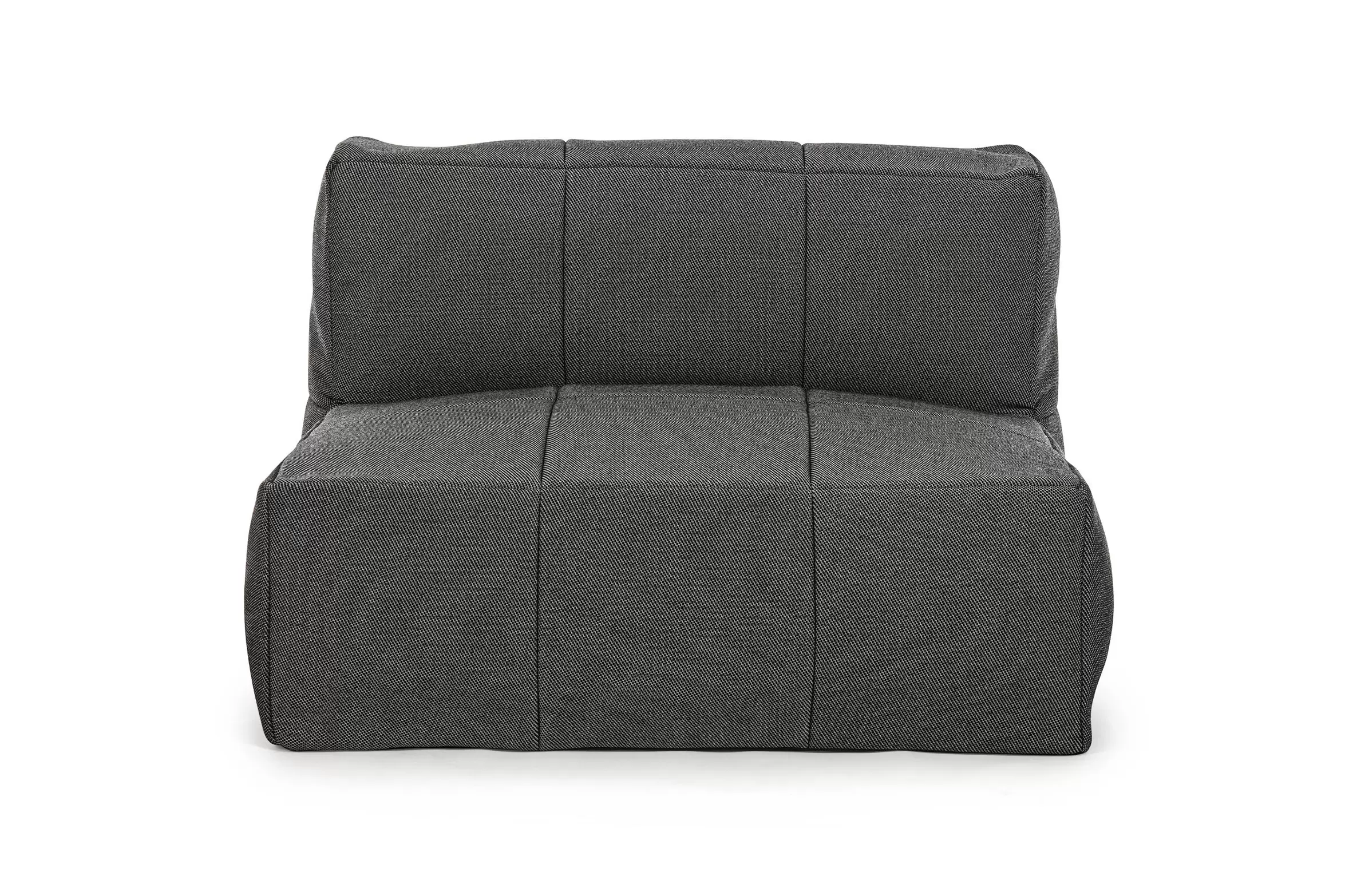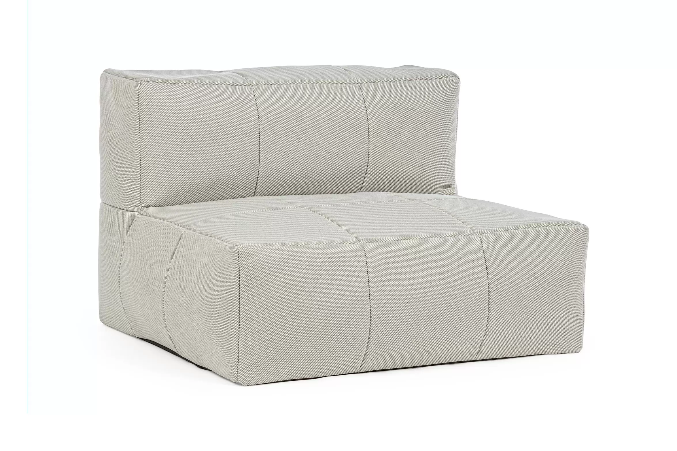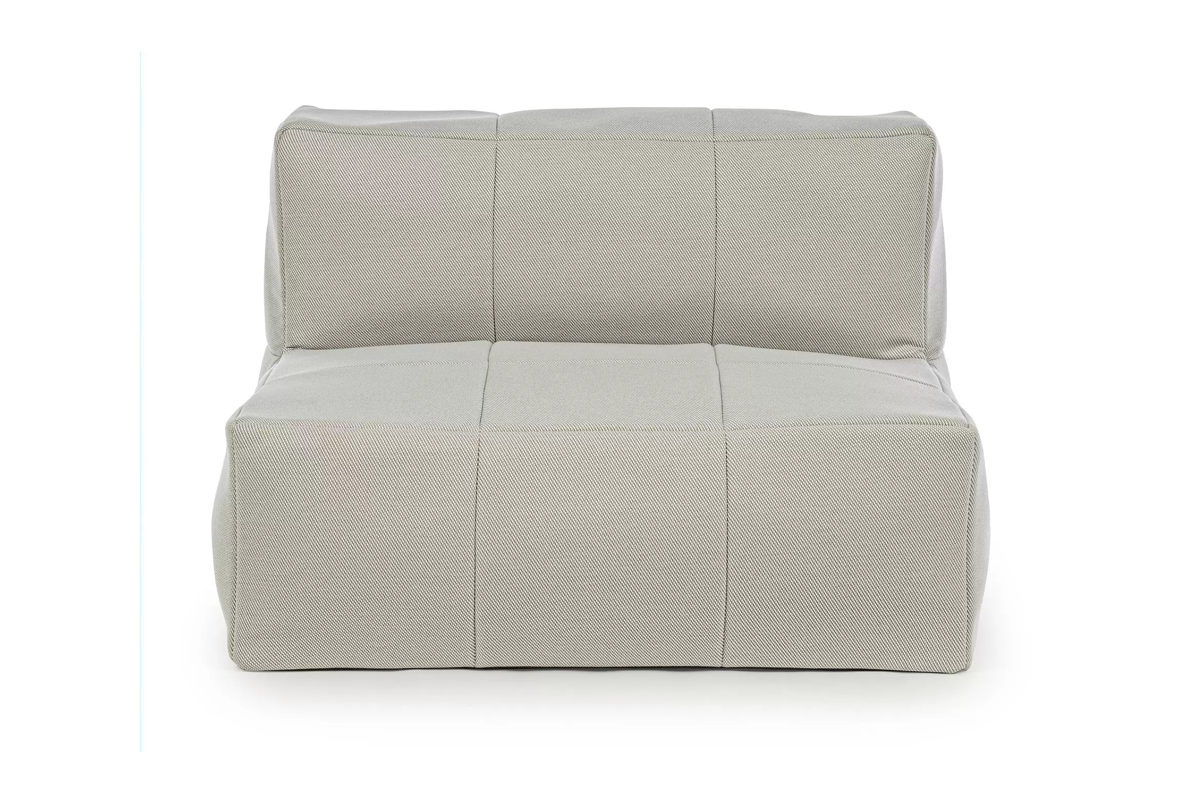 Nowoczesny fotel wypoczynkowy bez podłokietników do użytku na zewnątrz. Konstrukcja aluminiowa oraz wypełnienie kulki EPS. Fotel posiada łączniki do trwałego łączenia większych zestawów.