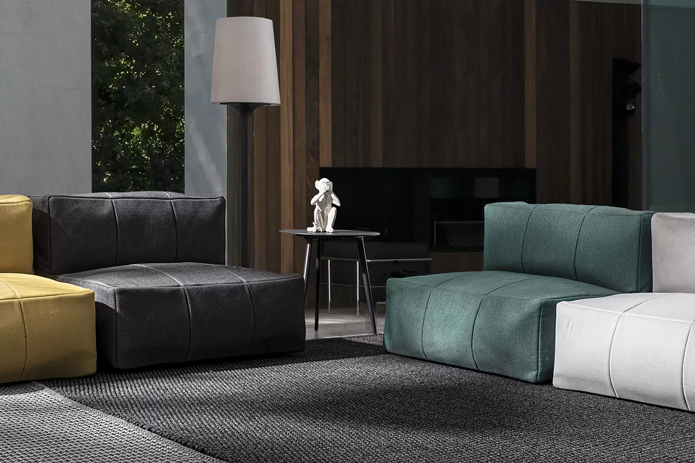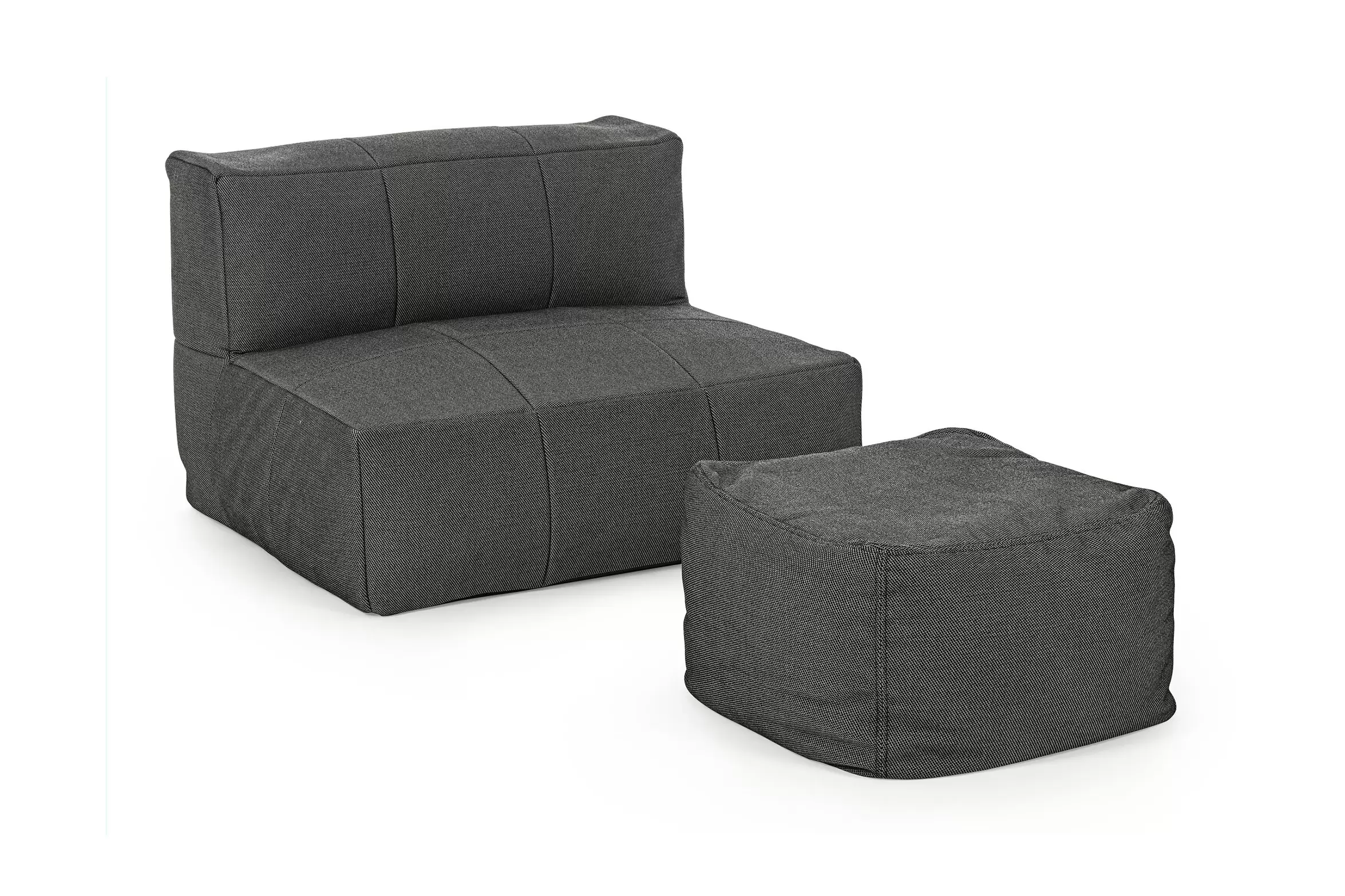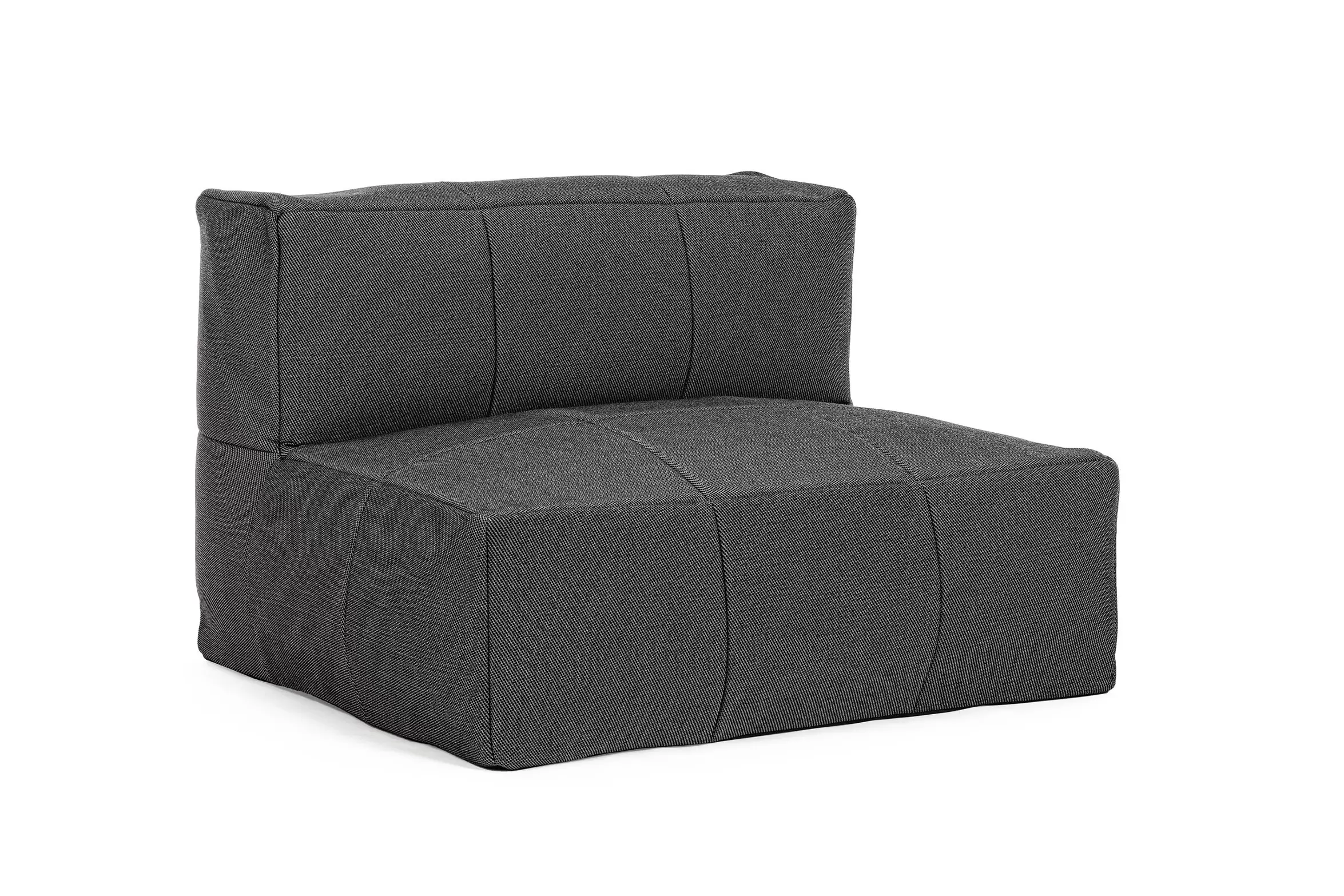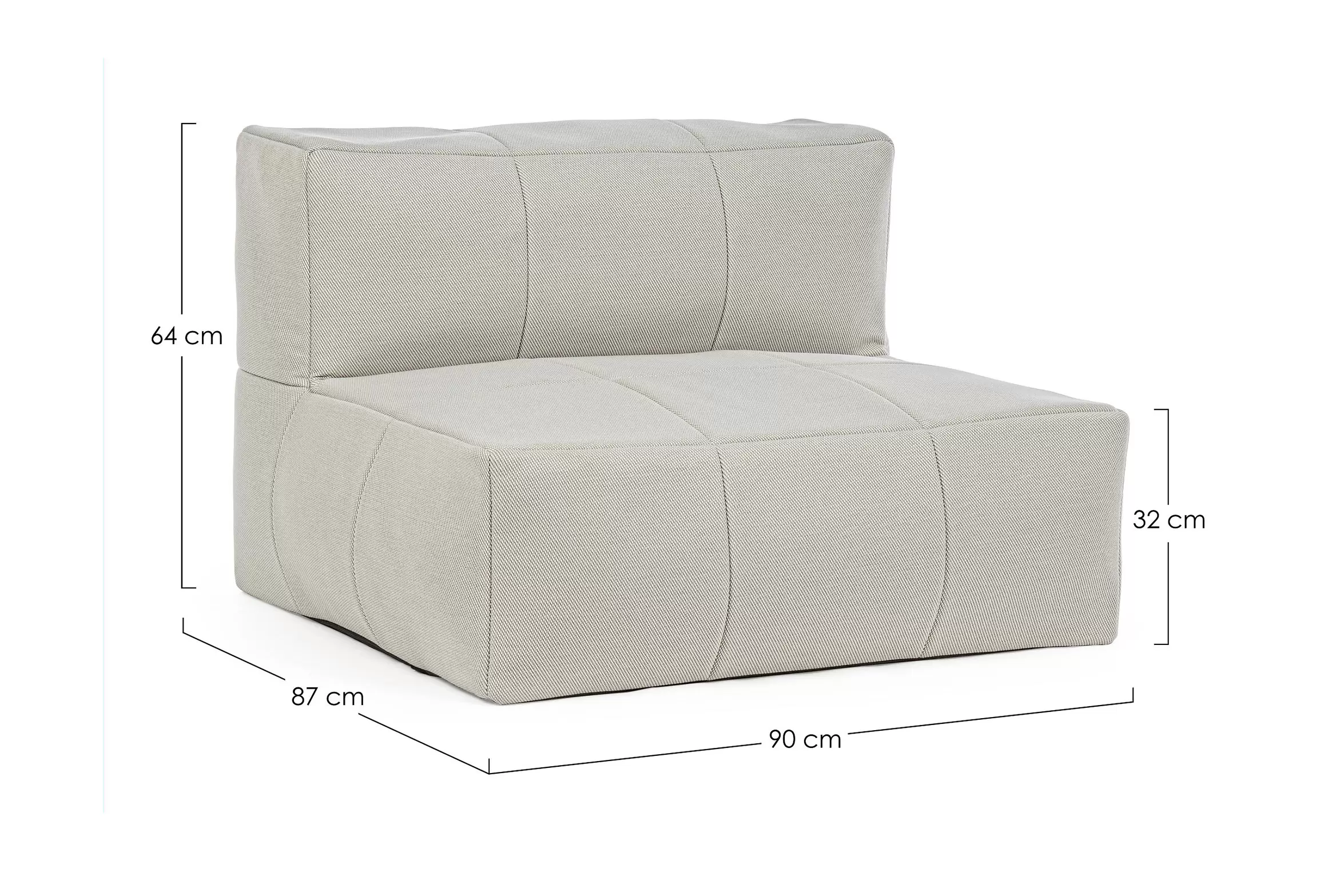 Nowoczesny fotel wypoczynkowy bez podłokietników do użytku na zewnątrz. Konstrukcja aluminiowa oraz wypełnienie kulki EPS. Fotel posiada łączniki do trwałego łączenia większych zestawów.