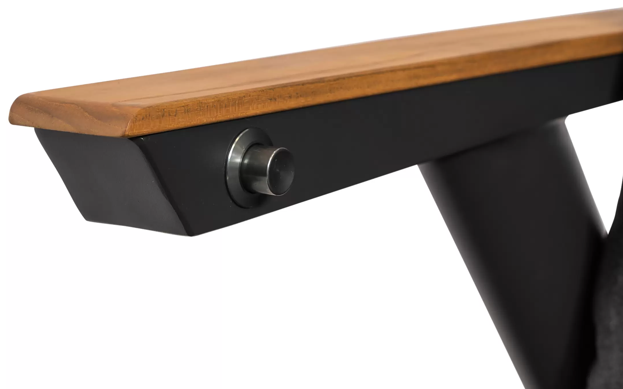 Aluminiowa konstrukcja malowana proszkowo w kolorze ciemnoszarym. Pochylanie oparć bezstopniowe za pomocą siłownika gazowego.