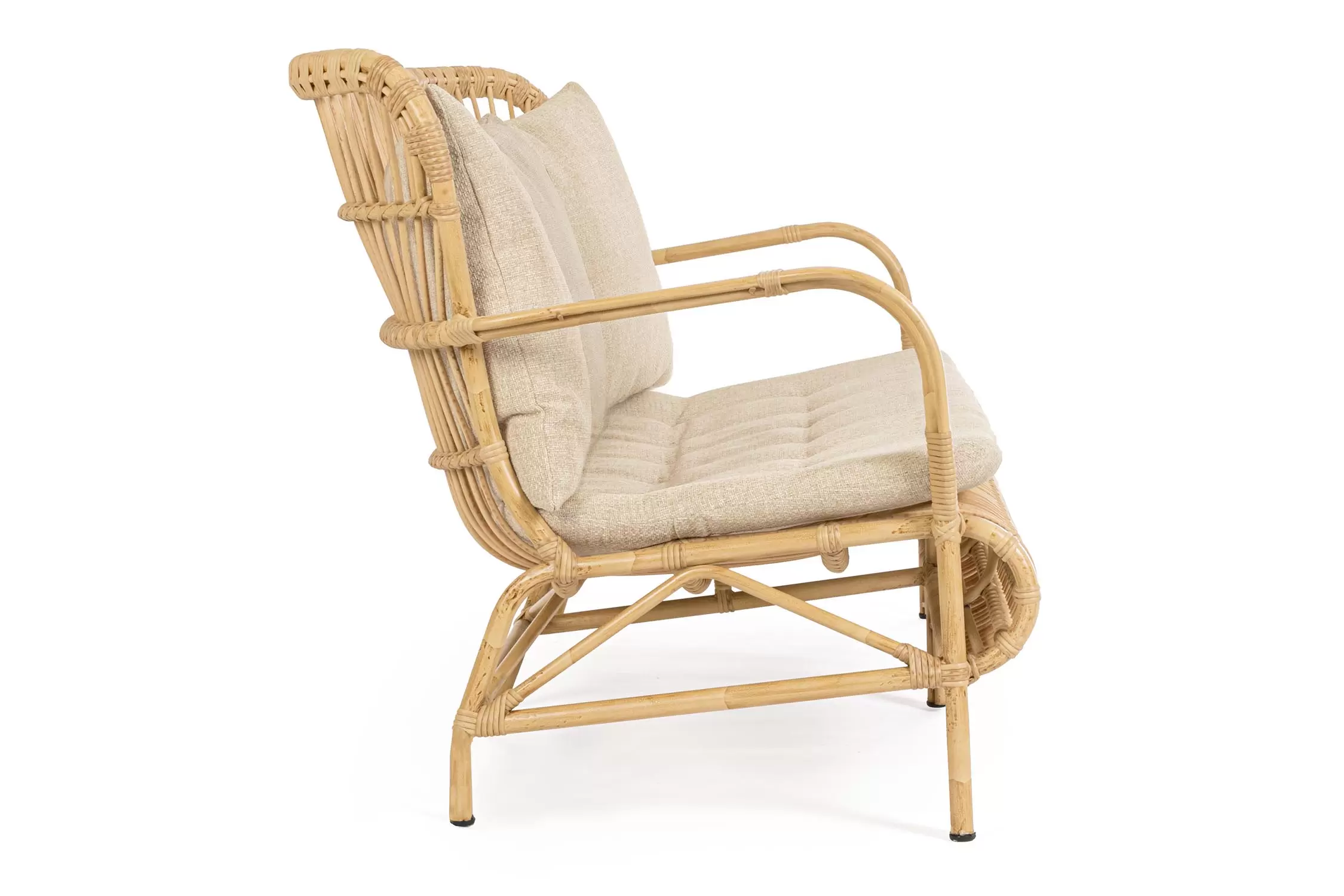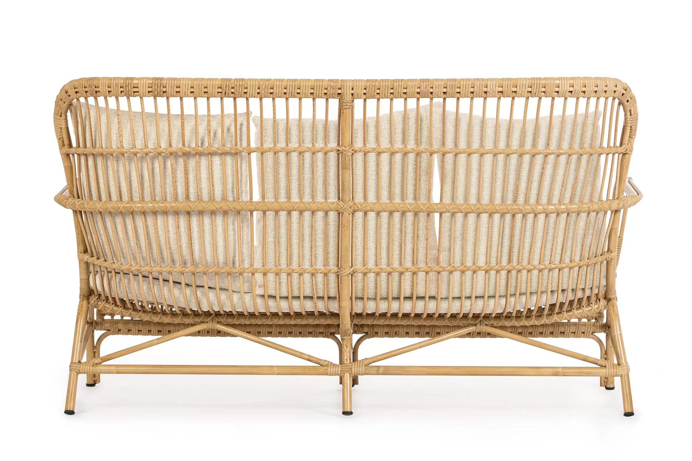 Klasyczna w formie sofa ogrodowy wykonana z nowoczesnych materiałów. Aluminiowe profile malowane proszkowo z technologią sublimacji tworzące powłokę imitująca naturalny rattan. Taka powłoka jest odporna na warunki atmosferyczne i UV.