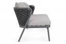 Dwuosobowa sofa wypoczynkowa na taras w oryginalnym i co najważniejsze odpornym na warunki atmosferyczne wykonaniu. Delikatnie wygięte "skrzydełka', wygodne oparcie oraz siedzisko z wygodnymi poduszkami zostało wykonane z wodoodpornej tkaniny Olefin. Materiał, która jest barwioną na wskroś tkaniną akrylową odporną na zabrudzenia, jest również odporna na działanie wody i pleśni. Ciekawą formą urozmaicenia budowy sofy jest zastosowanie warkoczowego splotu po bokach i z tyłu stelaża. Stelaż sofy, a także nogi wykonano z aluminium w malowaniu proszkowym. Wypełnienie poduszek z wysokiej jakości szybkoschnącej pianki tapicerskiej Quick Dry Foam o właściwościach antybakteryjnych. Wytrzymałość materiałów, a także odporność na korozję, umożliwiają zastosowanie zarówno w domu jak i na zewnątrz - w ogrodzie lub na tarasie. Meble należy czyścić nie wykorzystując silnych środków chemicznych.