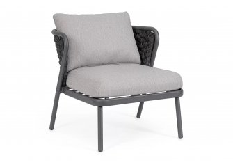 Boki i oparcie oplecione liną przyjemną w dotyku z wyplenieniem z polietylenu.