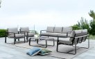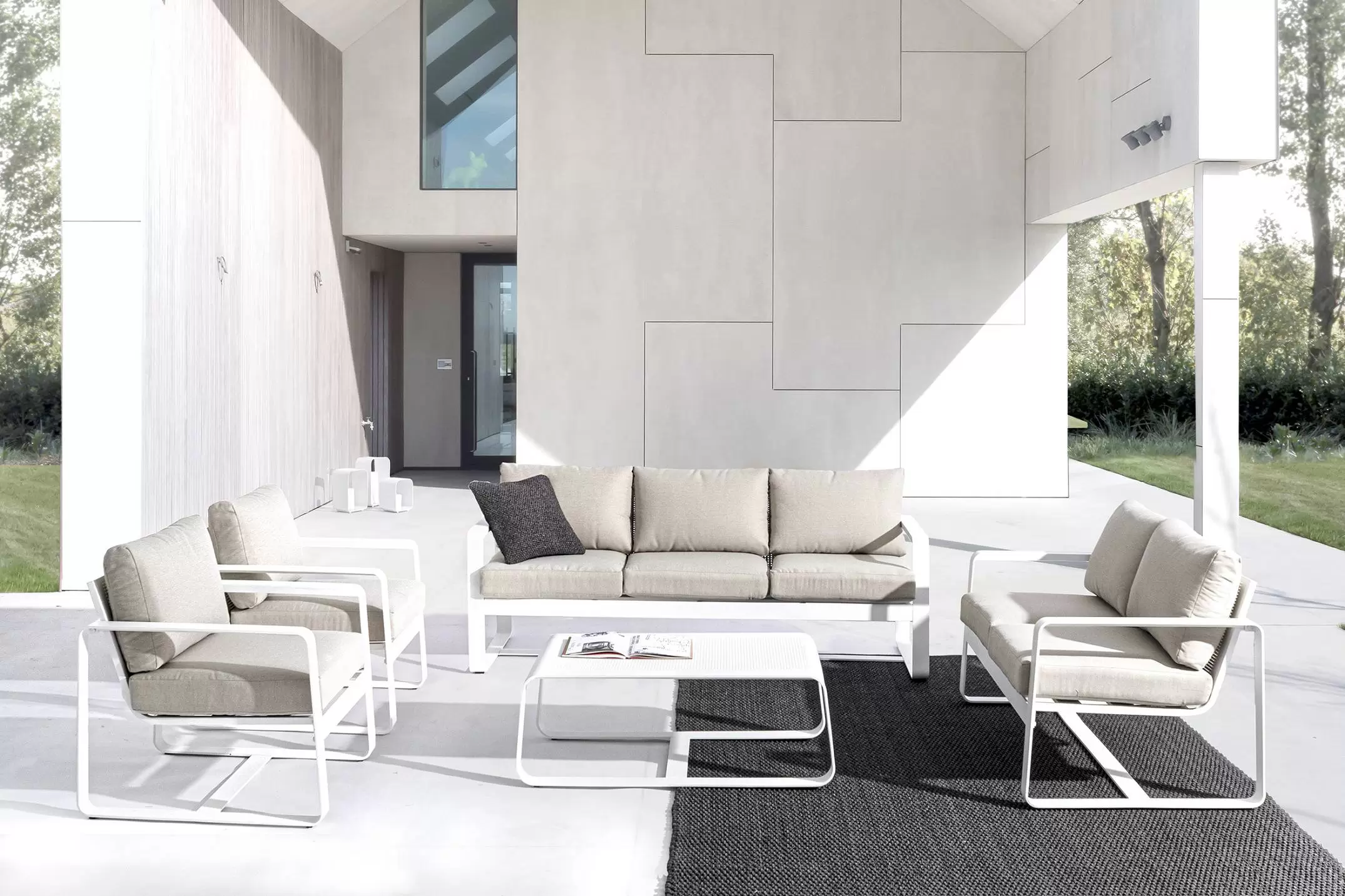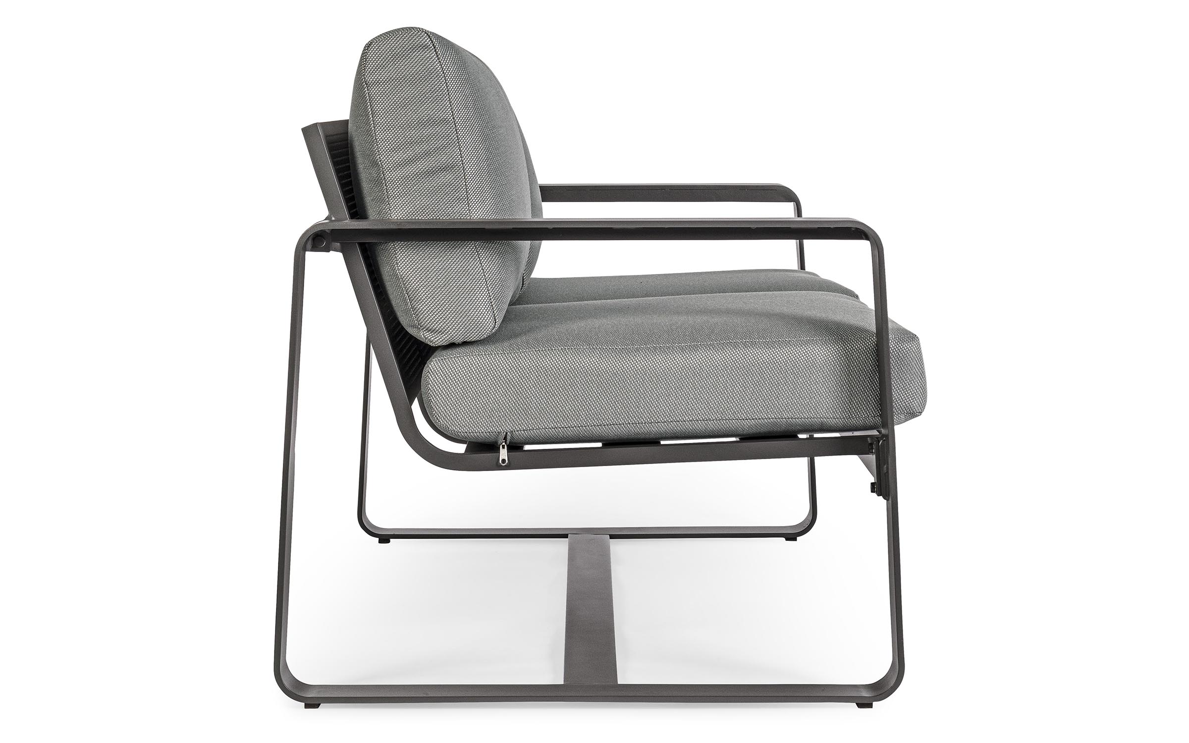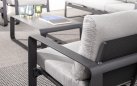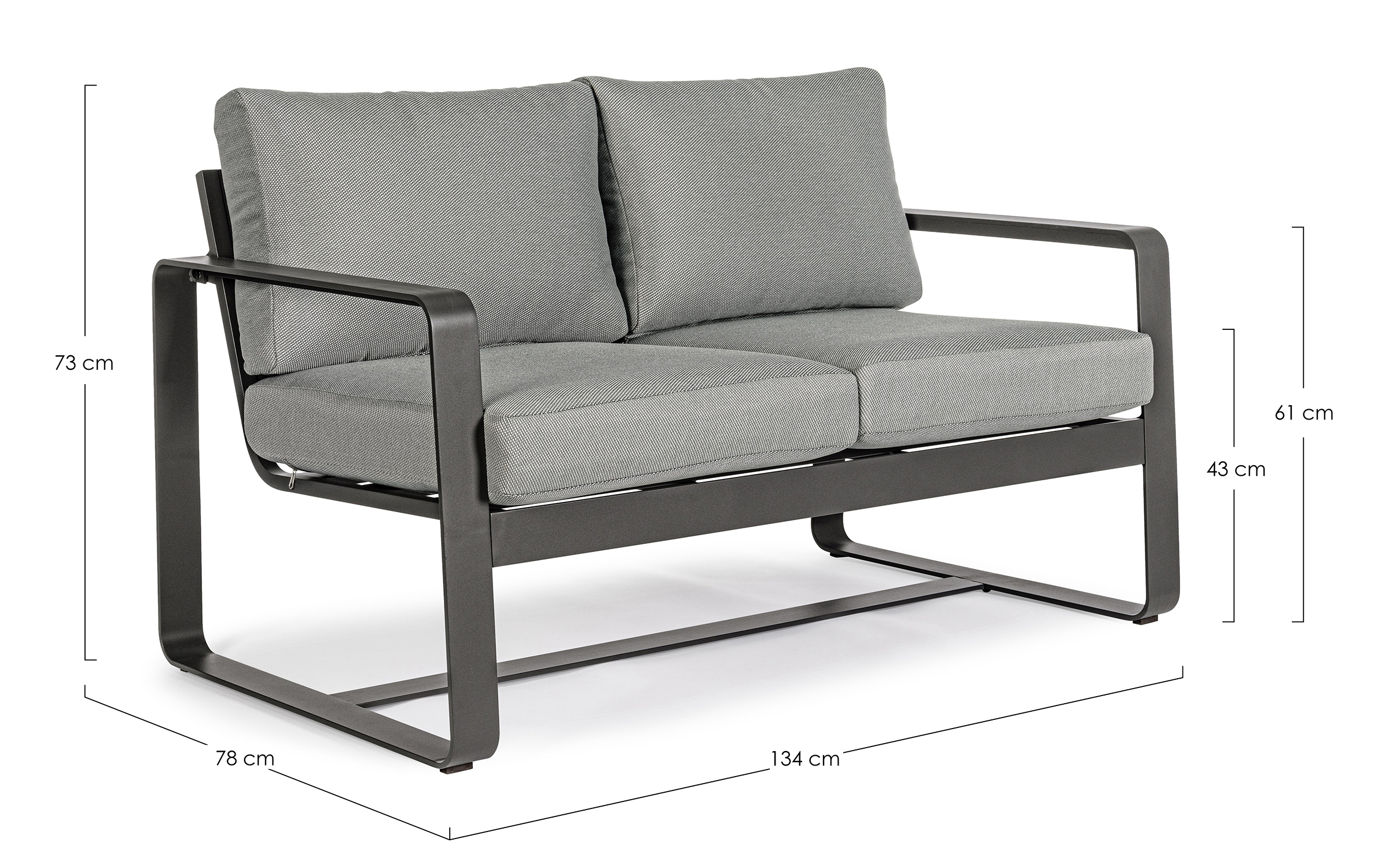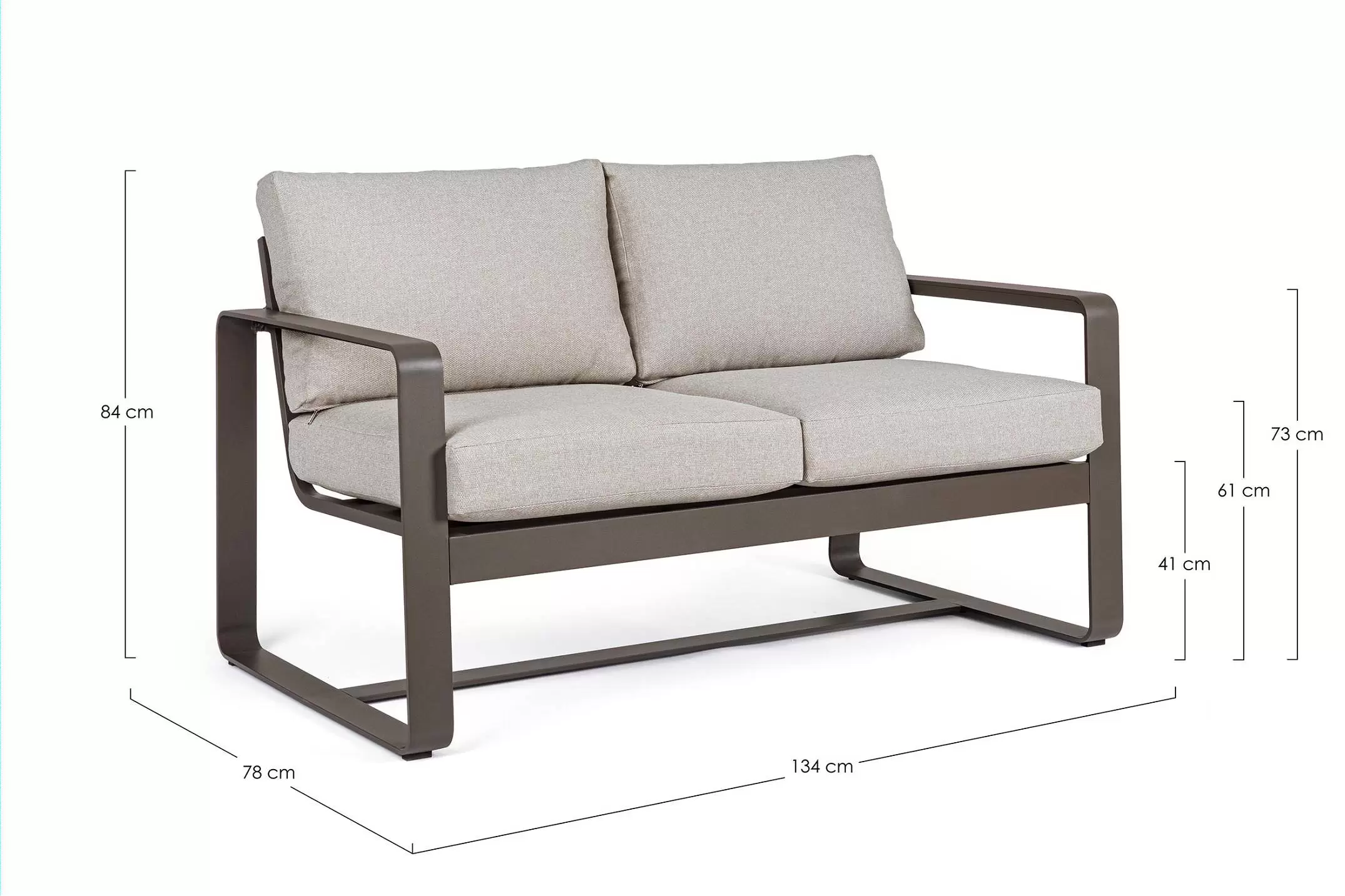 Aluminiowy dwuosobowa sofa wypoczynkowa. Wygodne siedzenie na tarasie zapewniają wysokiej jakości poduszki o gęstej sprężystej piance z poszewkami Olefin.