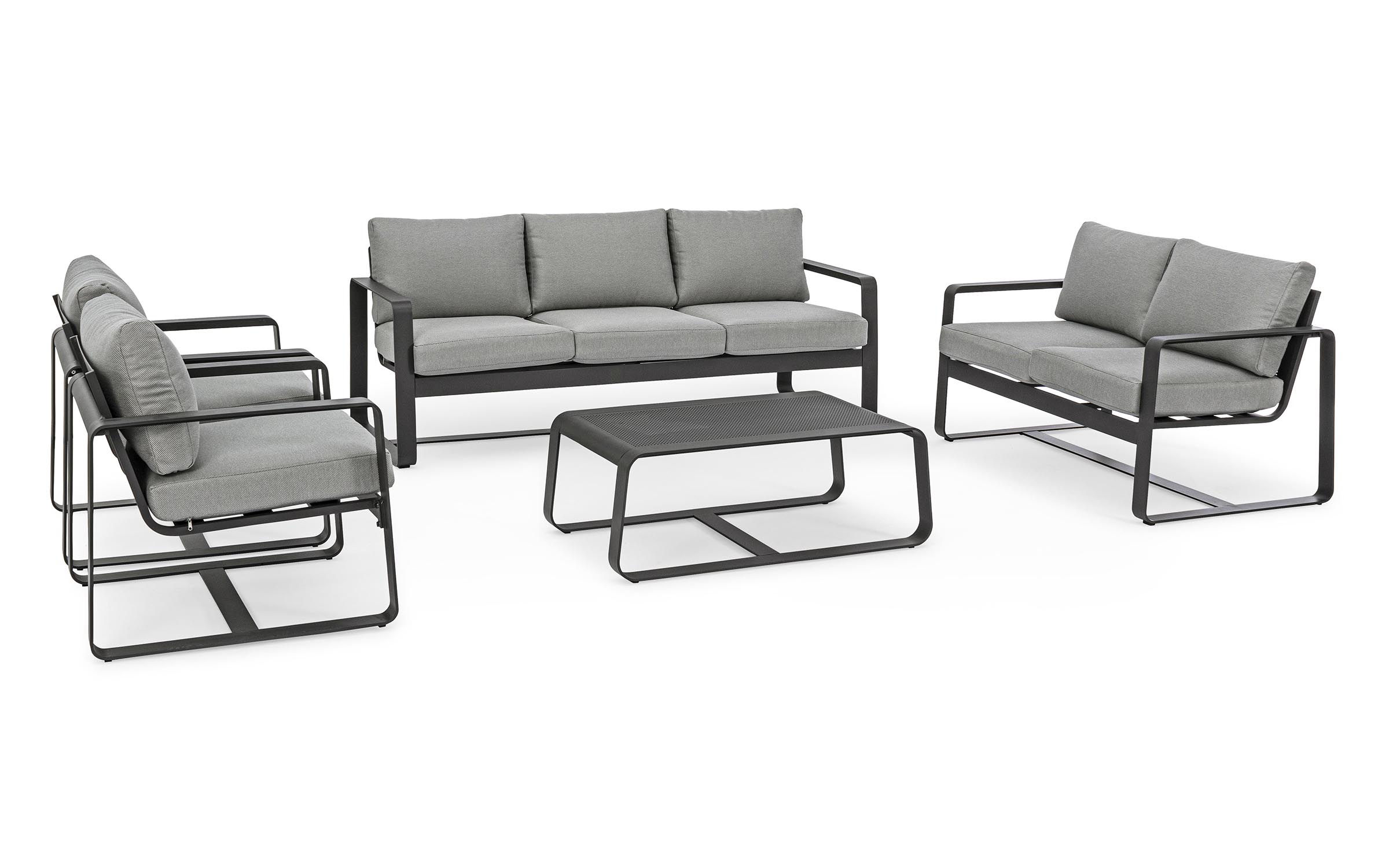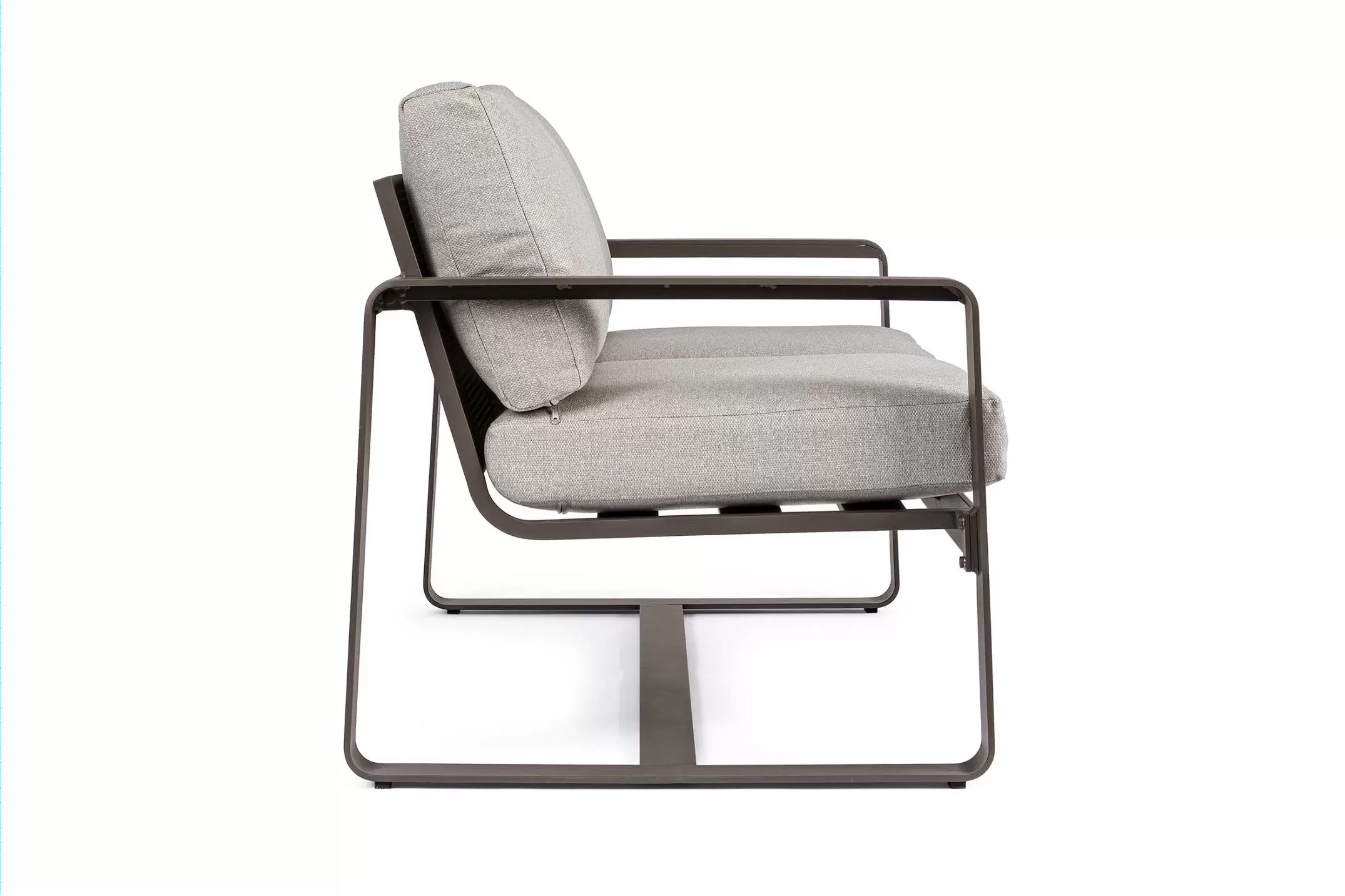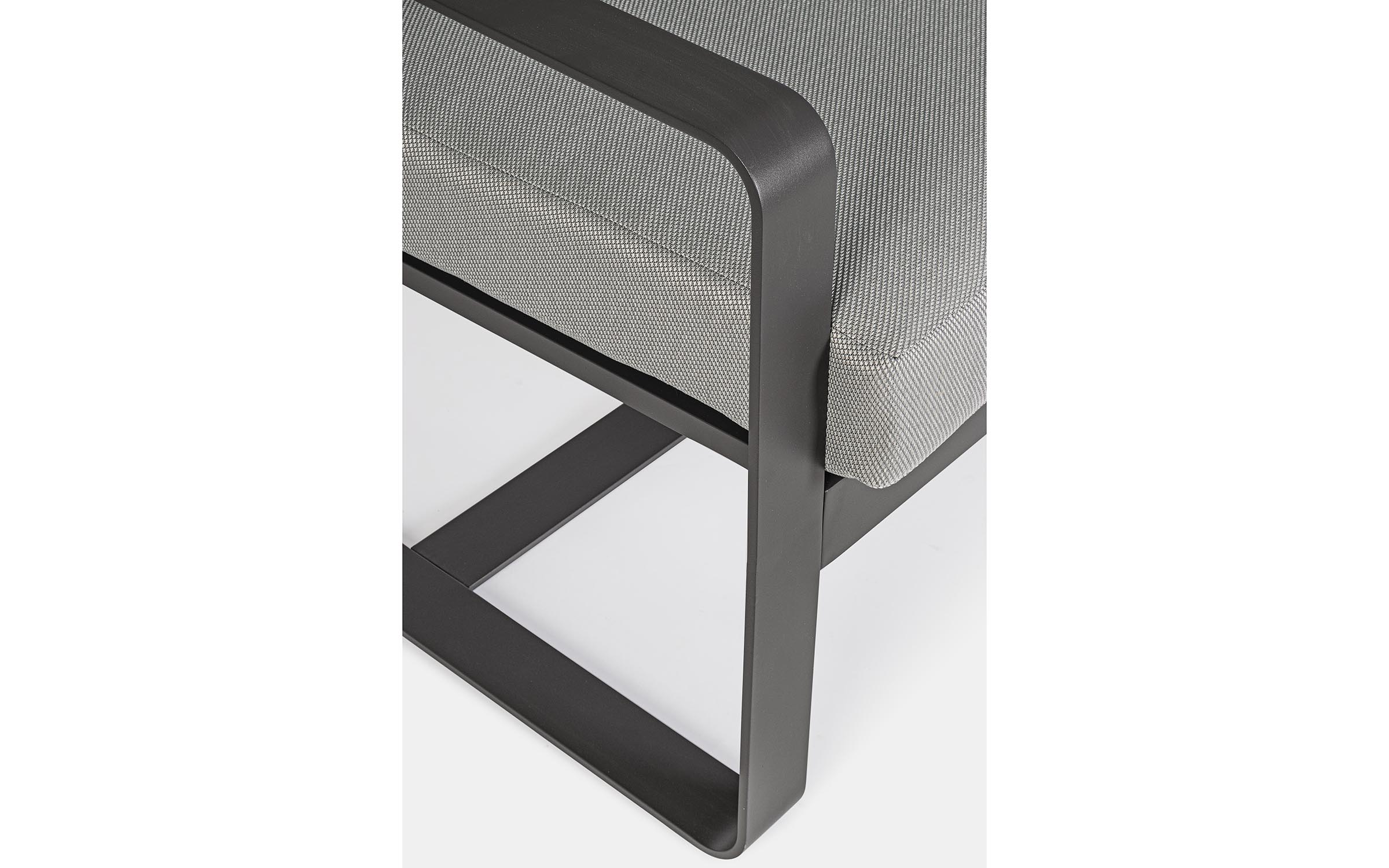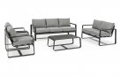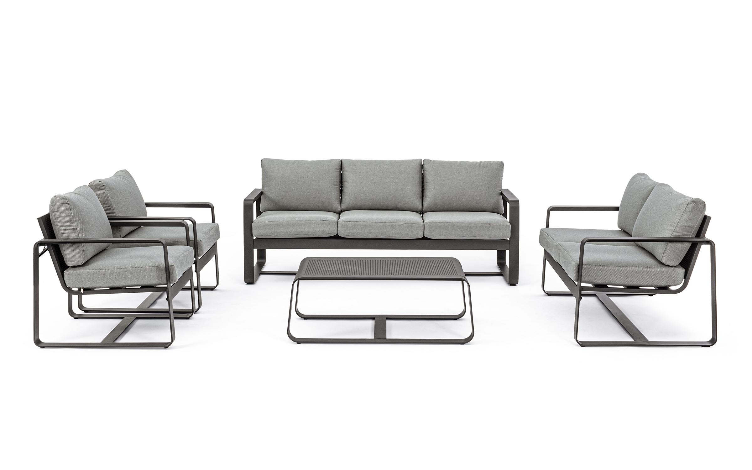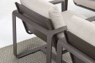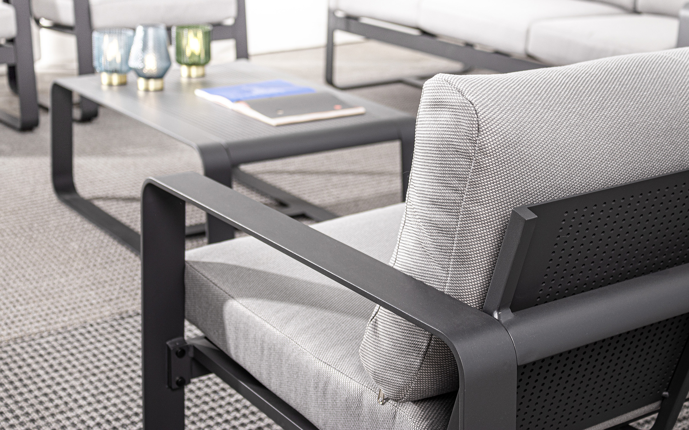 Konstrukcja aluminiowa malowana proszkowo na kolor ciemnoszary (poduszki jasnoszare), biały (p. szarobeżowe) lub kawowy (p. beżowe).