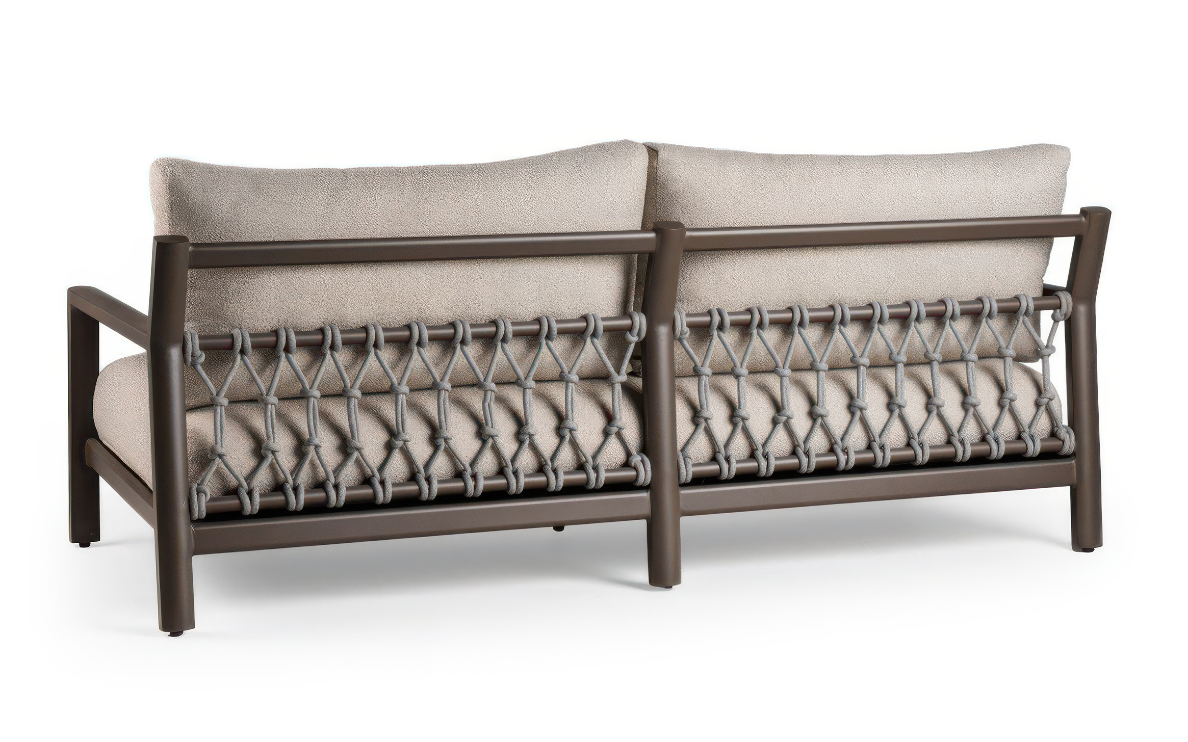 Sofa OASIS to coś więcej niż standardowa sofa ogrodowa – to zaproszenie do świata luksusowego relaksu pod gołym niebem. Zaprojektowana z myślą o nowoczesnych tarasach premium, łączy w sobie surową elegancję z niespotykaną wygodą mebli wypoczynkowych. Jej znakiem rozpoznawczym są obłe kształty i charakterystyczne wykończenie oparć grubą liną, które nadaje całości wizualnej lekkości i unikalnego charakteru w stylu mebli outdoorowych najwyższej klasy.