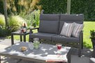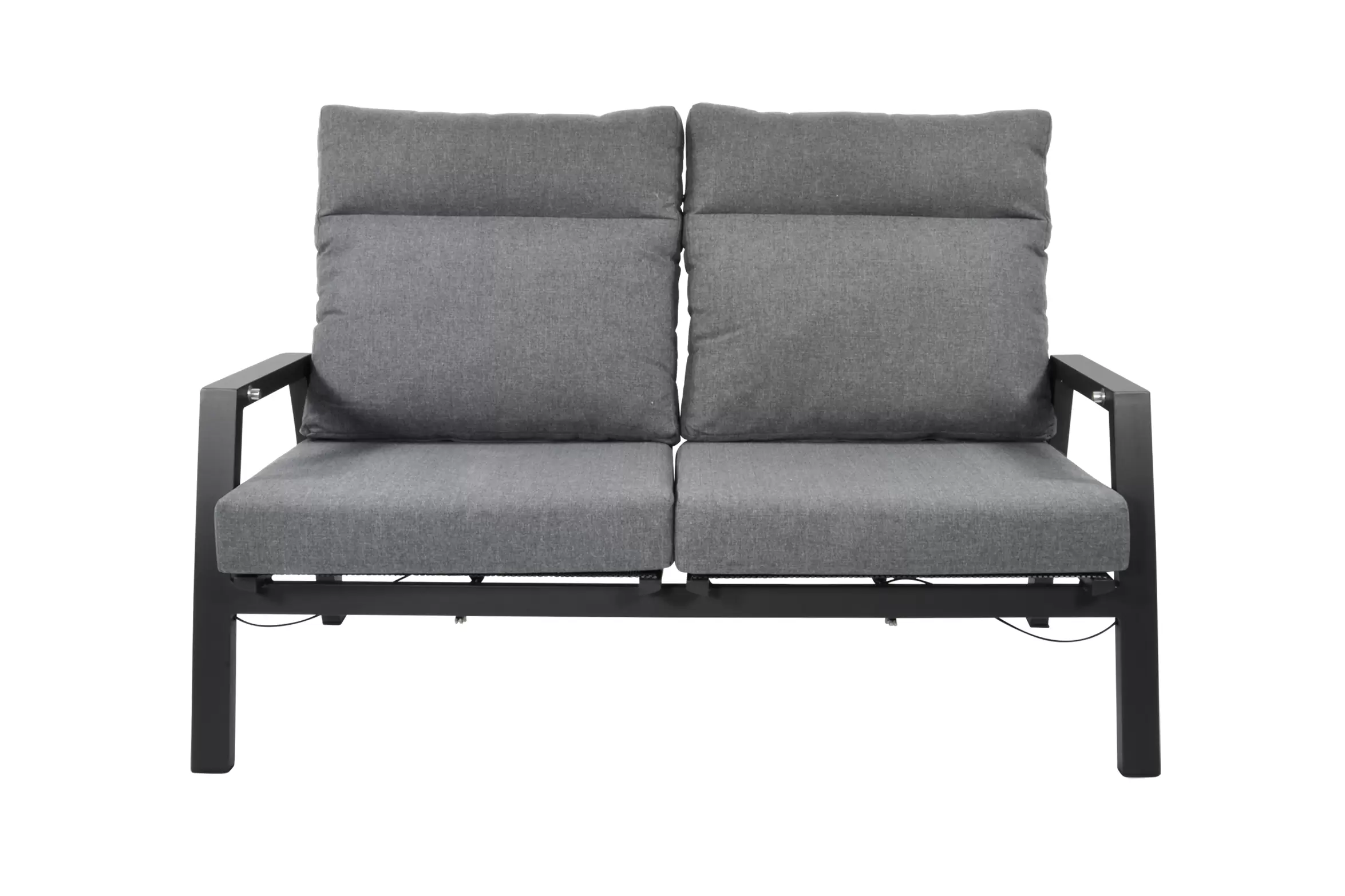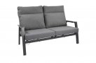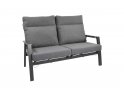 Sofa ogrodowa aluminiowa z wysokimi i pochylanymi bocznymi oparciami.