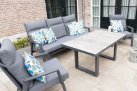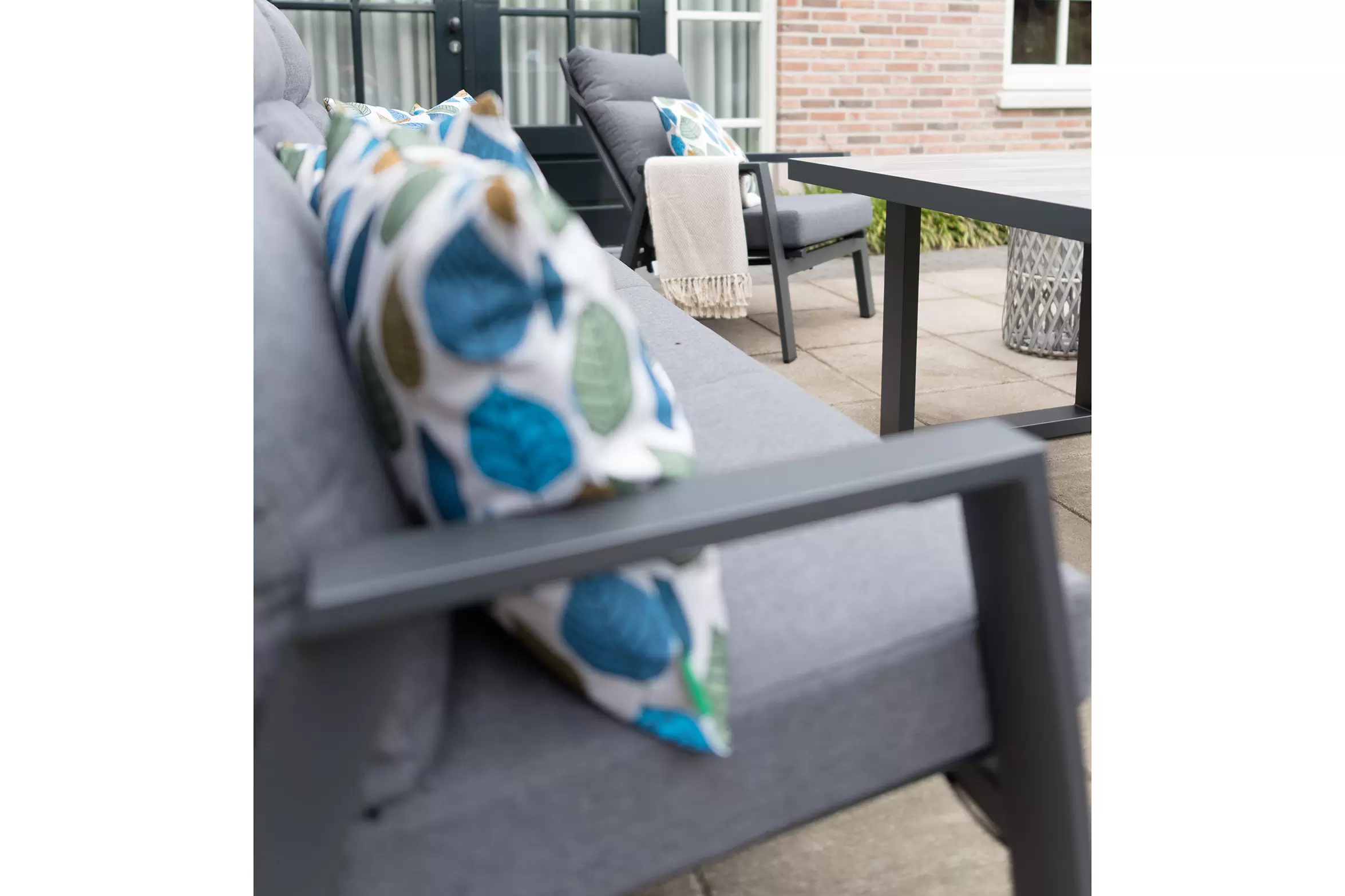 Kolekcja modułowych mebli ogrodowych aluminiowych w kolorze ciemnoszarym z wysokimi i pochylanymi(!) oparciami. Z elementów kolekcji można ustawiać dowolne kompozycje. Do mebli wypoczynkowych dostępny jest także pasujący leżak.