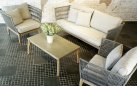 Kolekcja mebli ogrodowych Parado powstała z myślą o osobach, które uwielbiają wnętrza inspirowane egzotyką. Jej poszczególne elementy wyróżniają się niestandardowymi rozwiązaniami konstrukcyjnymi – w tym przypadku sznurek posłużył do stworzenia komfortowych siedzeń i oparć. Stelaż z drewna akacjowego doskonale stabilizuje oraz wzmacnia meble – nie ma więc mowy o zniszczeniu ich powierzchni.