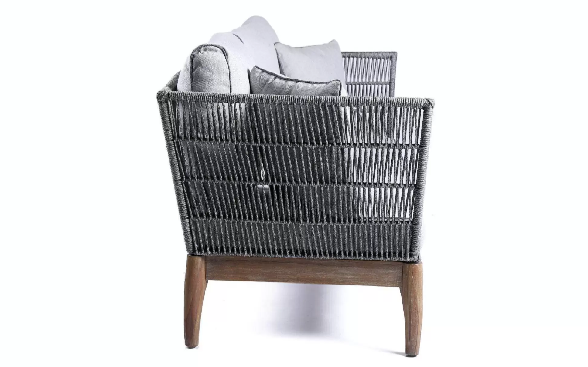 Boki i tył siedziska wykonane z szarej liny polipropylenowej .