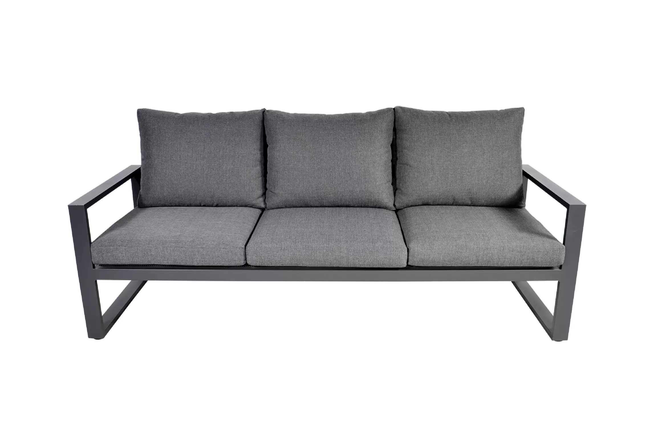 Aluminiowa sofa ogrodowa o prostej konstrukcji.
