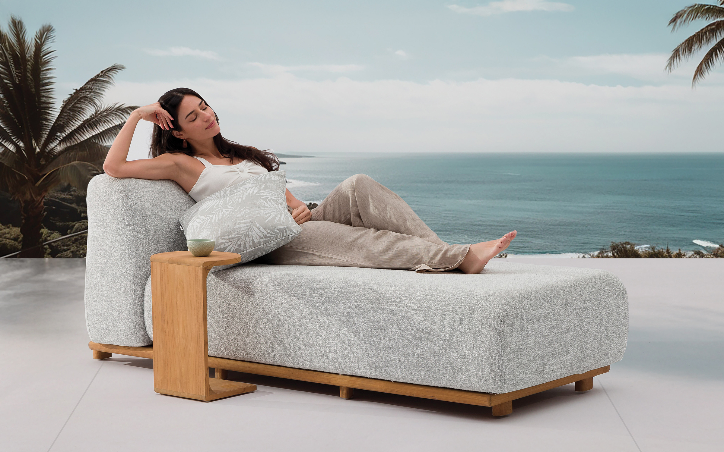 Leżak na taras RULE Teak to propozycja dla najbardziej wymagających użytkowników, którzy pragną połączyć szlachetny wygląd naturalnego drewna z niezniszczalnością nowoczesnych materiałów. Ten system meblowy redefiniuje pojęcie elastyczności, pozwalając na dowolną aranżację przestrzeni wypoczynkowej na tarasie.