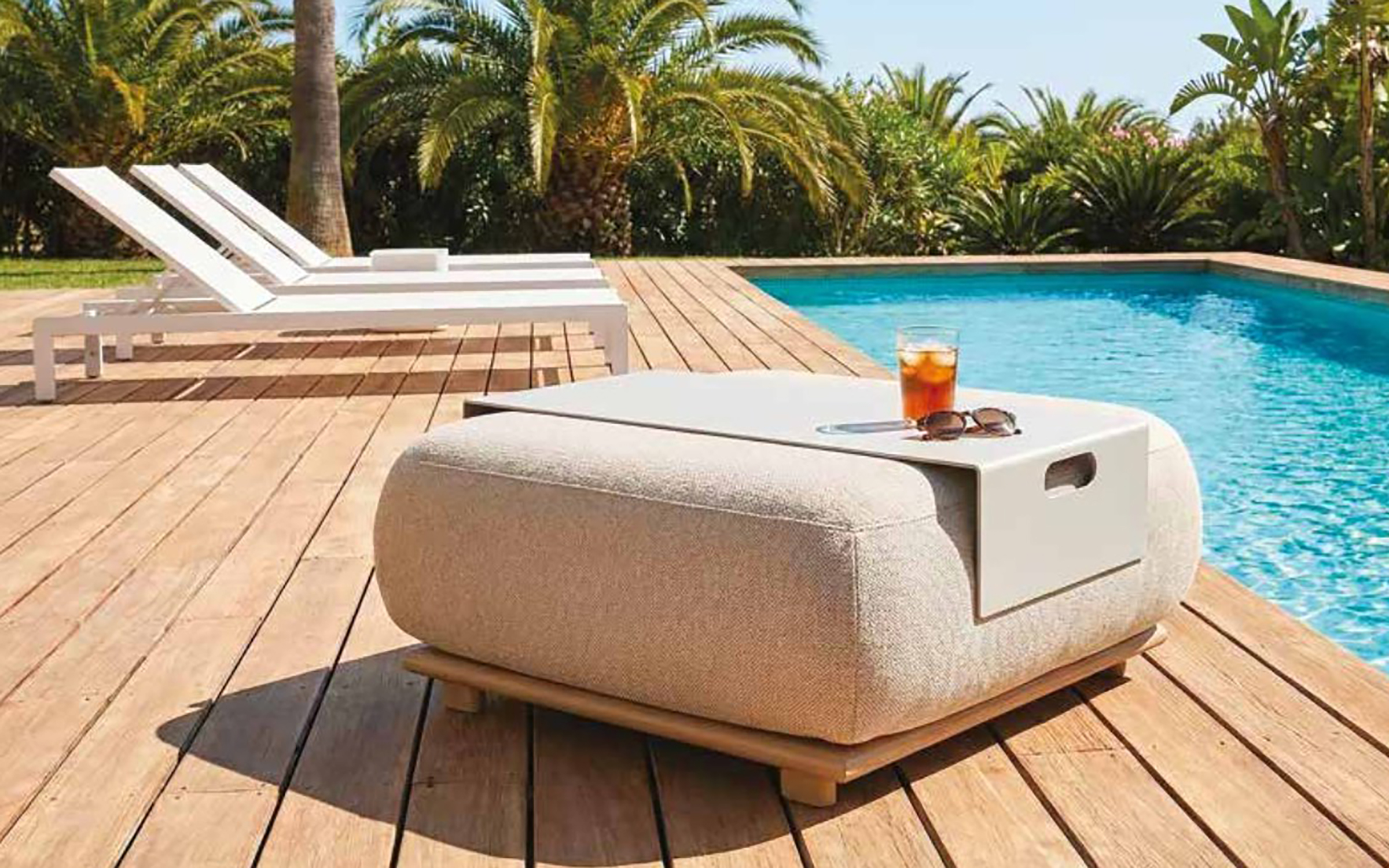 Siedziska i oparcia zostały wyposażone w grube, luksusowe poduszki w kolorze ciepłego beżu. Zastosowano w nich innowacyjne wypełnienie Quick Dry Foam (szybkoschnąca guma odpływowa), która dzięki swojej porowatej strukturze błyskawicznie odprowadza wodę po deszczu. Poszycie z wysokiej jakości tkaniny akrylowej gwarantuje trwałość koloru i odporność na plamy, pozostając jednocześnie niezwykle przyjemnym w dotyku.
