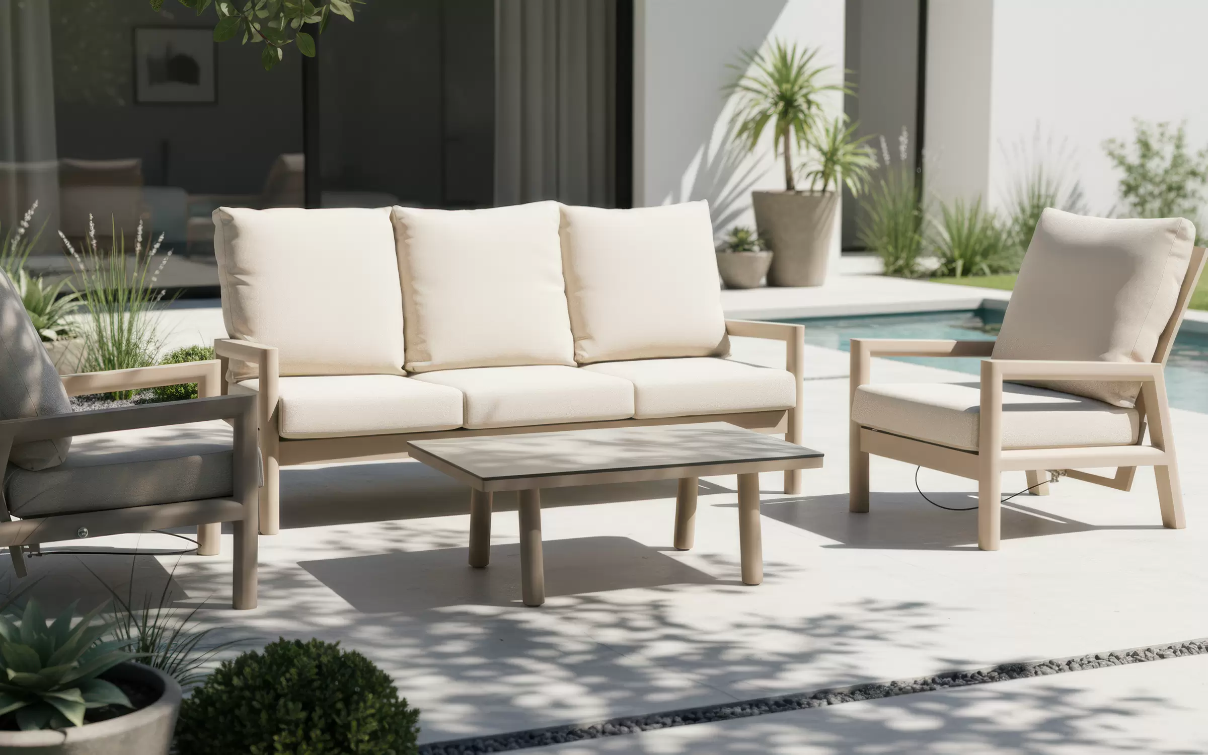 SEVILLA to ekskluzywna sofa ogrodowa 3‑osobowa, zaprojektowana z myślą o nowoczesnych przestrzeniach wypoczynkowych. Jej elegancka, lekko zaokrąglona linia oraz masywne, miękkie poduszki tworzą wyjątkowo komfortową strefę relaksu, idealną na tarasy, ogrody i strefy basenowe.