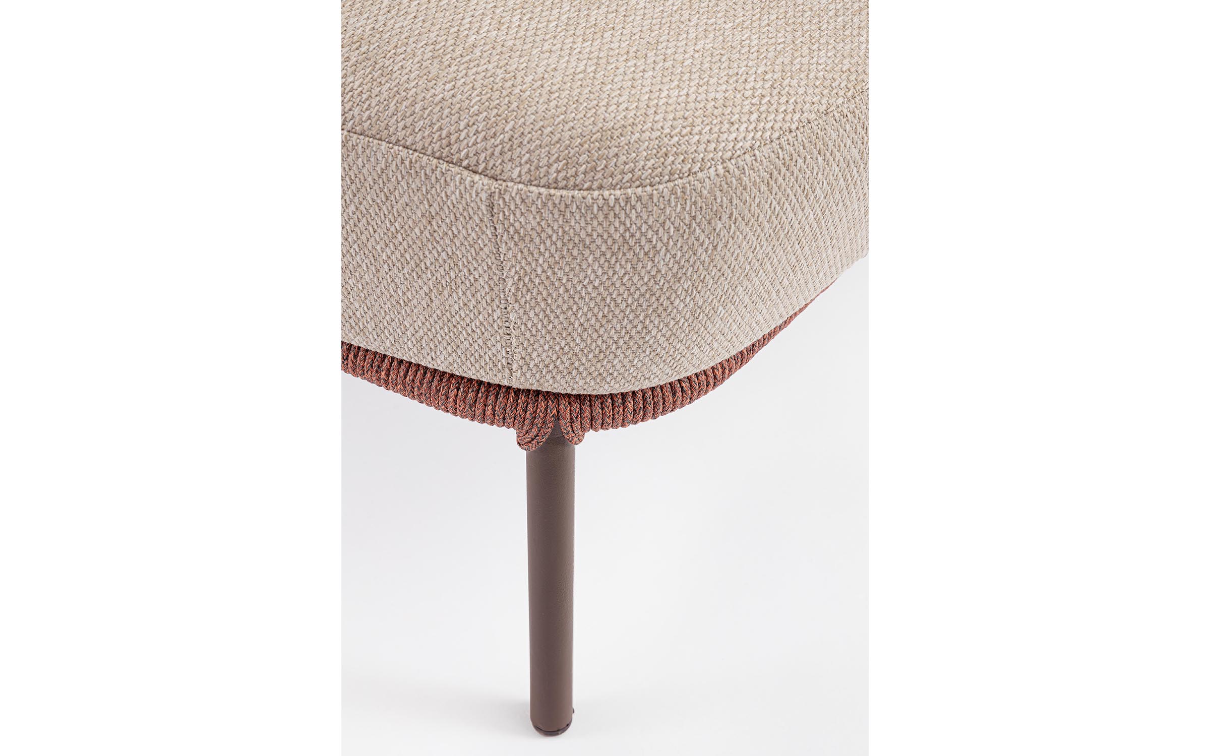Boki i oparcie oplecione liną polipropylenową, wodoodporne i odporne na uv.