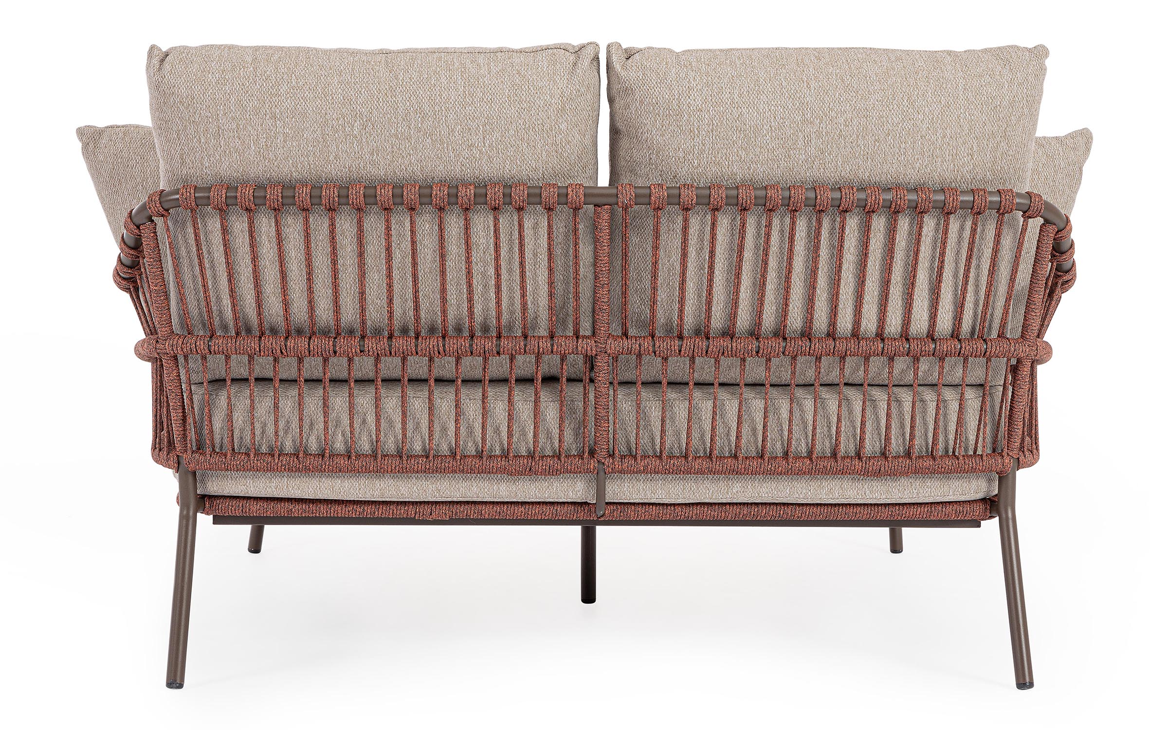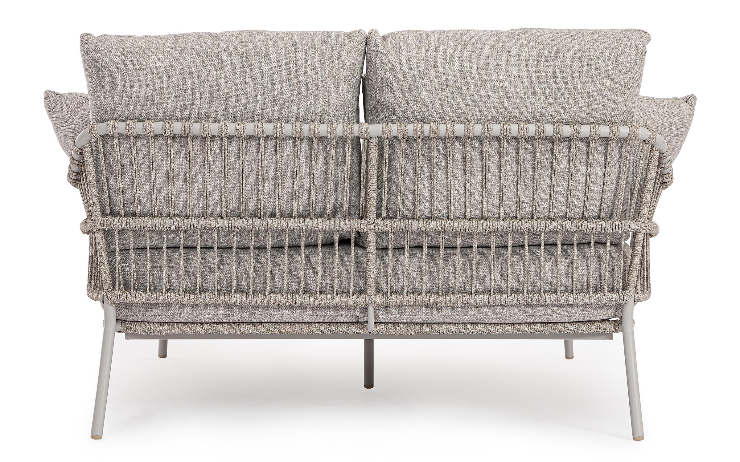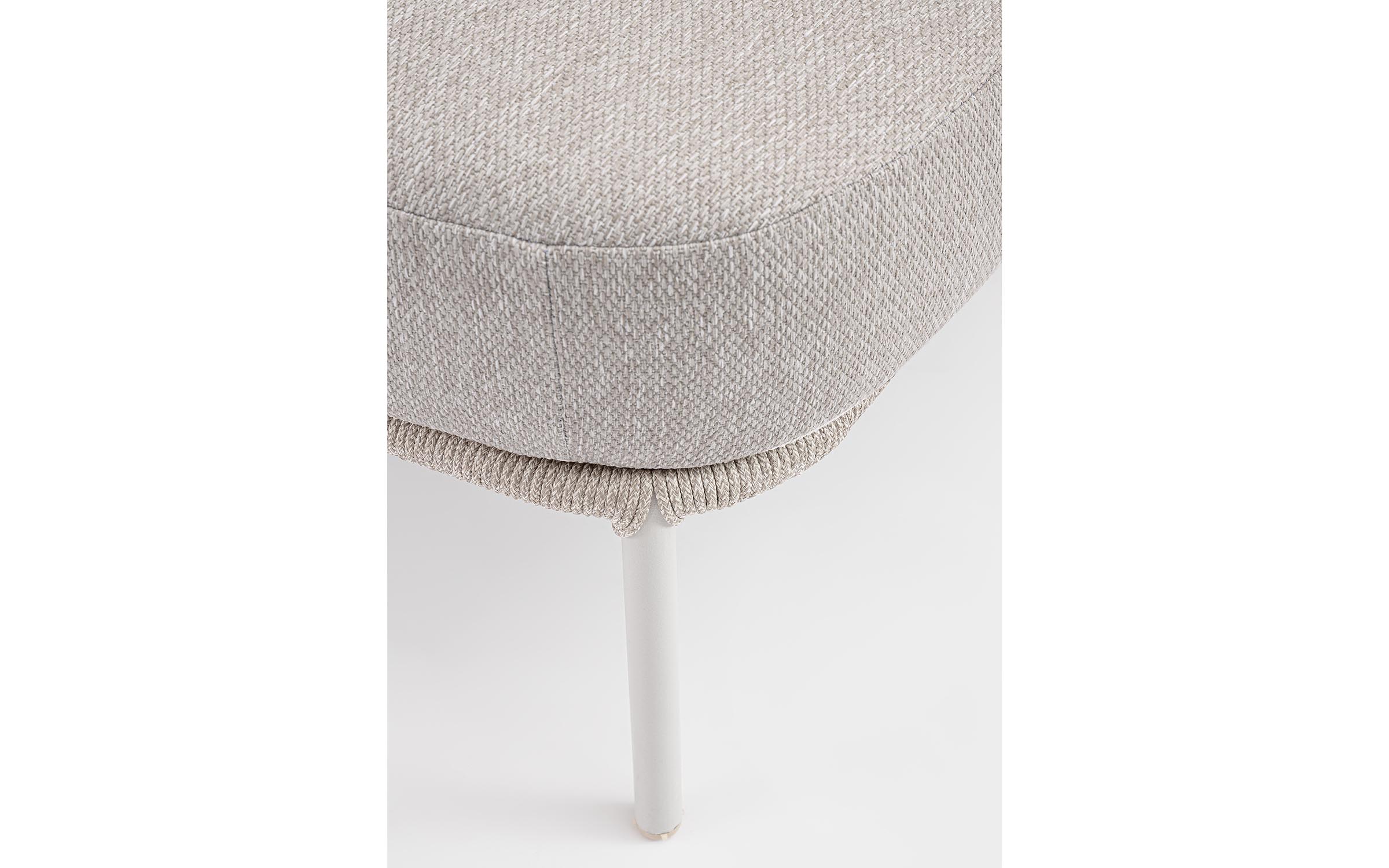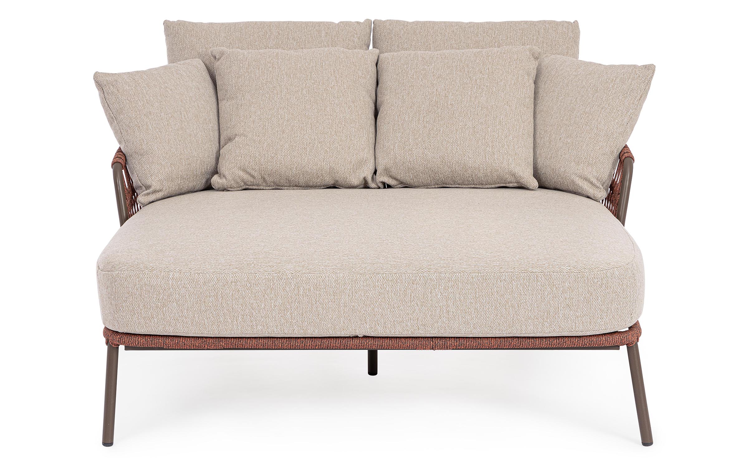 Nowoczesna leżanka dla 2 osób ogrodowa Talaia na nowoczesny taras. Konstrukcja ze stali nierdzewnej w malowaniu proszkowym opleciona lekkim oplotem z liny polipropylenowej.
