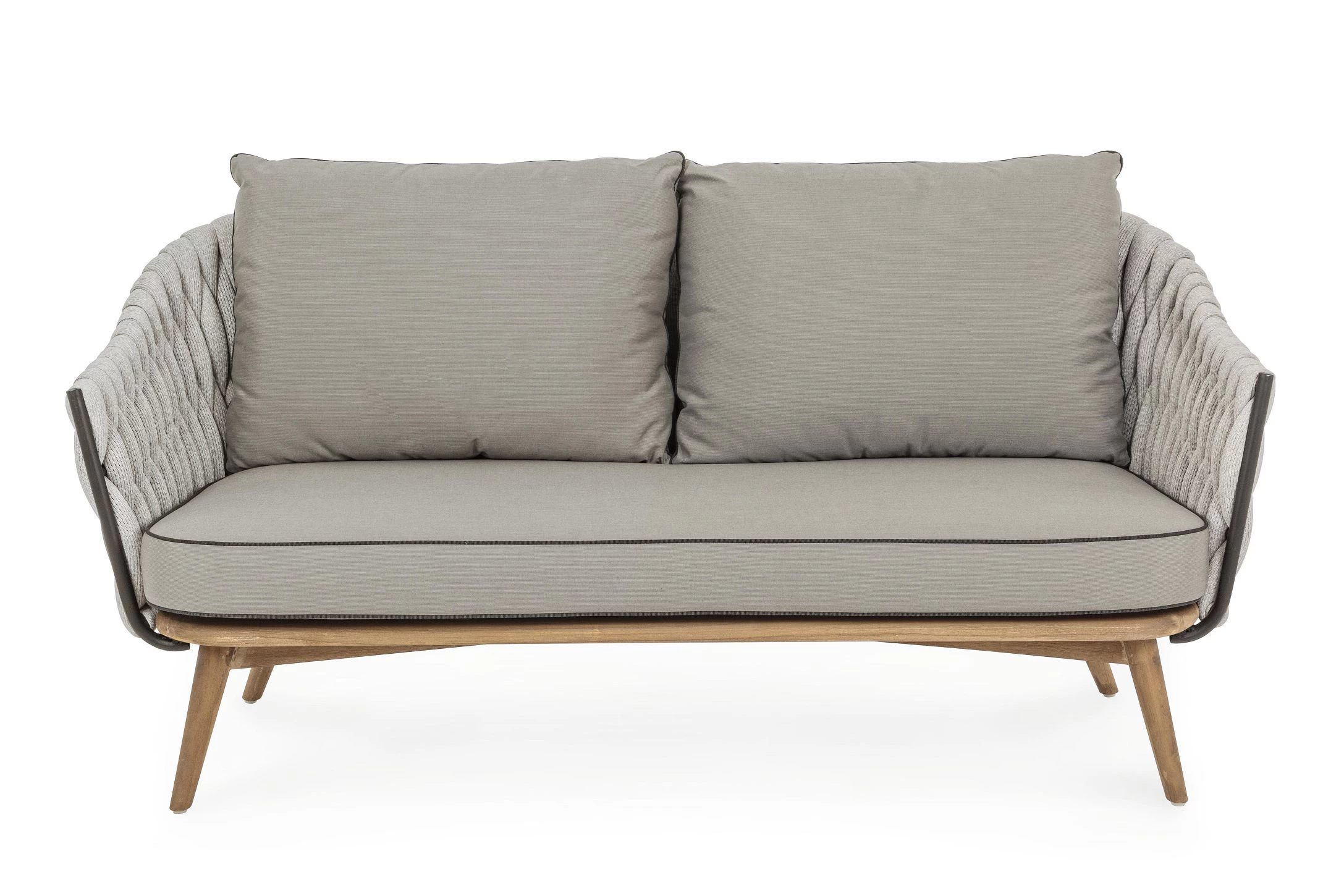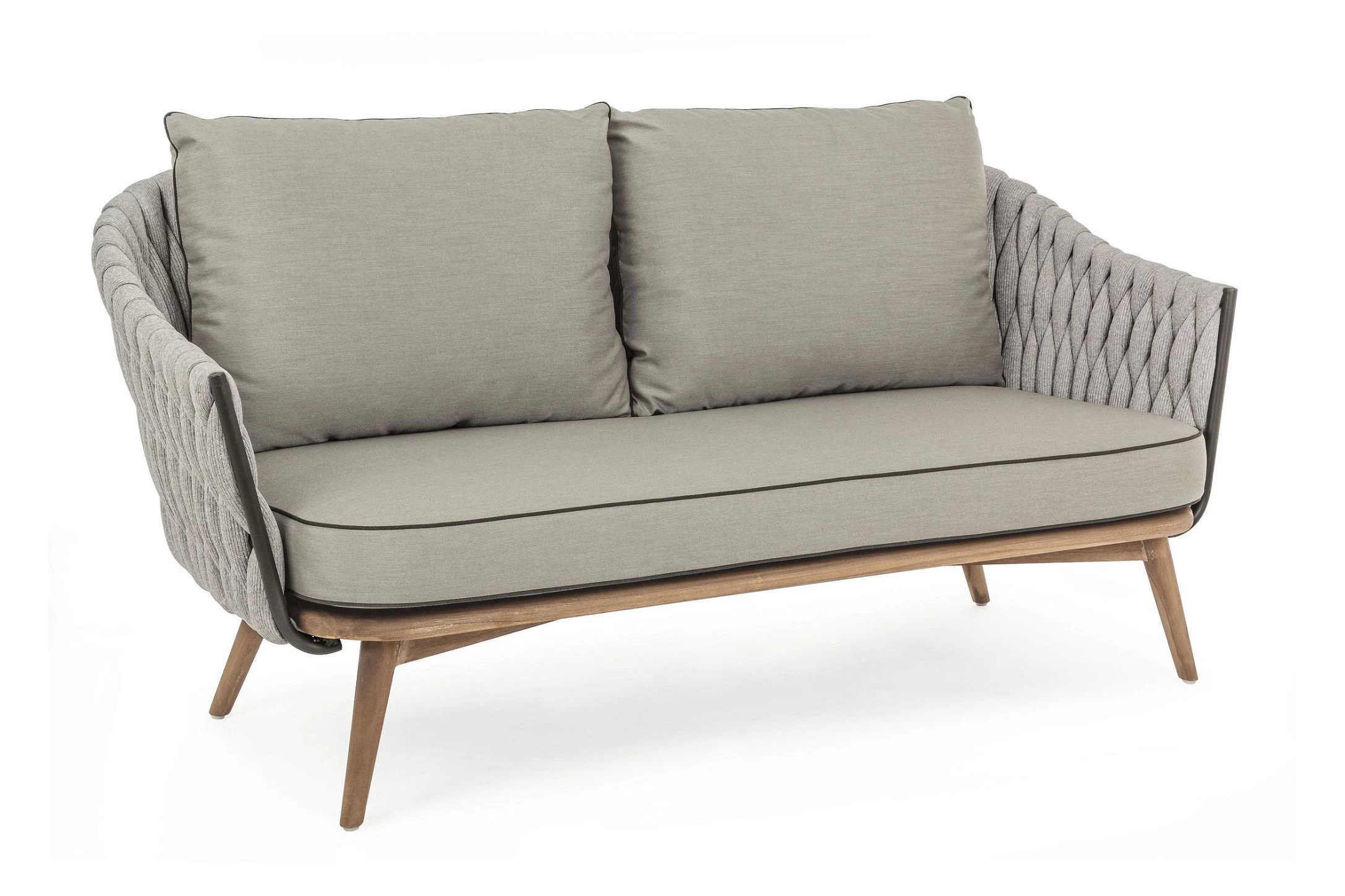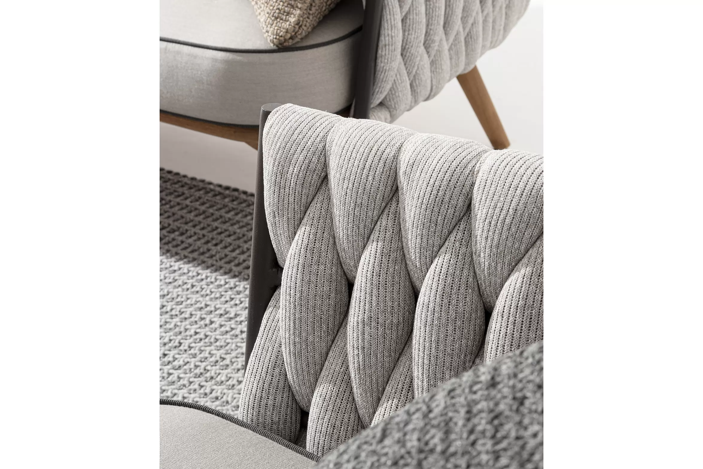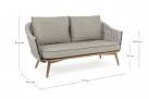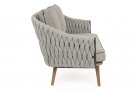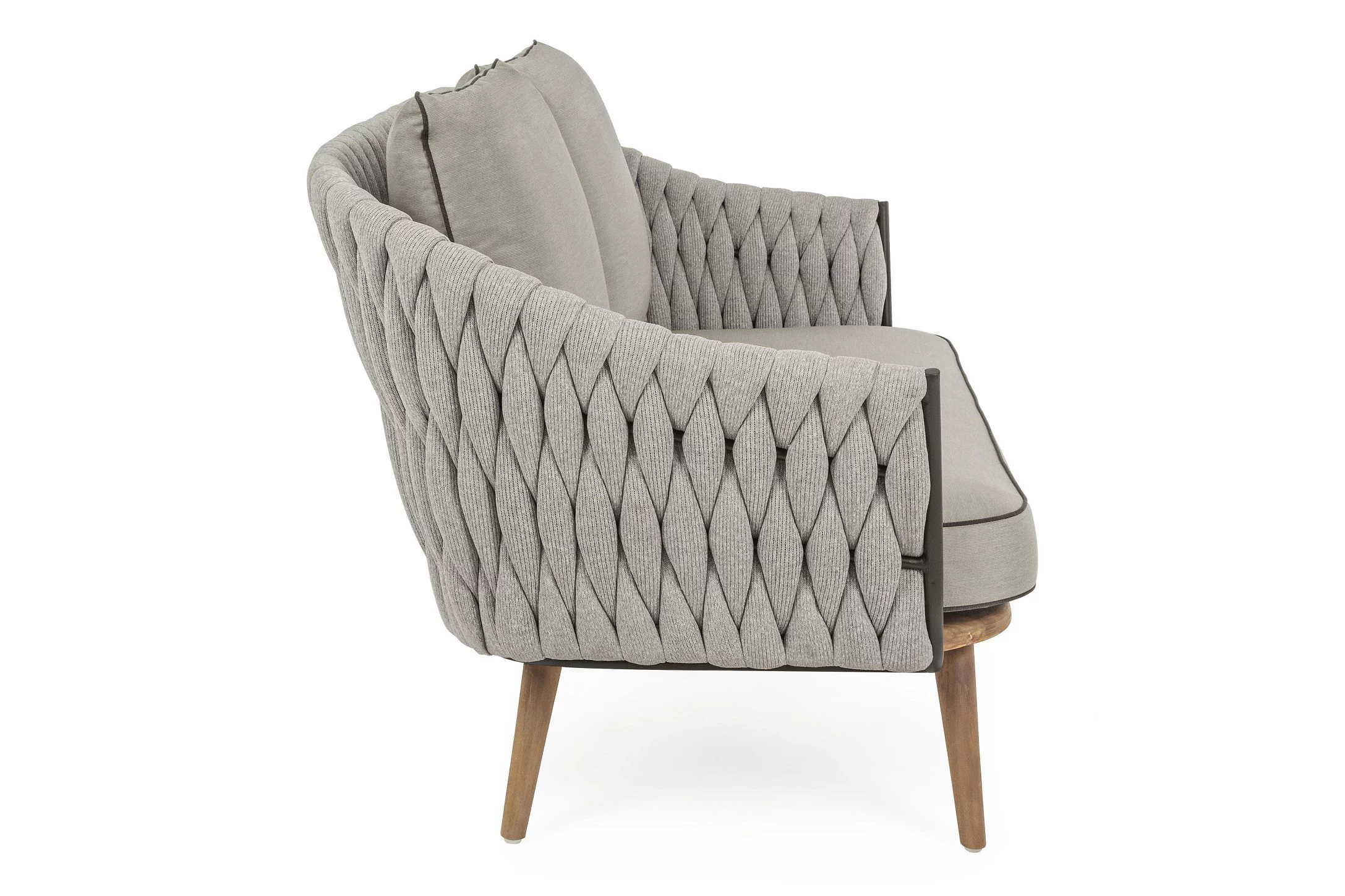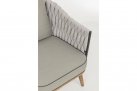 Aluminiowa konstrukcja oparcia malowana proszkowo. Podstawa mebli oraz stolik i nogi z teku - svlk (prawne drewno indonezyjskie), z rustykalnym wykończeniem.