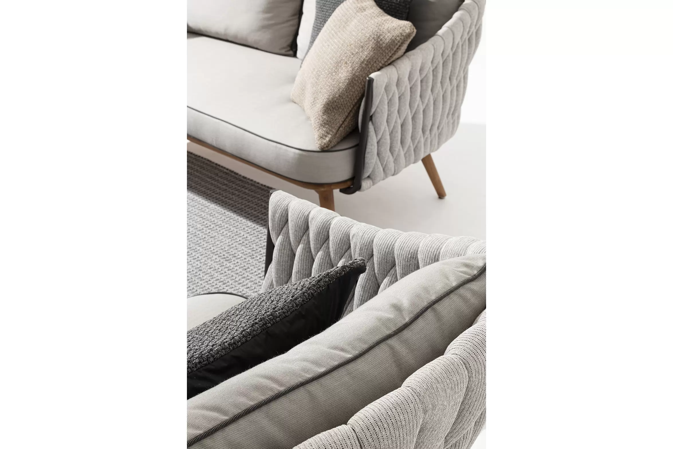 Poduszki z zdejmowaną poszewką do użytku zewnętrznego Sunbrella (100% akrylu), wodoodporne i odporne na UV. Wypełnienie wodoodporne z szybko schnącej pianki (przeciw wilgoci).
