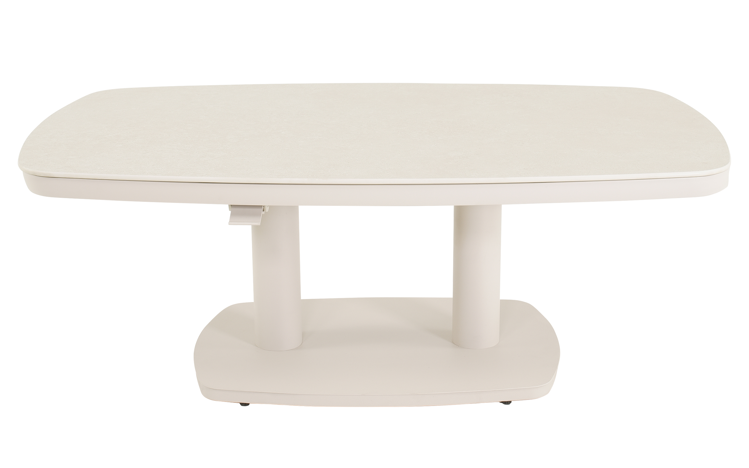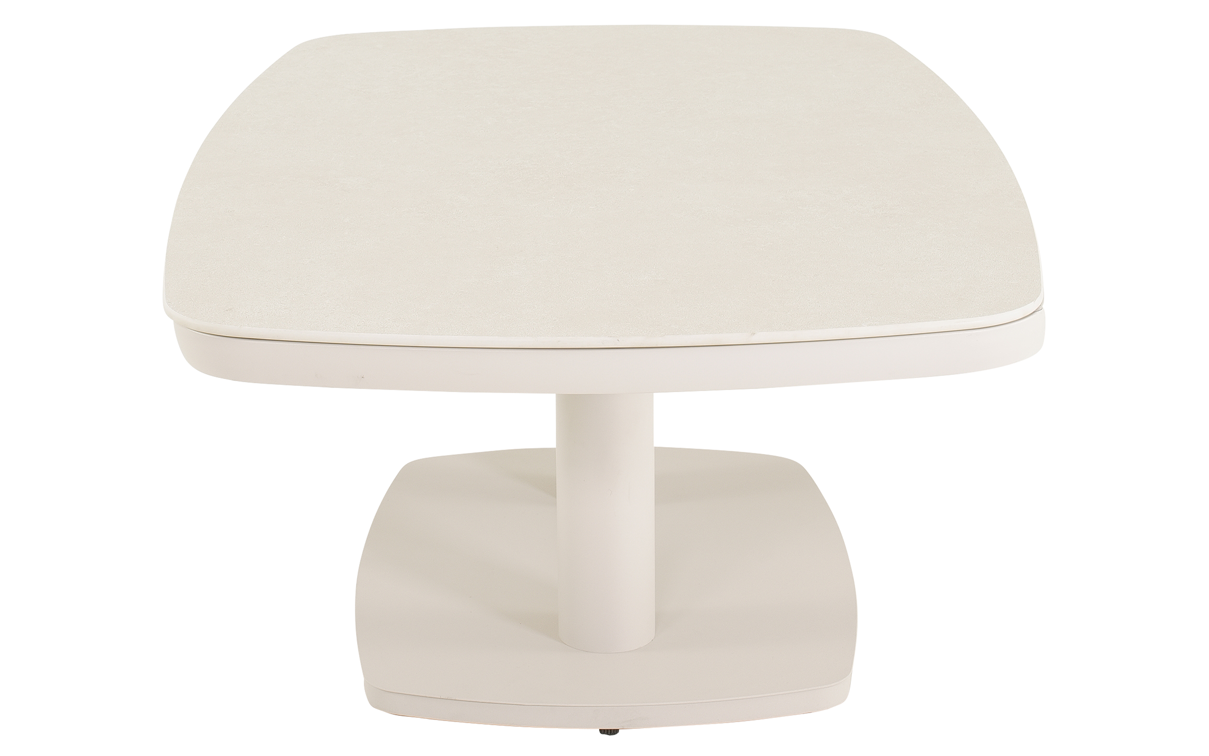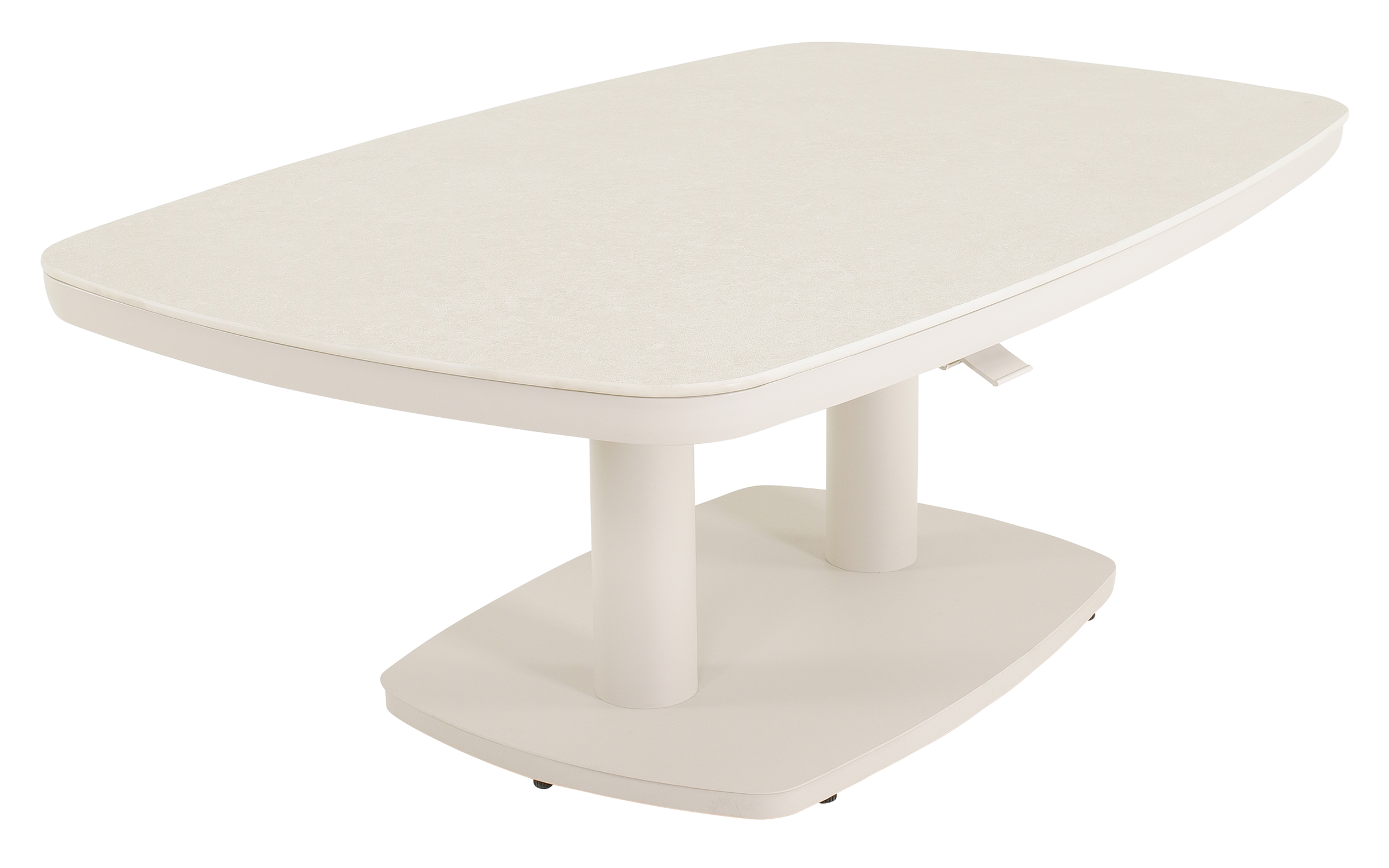 Stolik kawowy GENEVA to funkcjonalny mebel ogrodowy z płynnie regulowanym blatem. Blat wykonany z kamienia spiekanego o grubości 9 mm jest odporny na wilgoć i zarysowania, a konstrukcja aluminiowa w kolorze matowego beżu zapewnia trwałość i stabilność. Mechanizm gazowy umożliwia łatwe podnoszenie i opuszczanie blatu, który można zatrzymać na dowolnej wysokości.