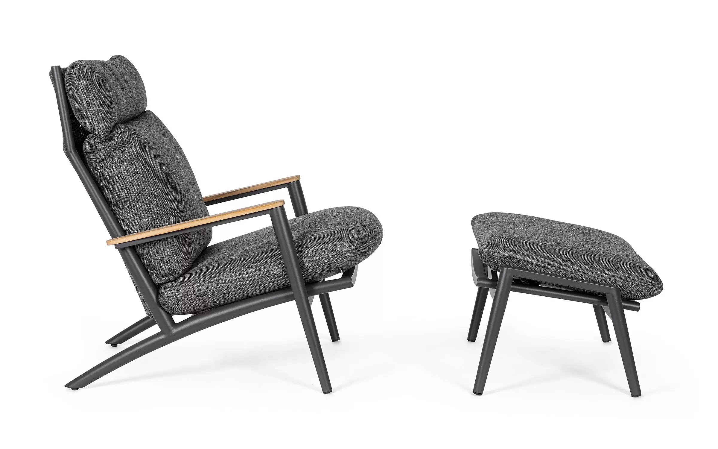 Duży fotel na taras wypoczynkowy aluminiowy z podnóżkiem IBISCO