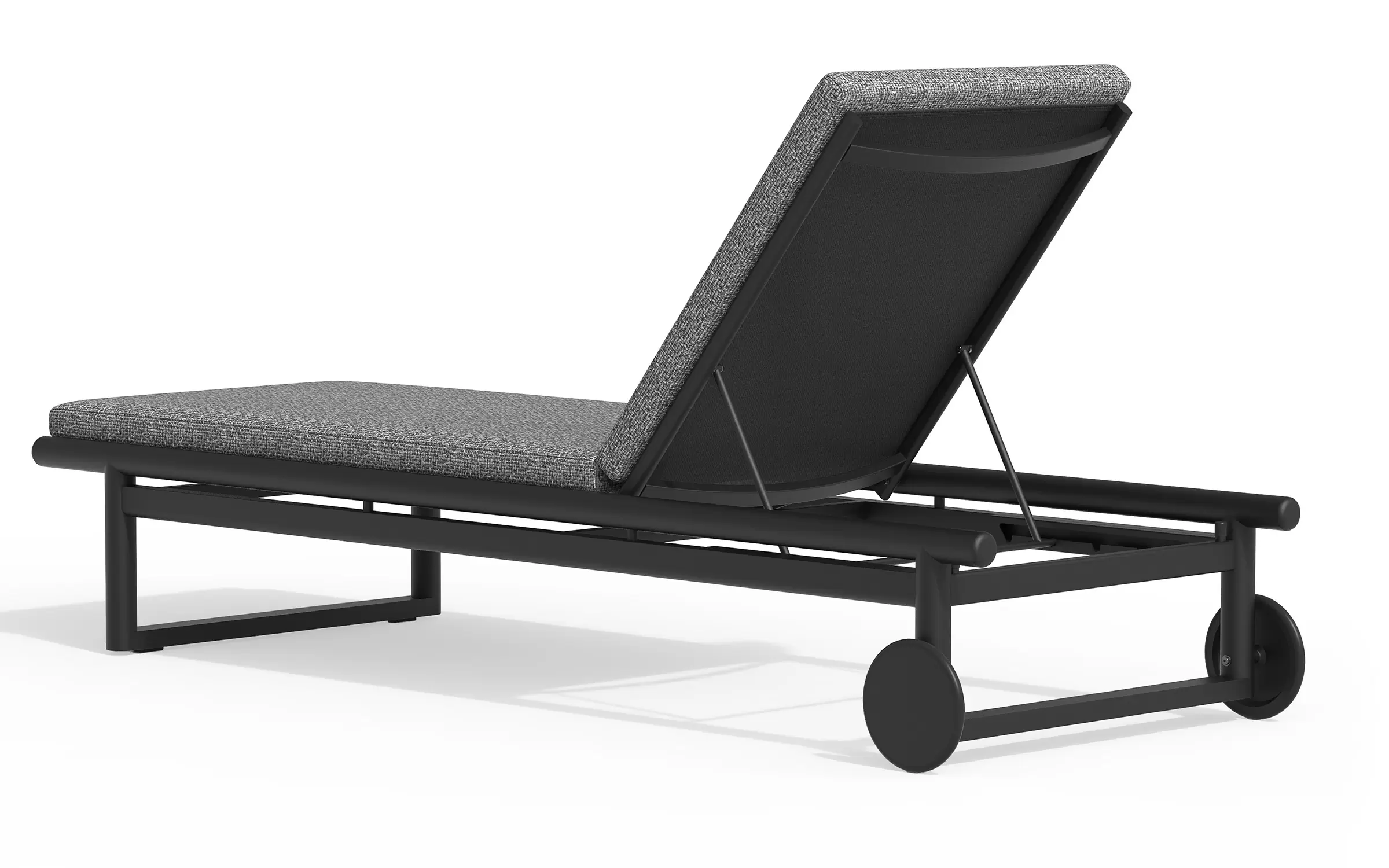 Funkcjonalność tego modelu definiuje wielostopniowa regulacja oparcia oraz zintegrowane kółka transportowe, ułatwiające mobilność na twardym podłożu i trawie. Aluminiowa rama jest w pełni odporna na korozję oraz skrajne warunki atmosferyczne, a spójne wykończenie pozwala na bezproblemowe łączenie leżaka z sofą lub fotelem z tej samej linii produktowej. Komfort wypoczynku podnosi materac z technicznej tkaniny Olefin z wypełnieniem z pianki szybkoschnącej (fast dry foam), co jest kluczowe przy kontakcie z wodą i wilgocią. Materiał ten charakteryzuje się wysoką odpornością na promieniowanie UV i zabrudzenia, a dzięki zdejmowanemu pokrowcowi, czyszczenie mebla jest szybkie i bezproblemowe.