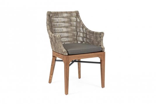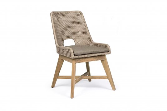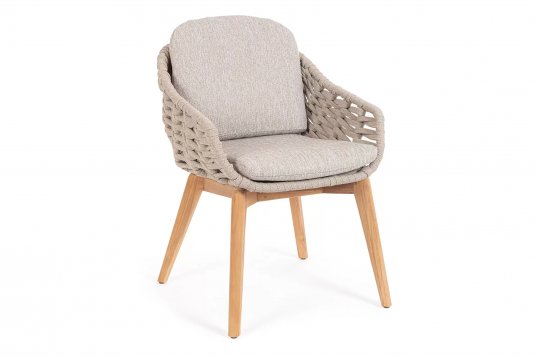 Połączenie drewna tekowego i liny polipropylenowej w jednym krześle ogrodowym tworzy harmonijną kompozycję, która łączy naturalne piękno teaku z nowoczesnymi właściwościami polipropylenu. Taki design nie tylko przyciąga wzrok, ale również zapewnia wyjątkowy komfort użytkowania.