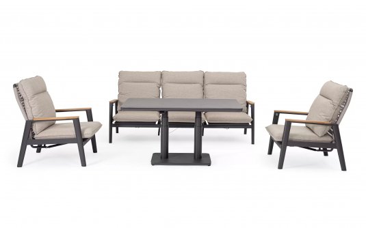 meble ogrodowe SOHO - aluminiowy komplet wypoczynkowy antracyt teak