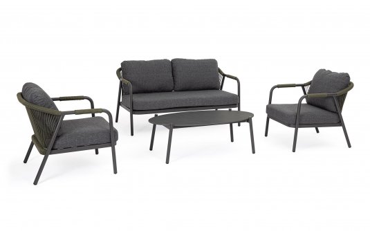 Komplet wypoczynkowy na taras o lekkiej konstrukcji ze stali nierdzewnej malowanej proszkowo / plecionka z liny polipropylenowej / eleganckie poduszki Bounce