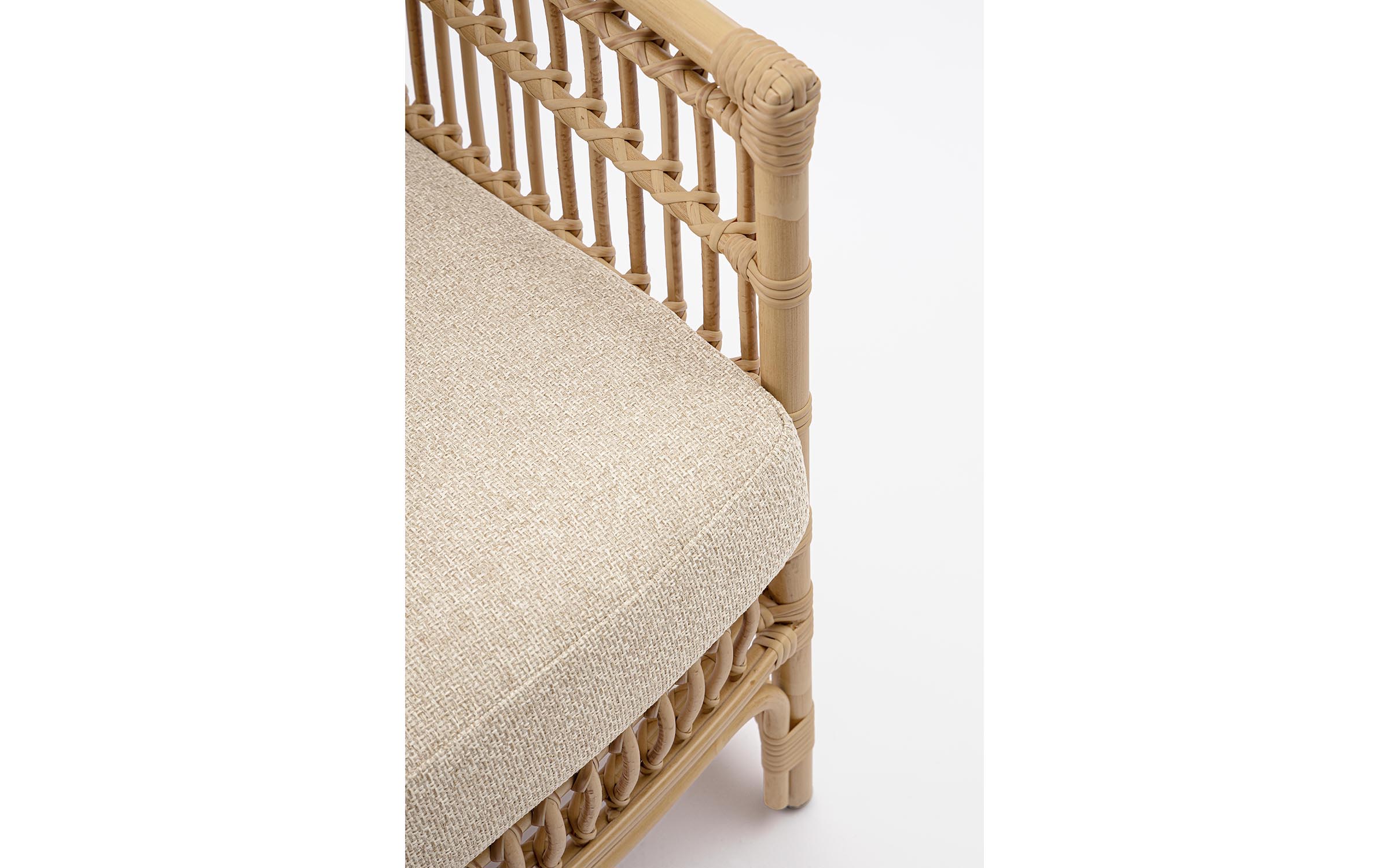 Beżowe poduszki zapewniają wygodę siedziska wyposażone są w zdejmowalne poszewki z materiału Olefin.