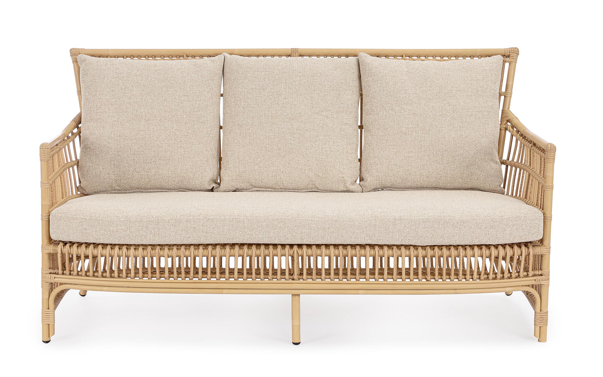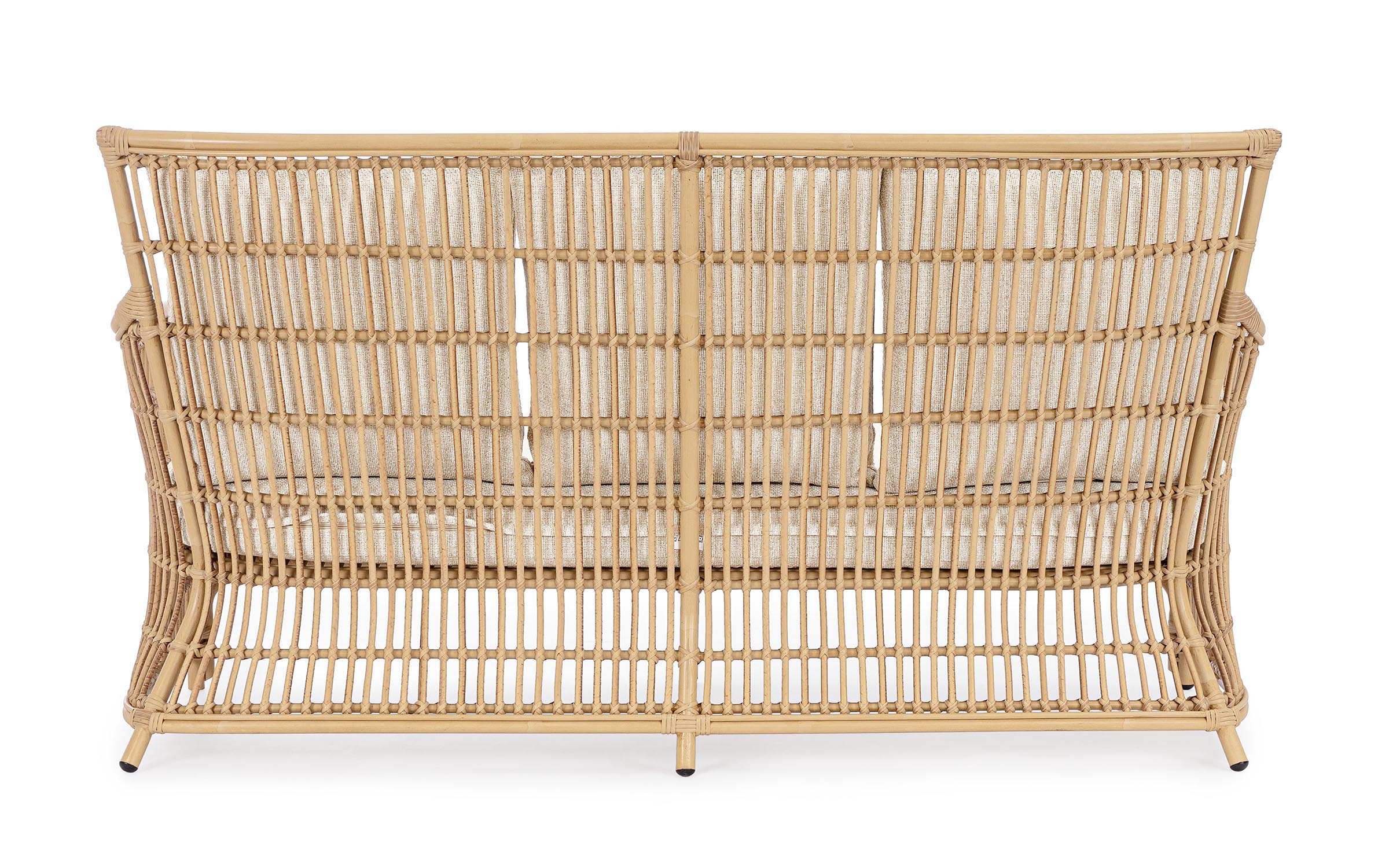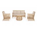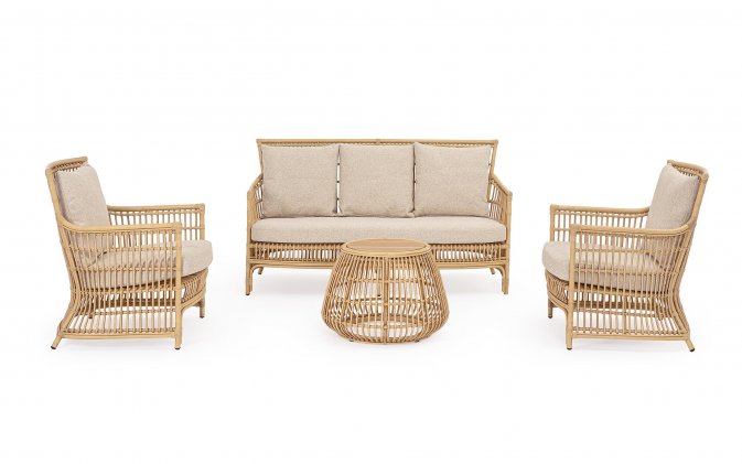 Klasyczny w formie komplet wypoczynkowy wykonany z nowoczesnych materiałów. Aluminiowe profile malowane proszkowo z technologią sublimacji tworzące powłokę imitująca naturalny rattan. Taka powłoka jest odporna na warunki atmosferyczne i UV.