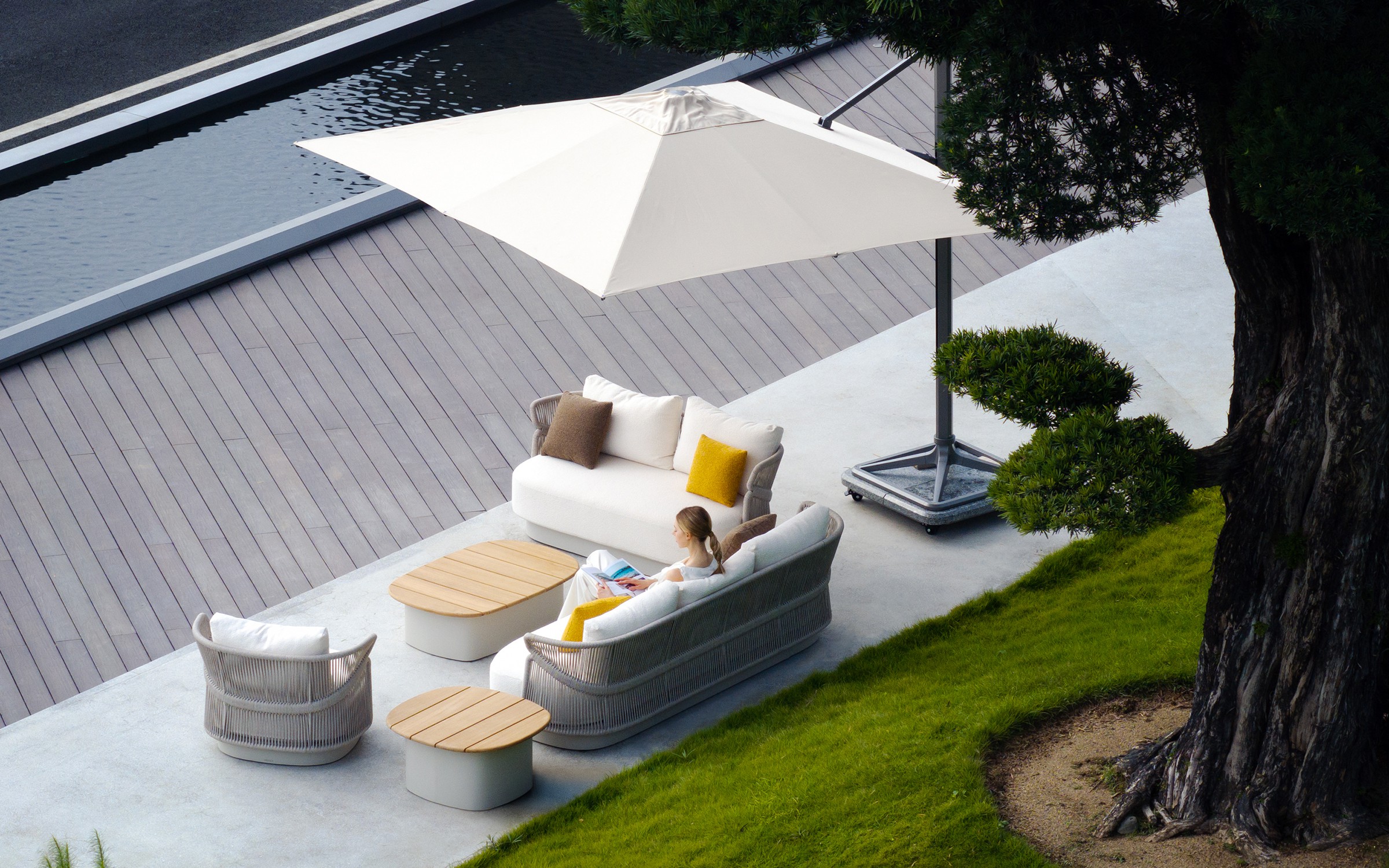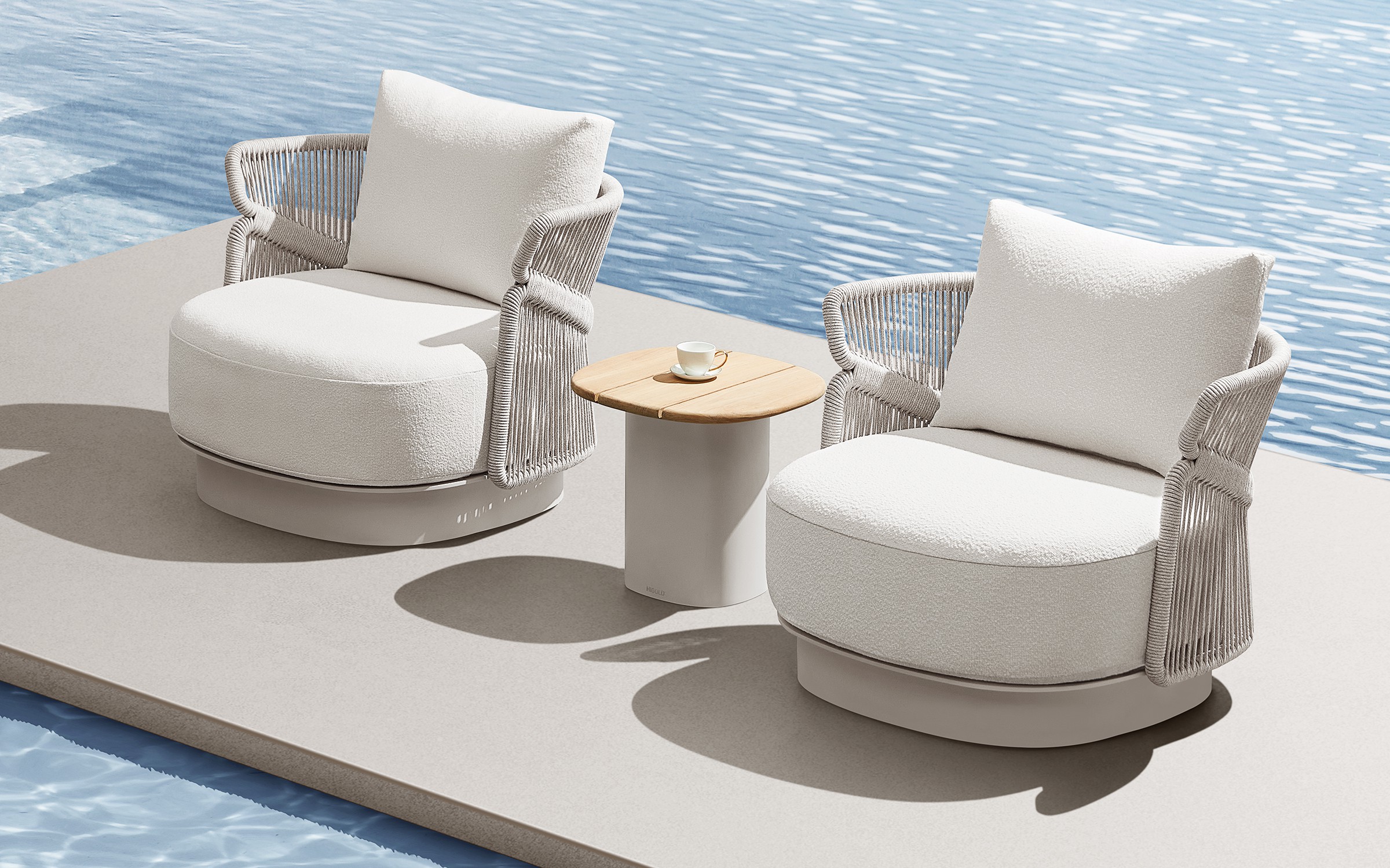 Meble AIO zostały wyposażone w grube, miękkie poduszki z tkaniny Olefin, odpornej na wilgoć, promieniowanie UV i codzienne użytkowanie. Dzięki nim wypoczynek na świeżym powietrzu staje się prawdziwą przyjemnością – zarówno w codziennym użytkowaniu, jak i podczas spotkań w gronie rodziny czy przyjaciół.