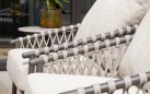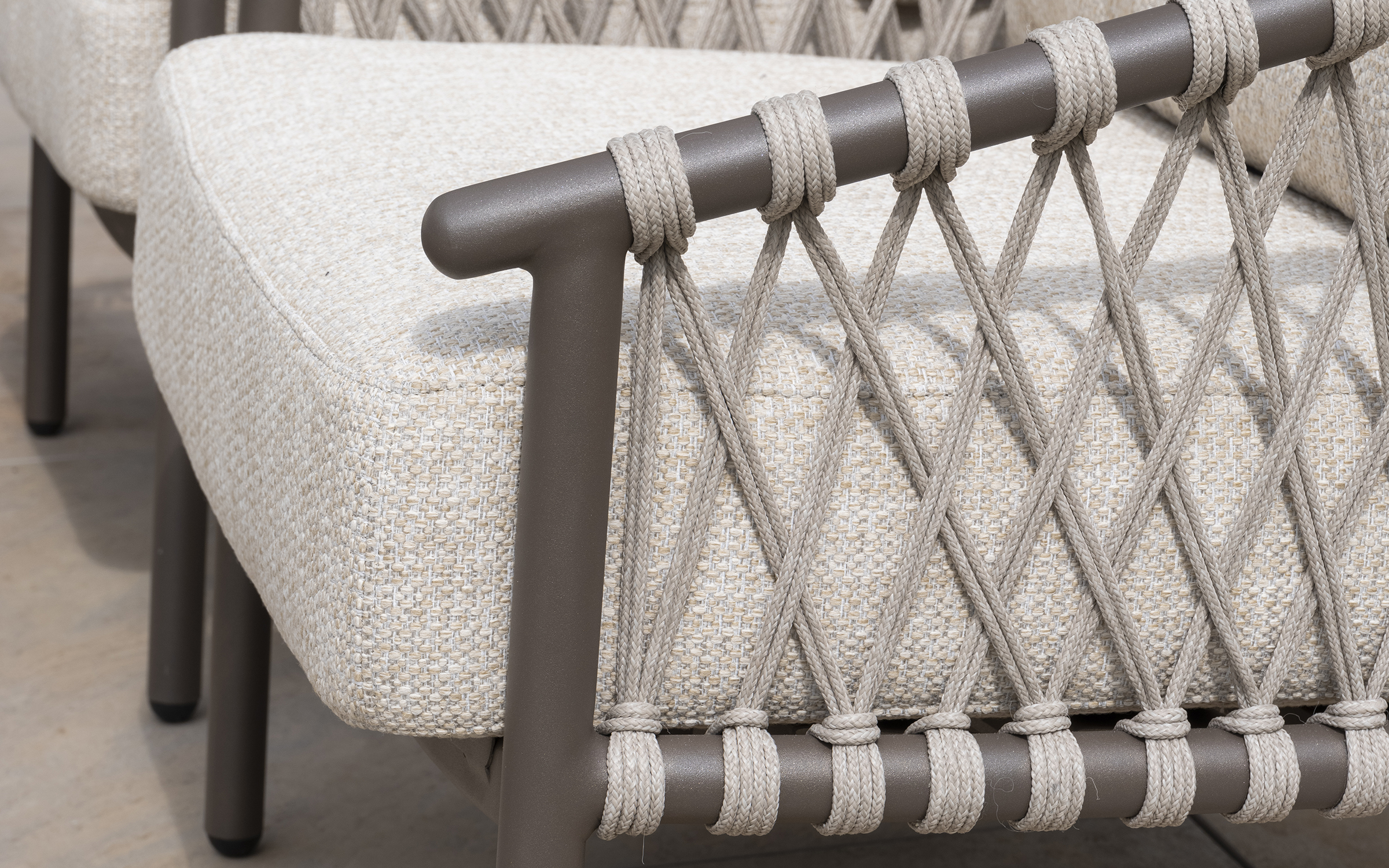 Boki i oparcie oplecione liną polipropylenową, wodoodporne i odporne na uv.