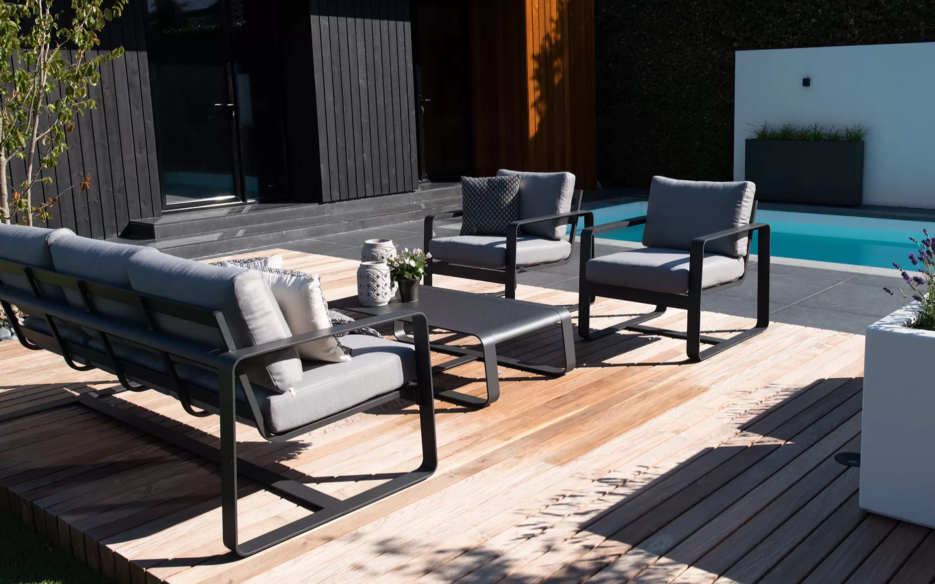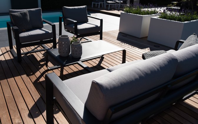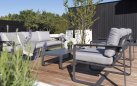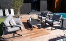 Lesli Living Zestaw wypoczynkowy Belezza to eleganckie meble ogrodowe, które pozwolą stworzyć w przestrzeni zewnętrznej komfortowe miejsce do relaksu i spotkań towarzyskich. Zestaw wyróżnia się nowoczesnym wzornictwem oraz elegancką kolorystyką w odcieniu antracytu, dzięki czemu doskonale komponuje się zarówno z minimalistycznymi, jak i klasycznymi aranżacjami ogrodowymi.