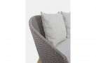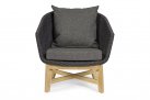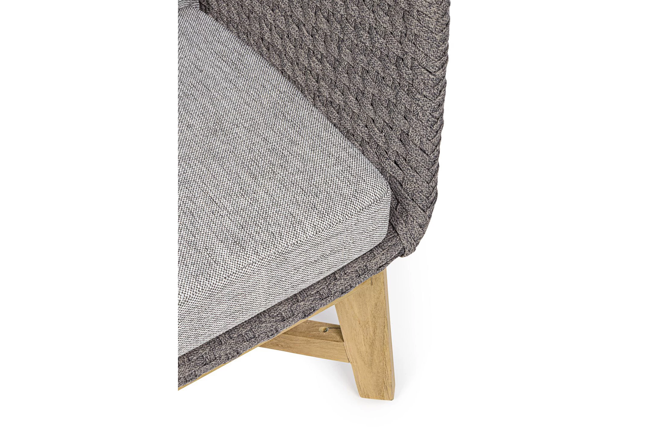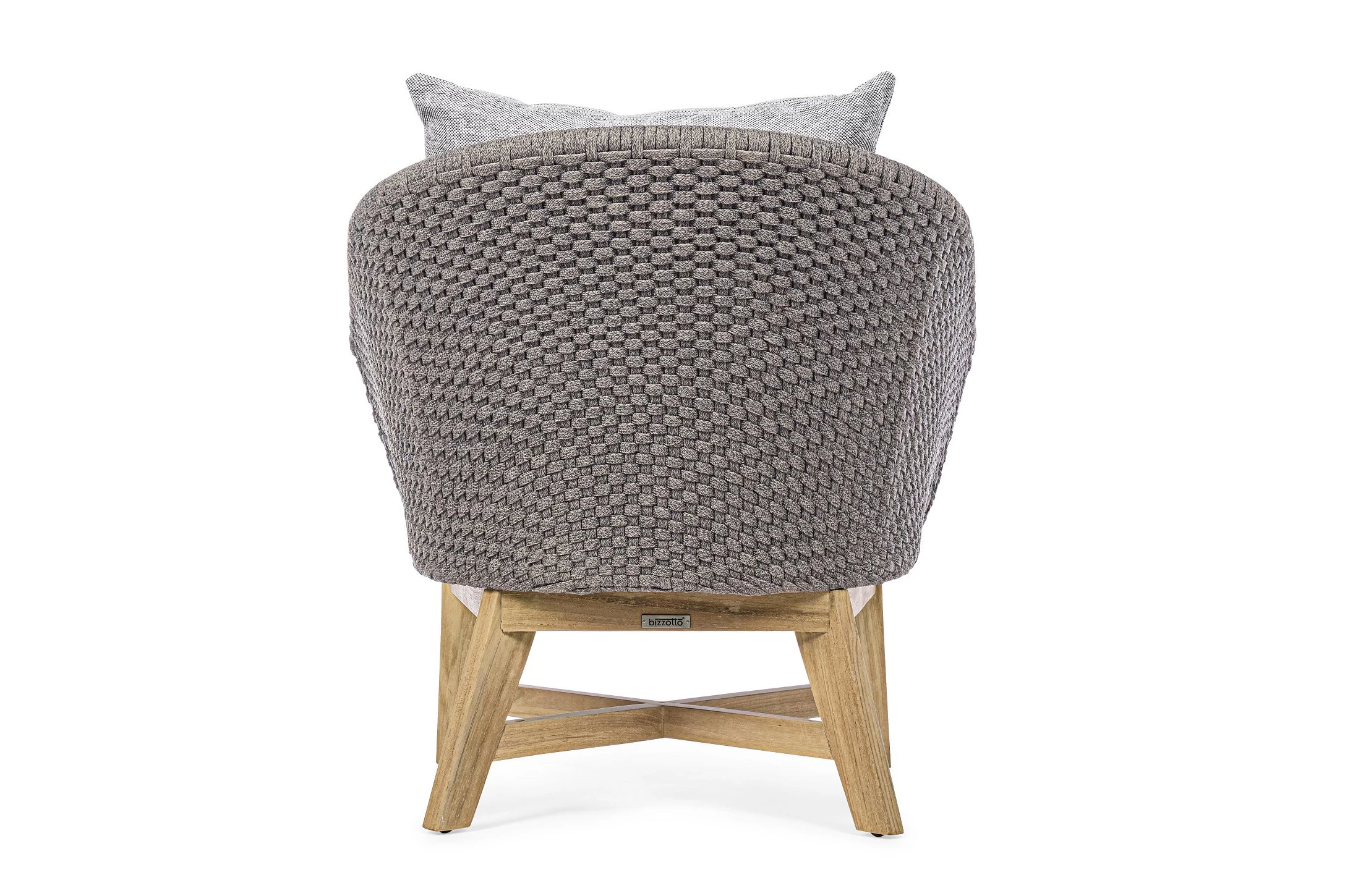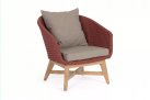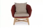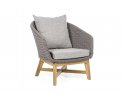 Fotel ogrodowy nowoczesny z podstawą z drewna teak i siedziskami wyplatanymi lina polipropylenową. Każdy element kolekcji można zakupić osobno.