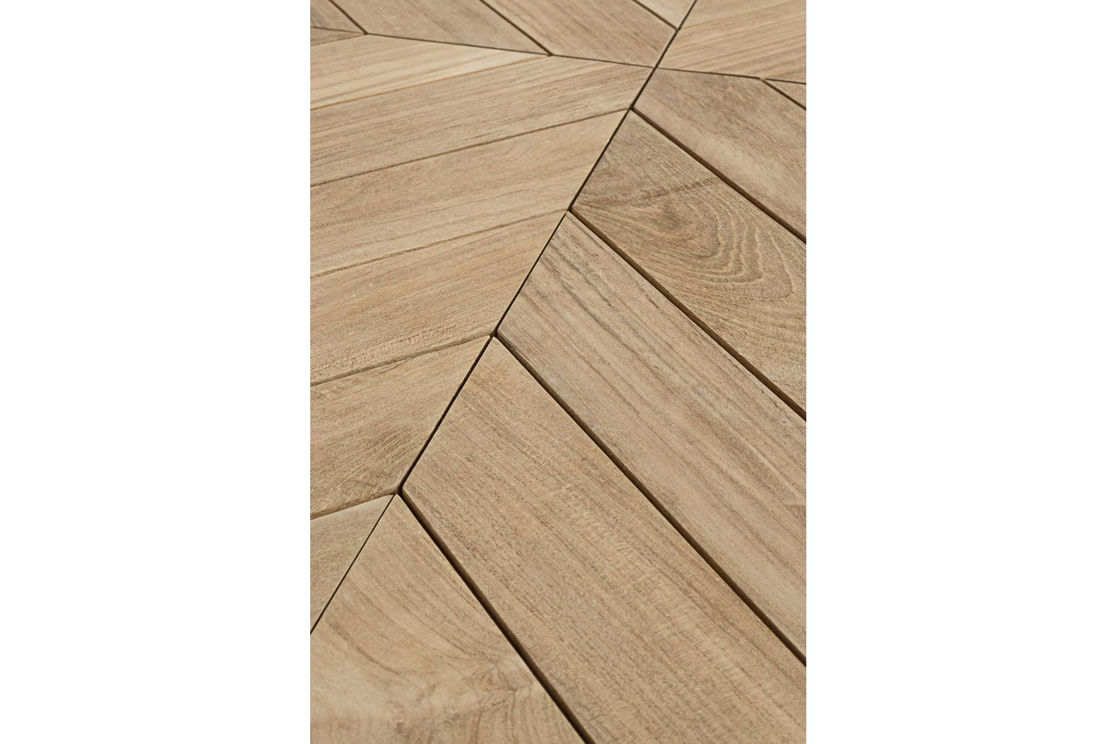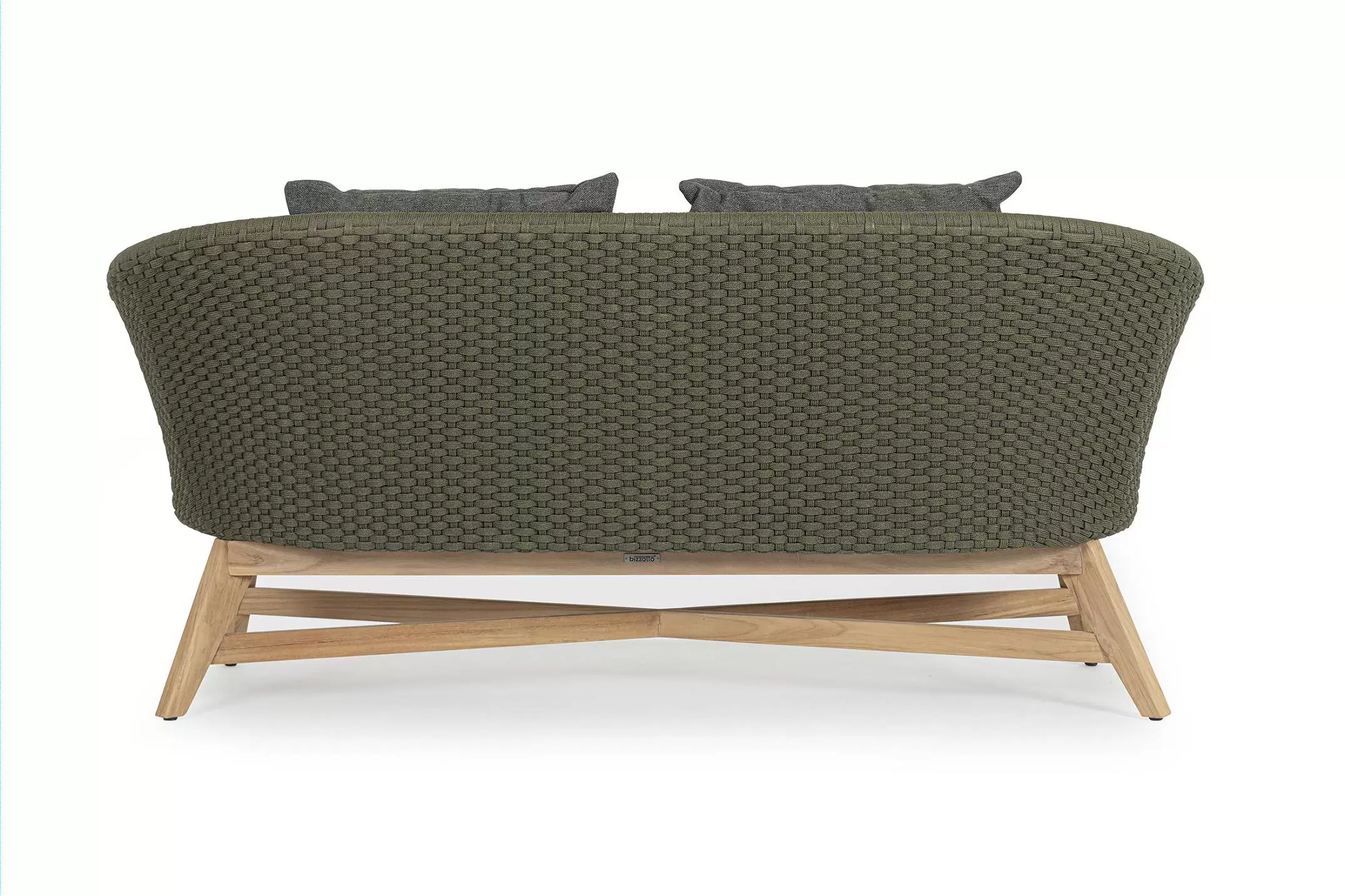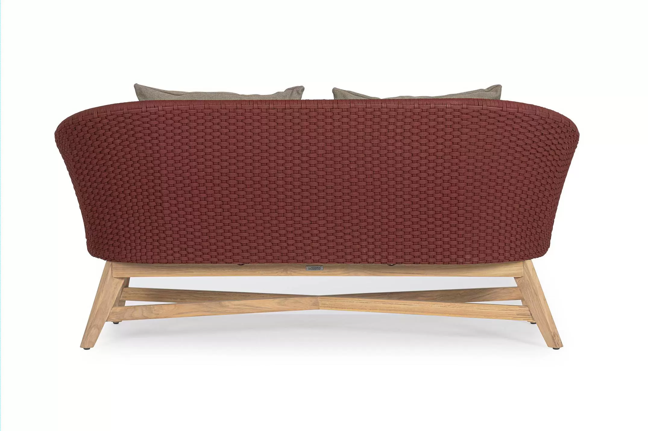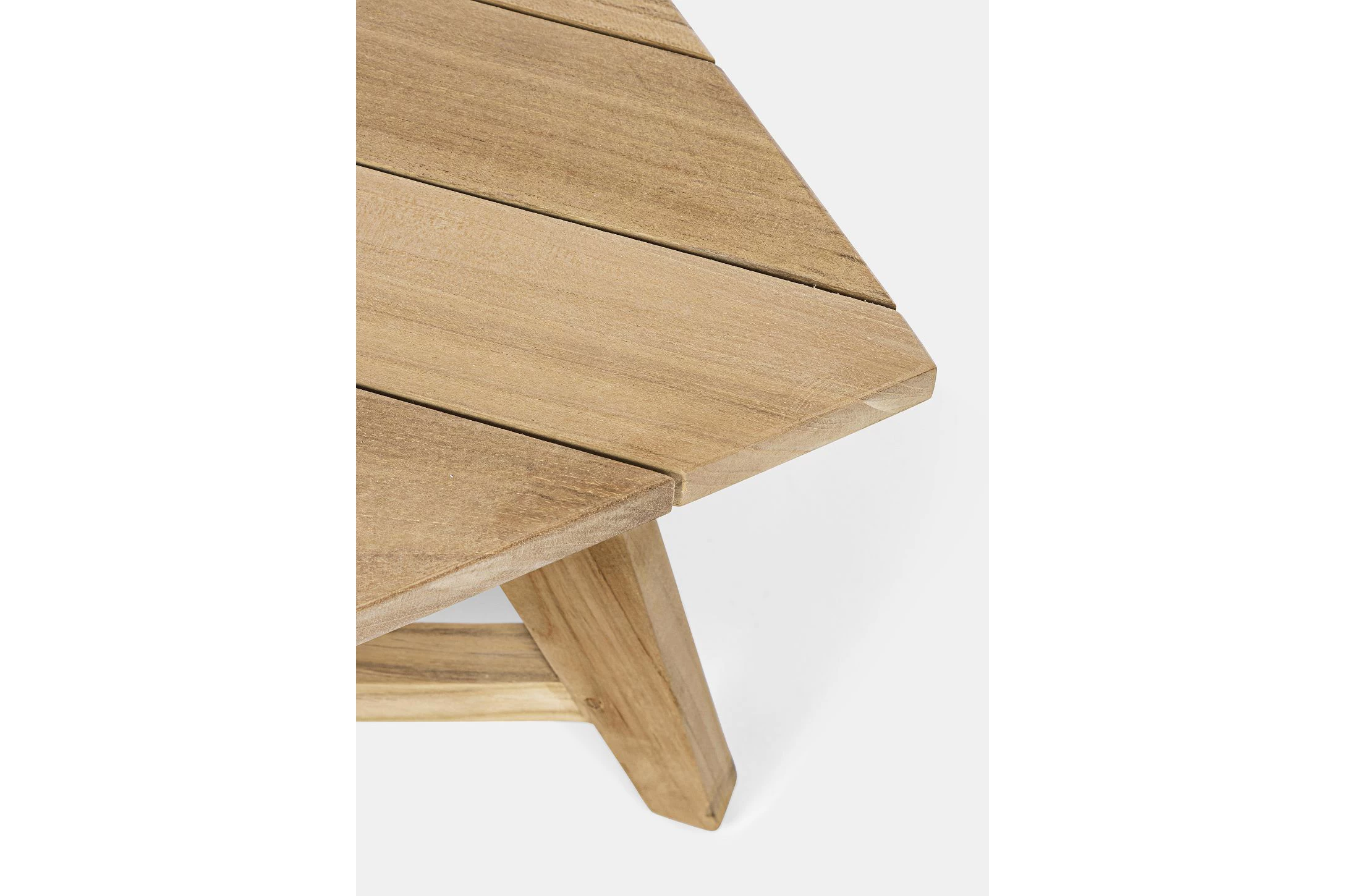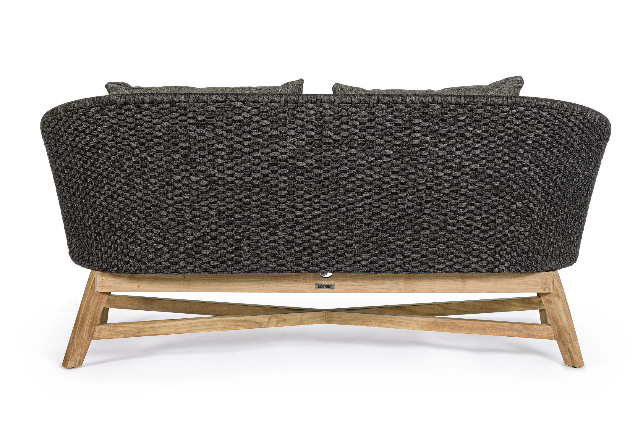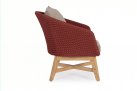 Meble ogrodowe nowoczesne z podstawą z drewna teak i siedziskami wyplatanymi lina polipropylenową. Każdy element kolekcji można zakupić osobno. Stoliki prostokątny lub owalny do wyboru.