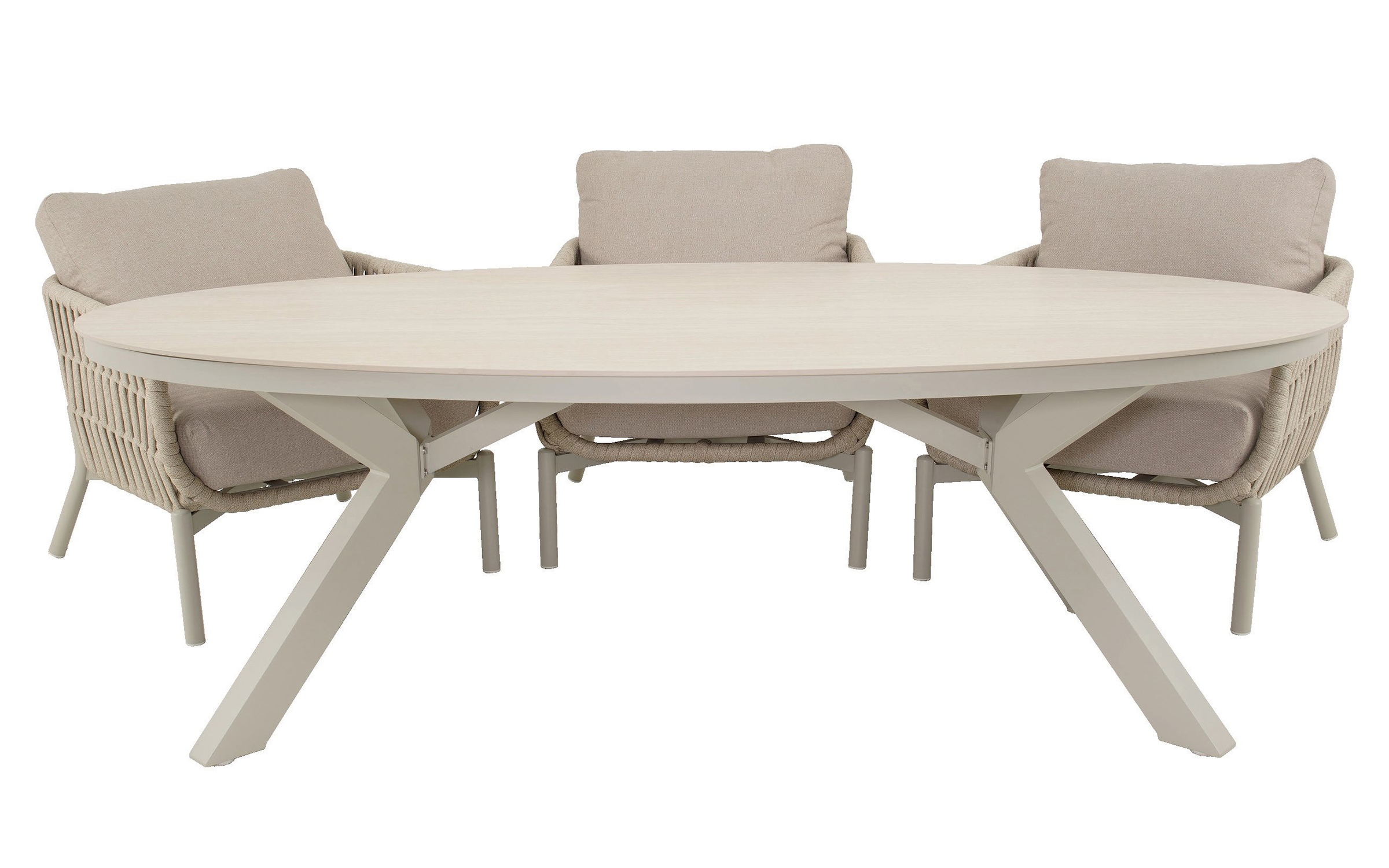 Nowoczesny stół ogrodowy DAVOS Low Dining to połączenie elegancji, funkcjonalności i komfortu wypoczynku. Konstrukcja wykonana z aluminium malowanego proszkowo w odcieniu beżowym zapewnia trwałość i odporność na warunki atmosferyczne. Blat z płyty sintered stone o grubości 9 mm wyróżnia się wysoką odpornością na zarysowania, wilgoć i promieniowanie UV.