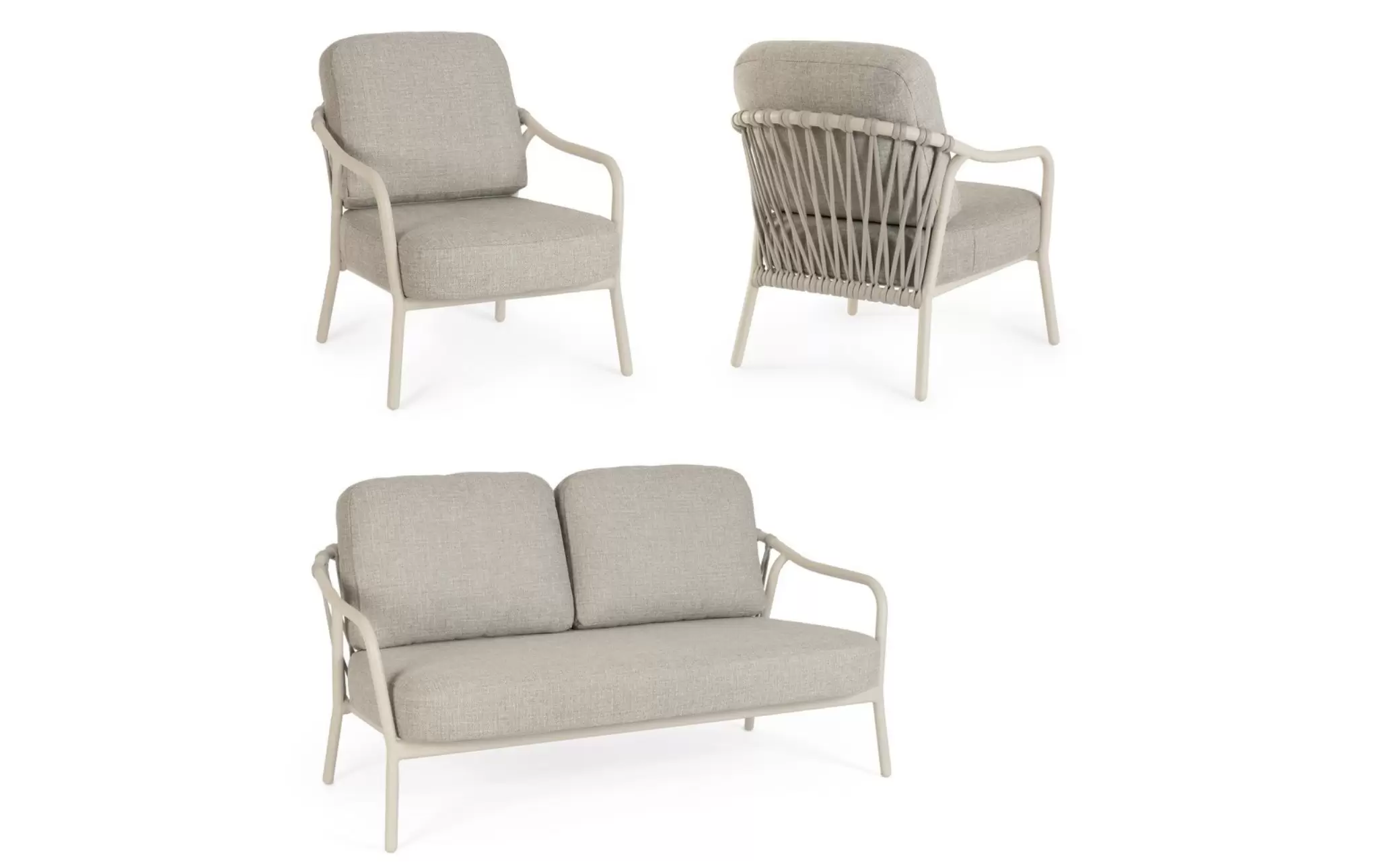 EDVIGE Zestaw ogrodowy sofa 2,5 os. 2 fotele aluminium lina
