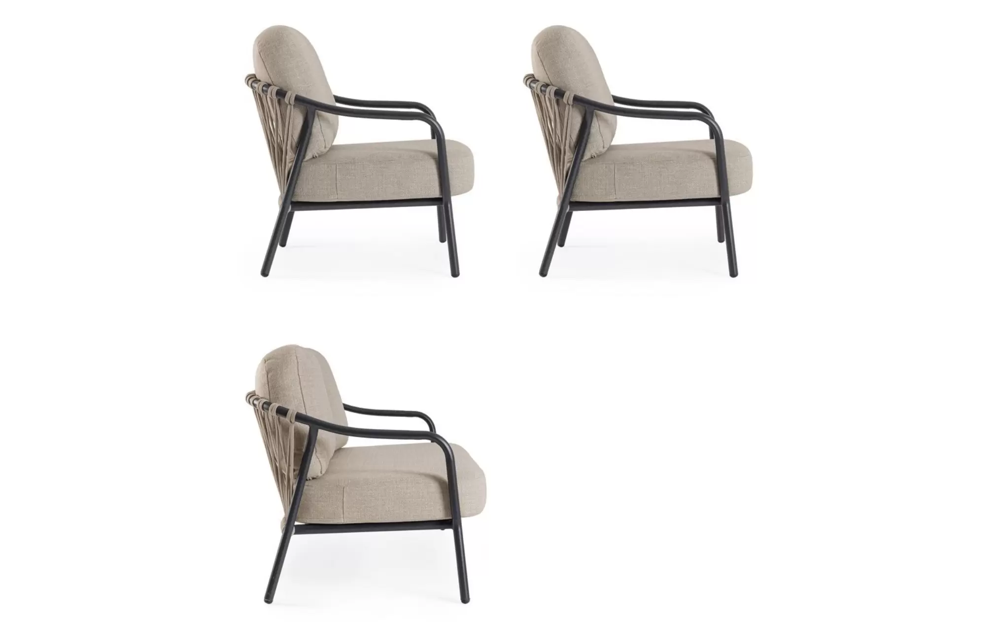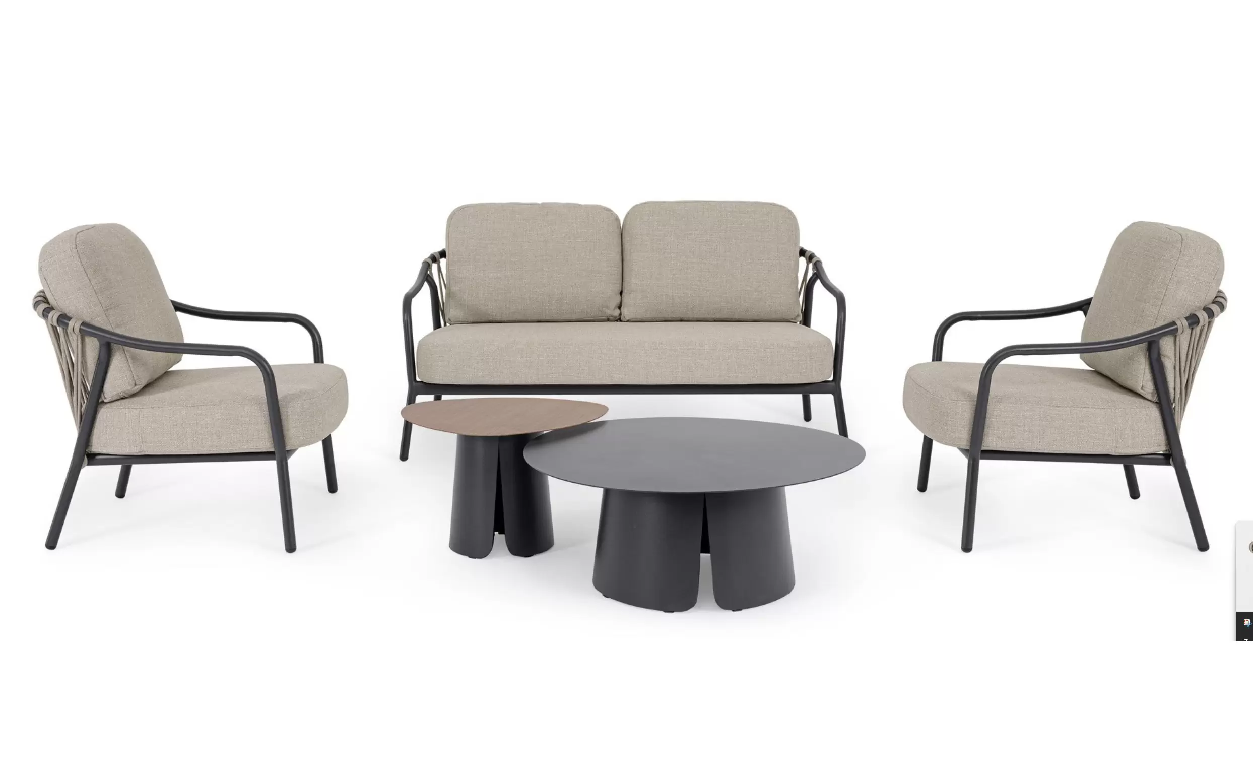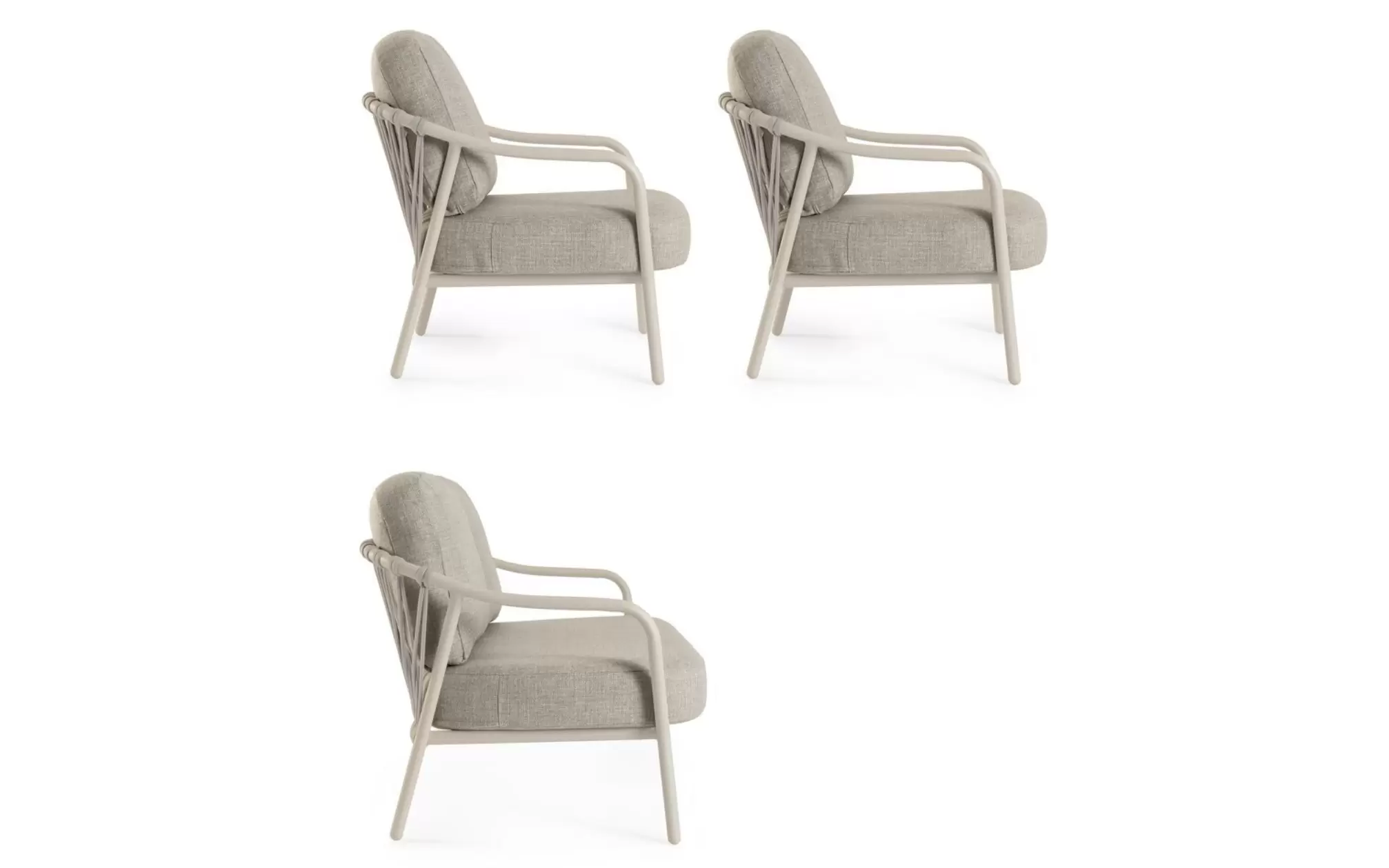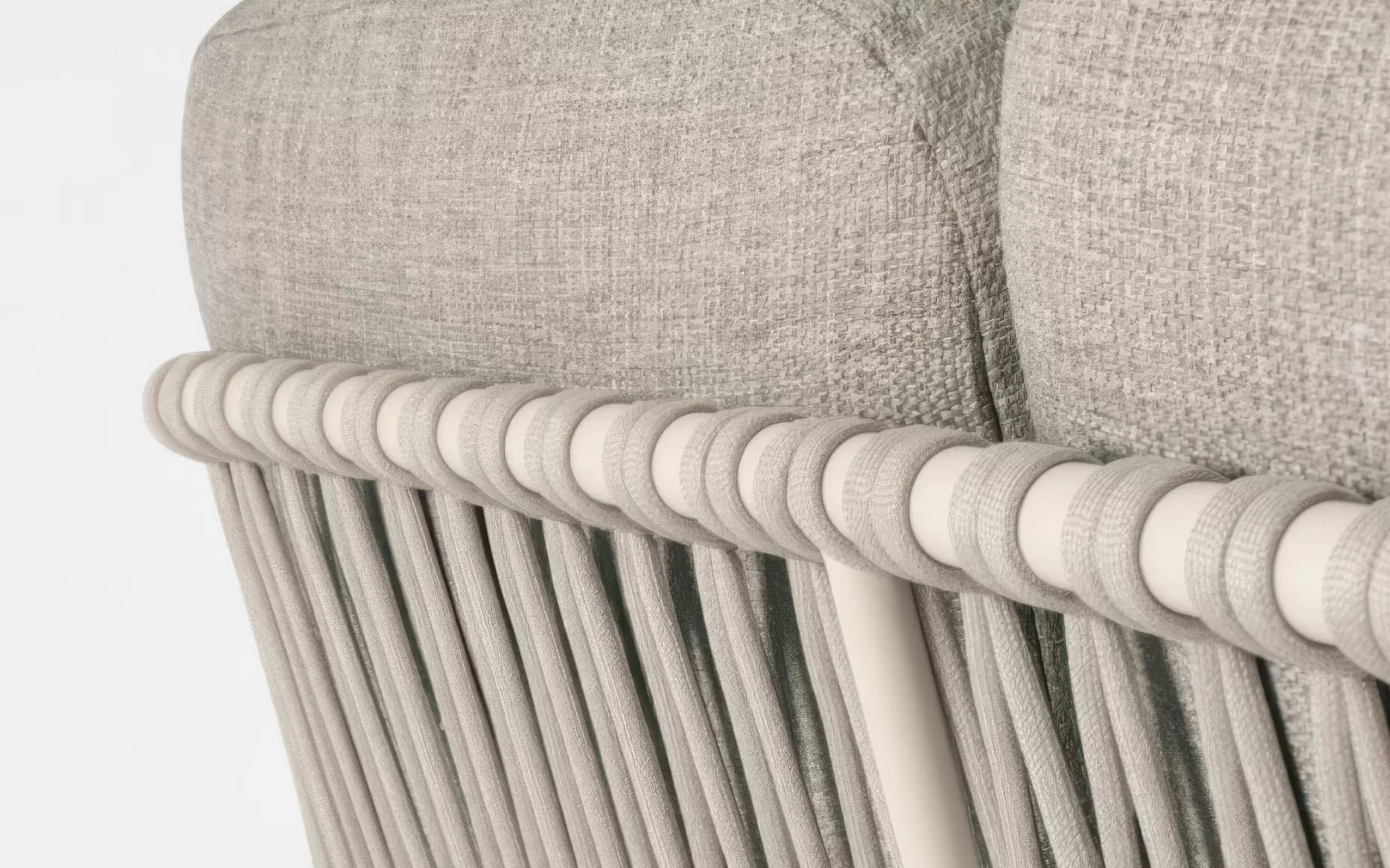 Fundamentem mebli są szkielety z aluminium malowanego proszkowo, które łączą w sobie niemal całkowitą odporność na korozję z niezwykłą lekkością, ułatwiającą dowolną rearanżację przestrzeni. Kolekcja dostępna jest w dwóch wariantach kolorystycznych: piaskowym (Pelican) oraz klasycznym antracycie, co pozwala na idealne dopasowanie zestawu do barw elewacji lub desek tarasowych. Charakterystycznym detalem są oparcia wykończone oplotem z grubej liny syntetycznej. Ta rzemieślnicza plecionka nie tylko nadaje meblom unikalnego, designerskiego wyrazu, ale zapewnia również stałą cyrkulację powietrza, co znacząco podnosi komfort siedzenia w upalne dni.