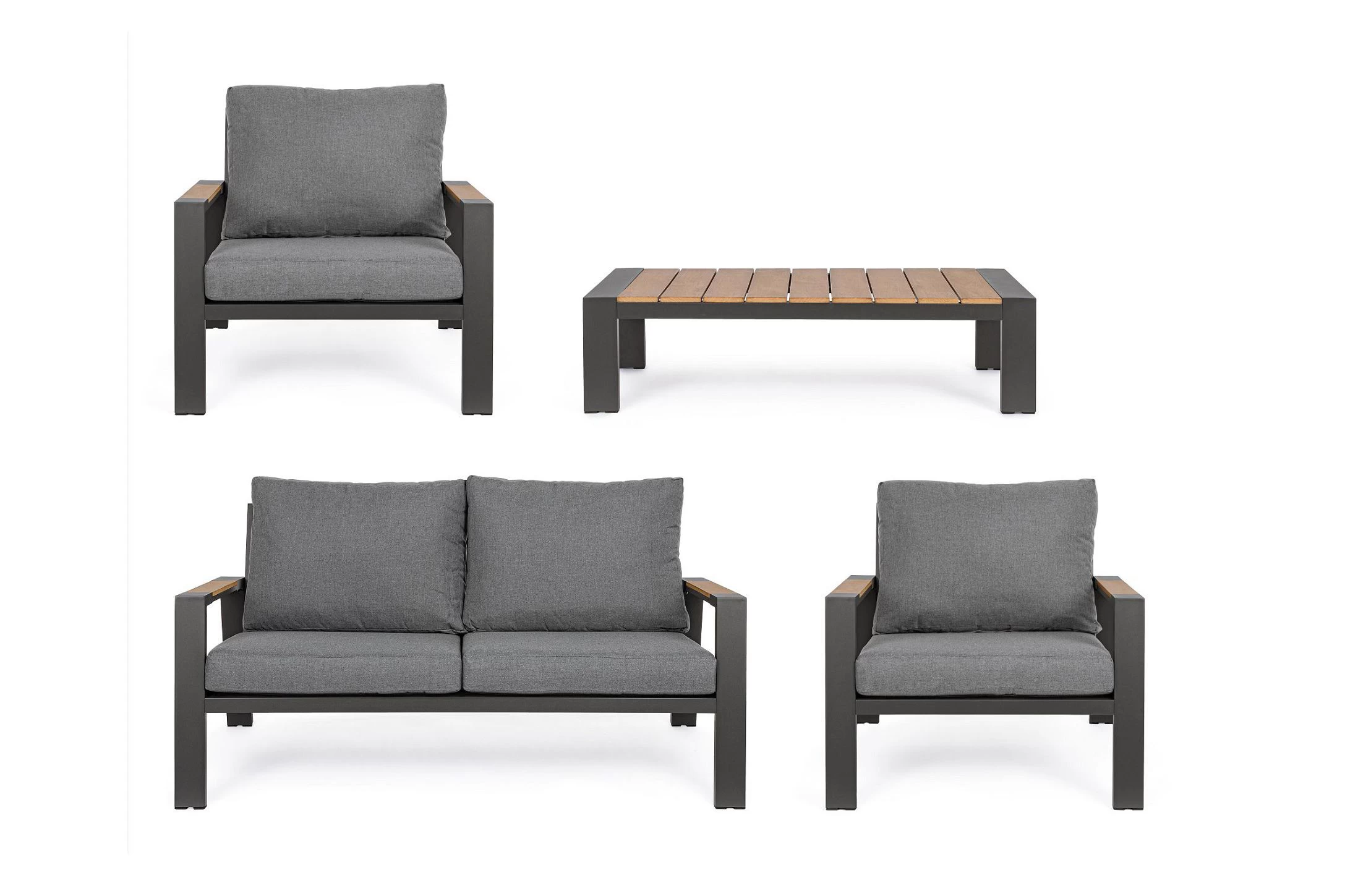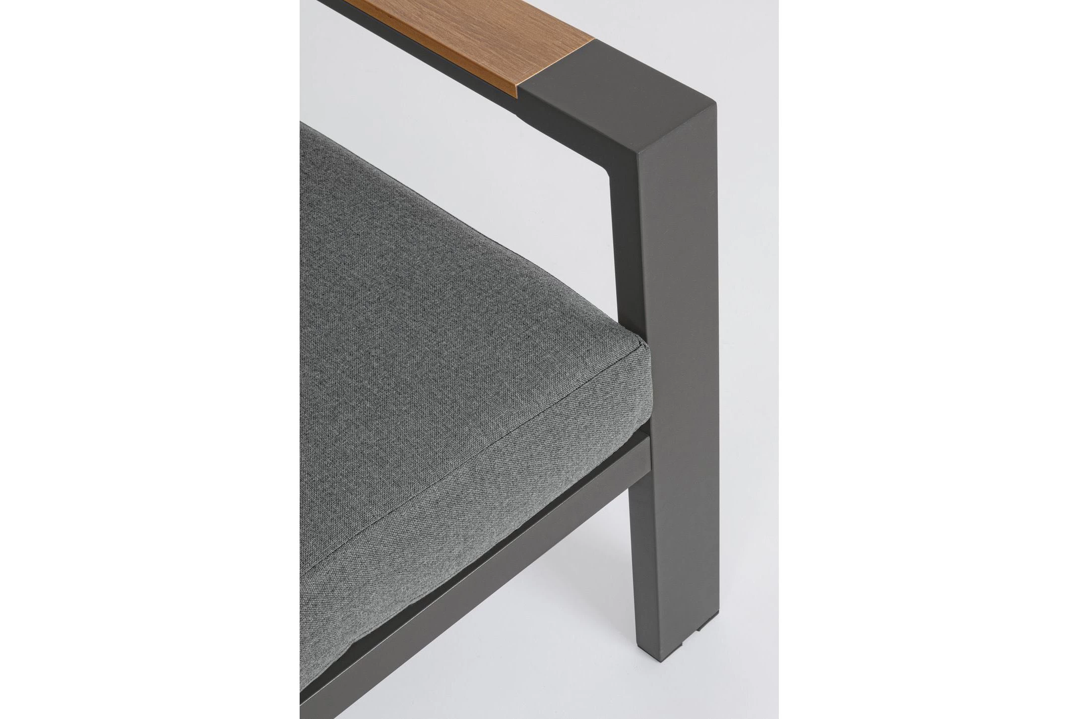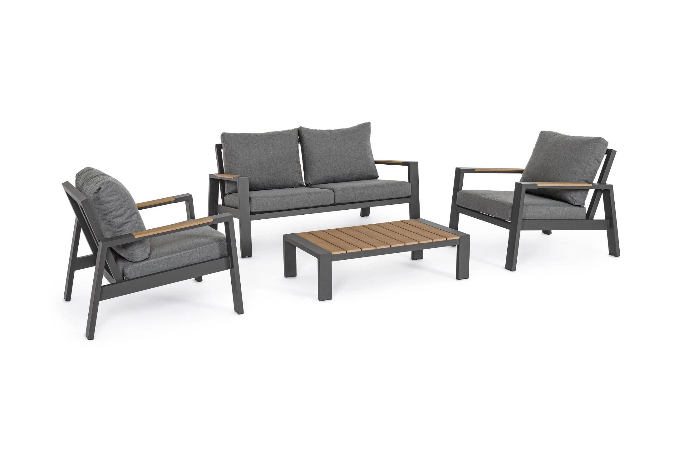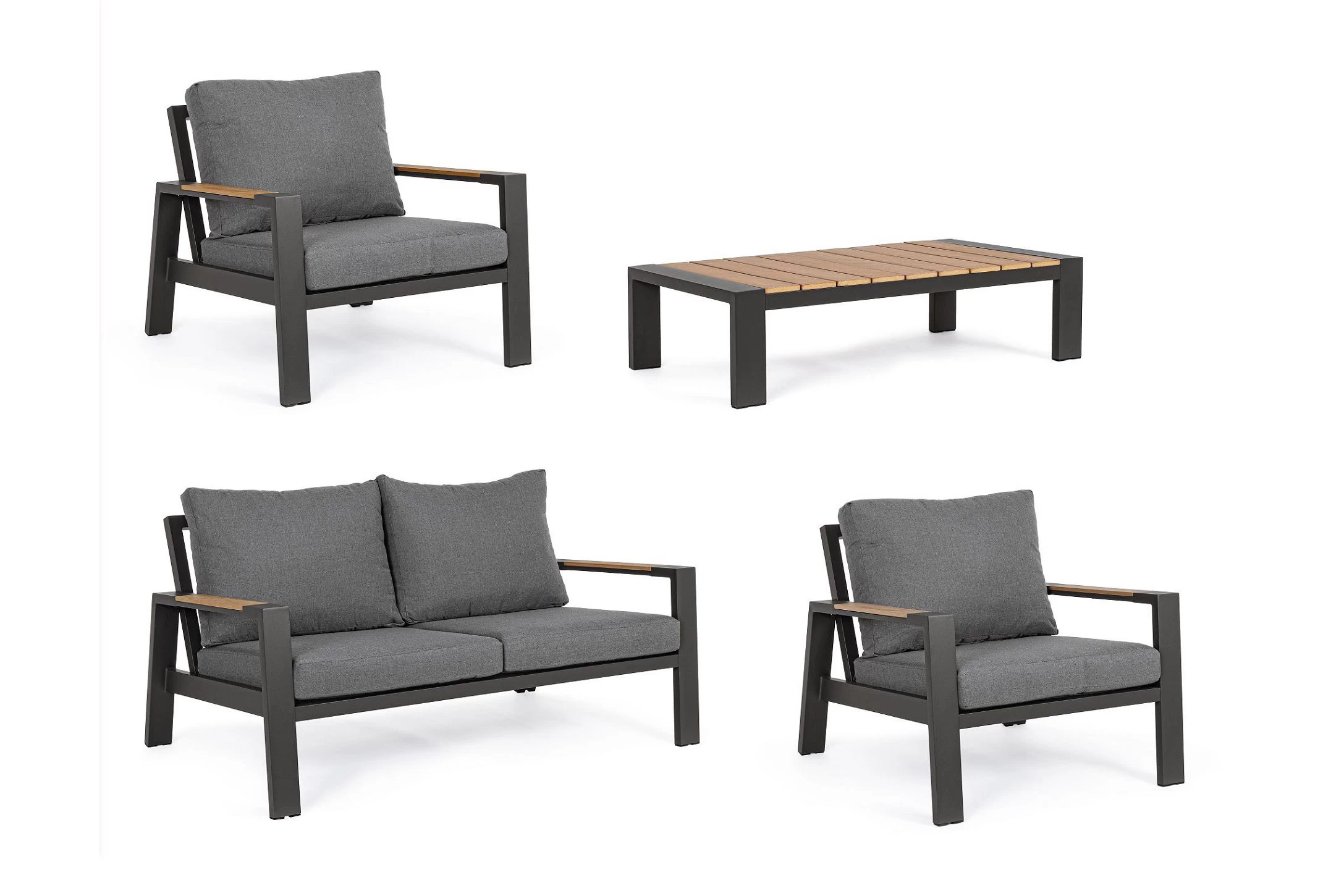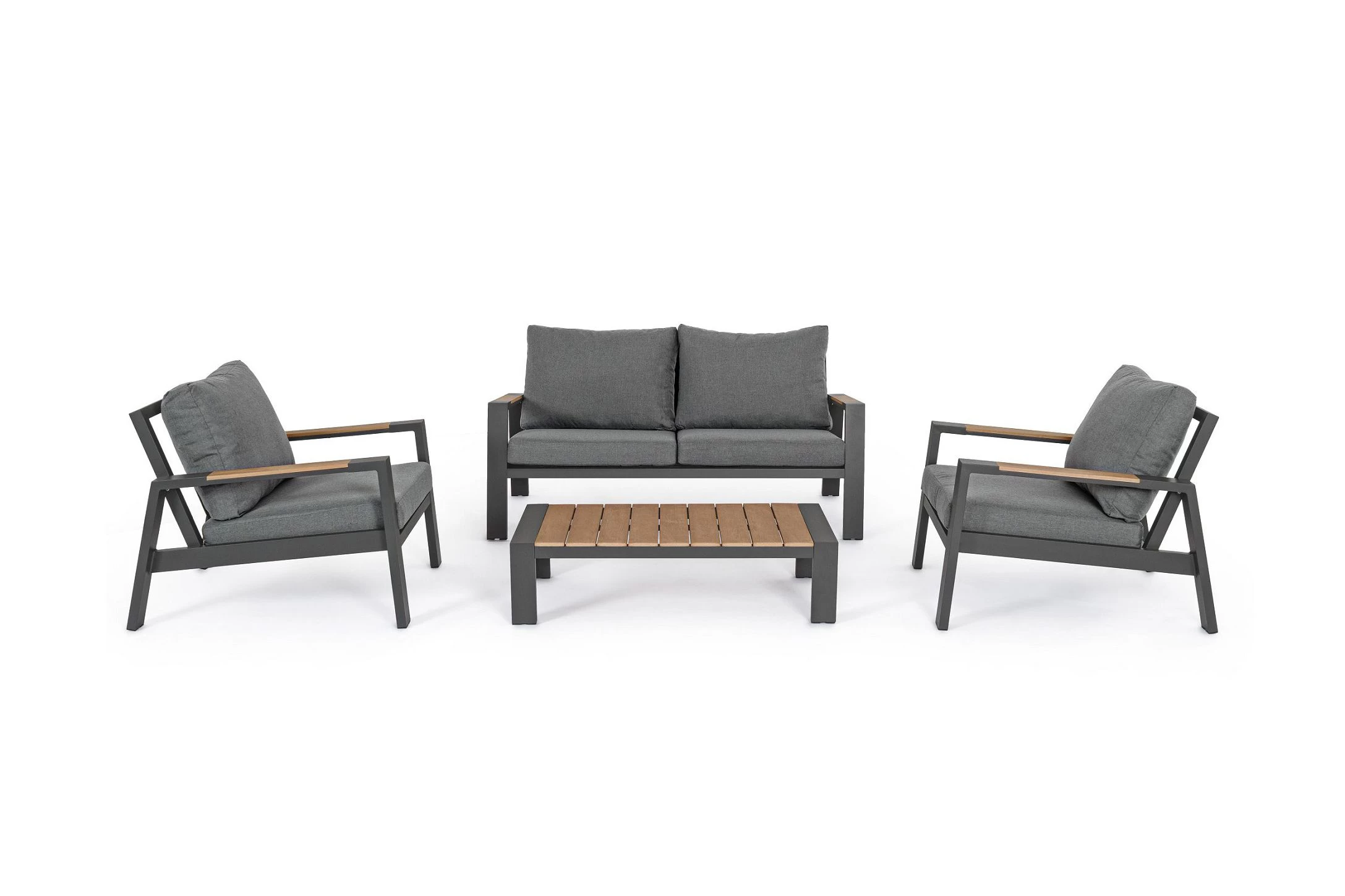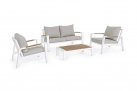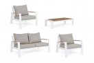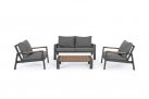 Zestaw wypoczynkowy aluminiowy ogrodowy z kompozytowymi wstawkami teak z 2-osobową sofą.