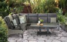 Wysokie i płynnie pochylane oparcia sofy i foteli gwarantują maksymalny komfort podczas odpoczynku na świeżym powietrzu. To idealne rozwiązanie dla osób ceniących sobie relaks i wypoczynek na tarasie.