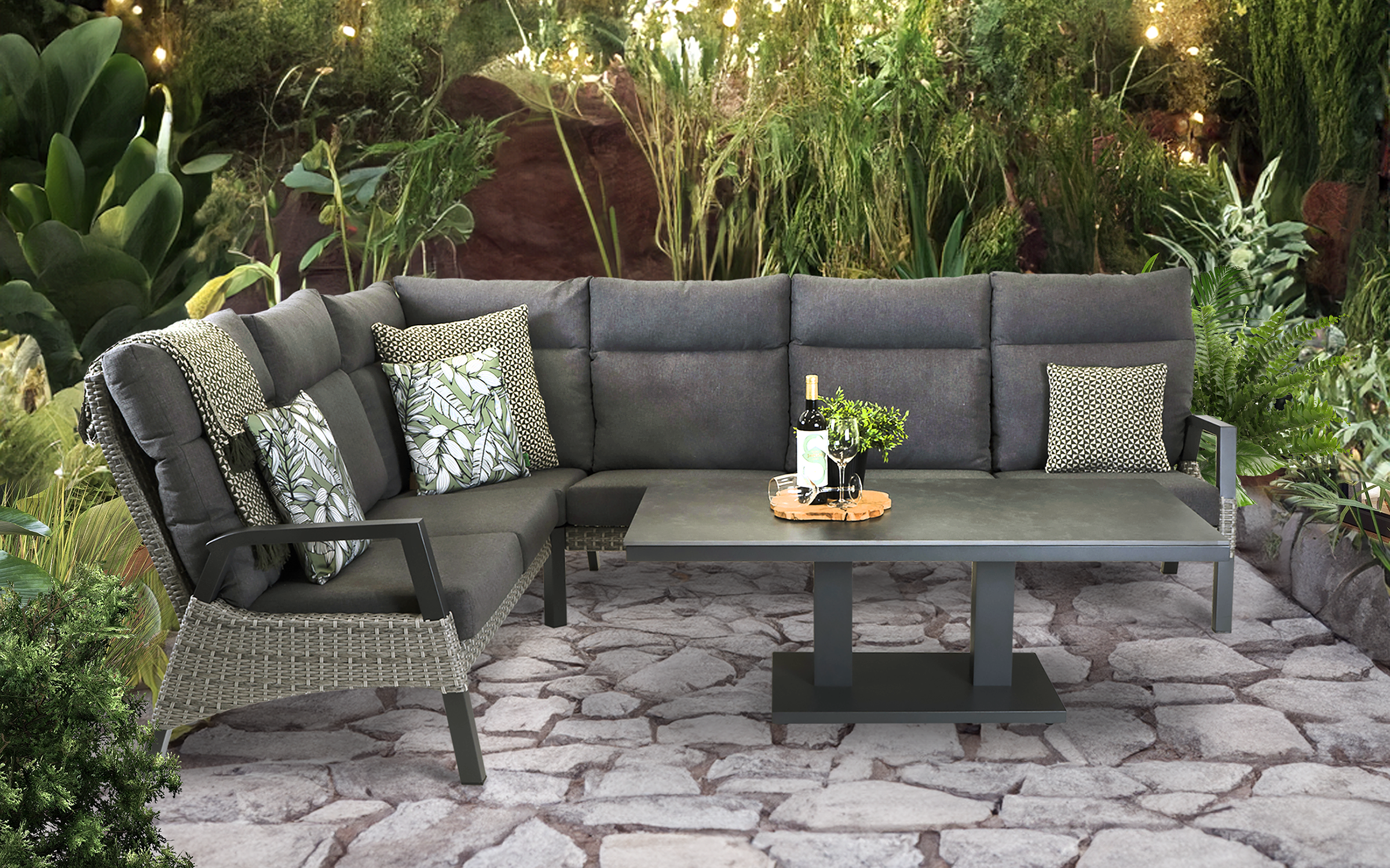 Zestaw wypoczynkowy aluminiowy w kolorze ciemnoszarym to nie tylko funkcjonalne rozwiązanie, ale i elegancki element wyposażenia dla Twojego tarasu. Składa się on z czterech elementów: wygodnej sofy 3-osobowej, dwóch foteli oraz praktycznego stołu z podnoszonym blatem.