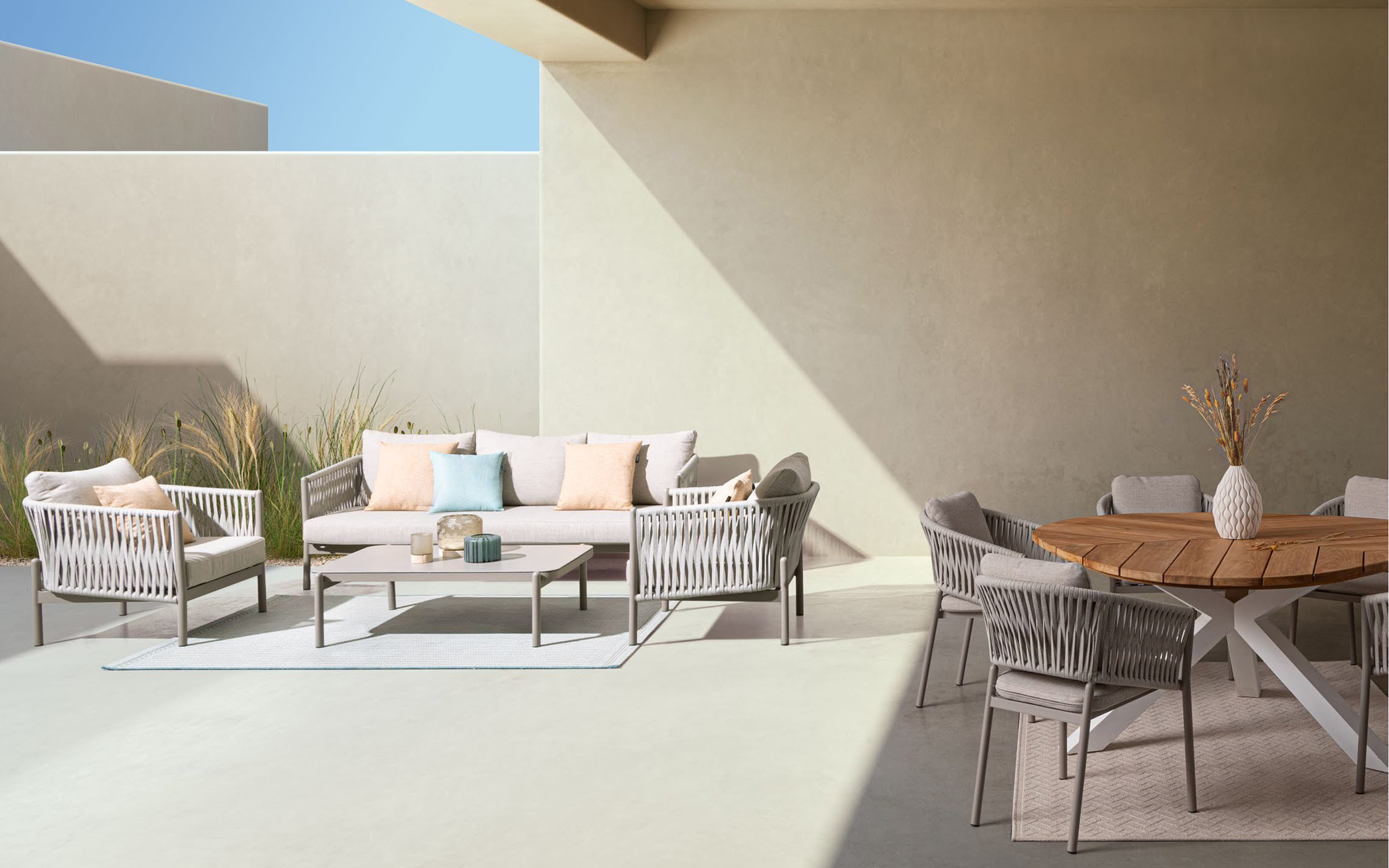 Aluminiowe meble ogrodowe FLORENCIA na nowoczesny taras. Każdy element kolekcji FLORENCIA można nabyć osobno.