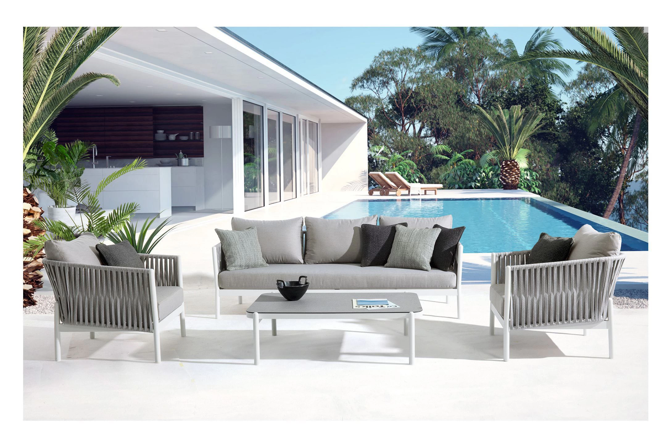 Aluminiowa sofa ogrodowa FLORENCIA na nowoczesny taras. Każdy element kolekcji FLORENCIA można nabyć osobno.