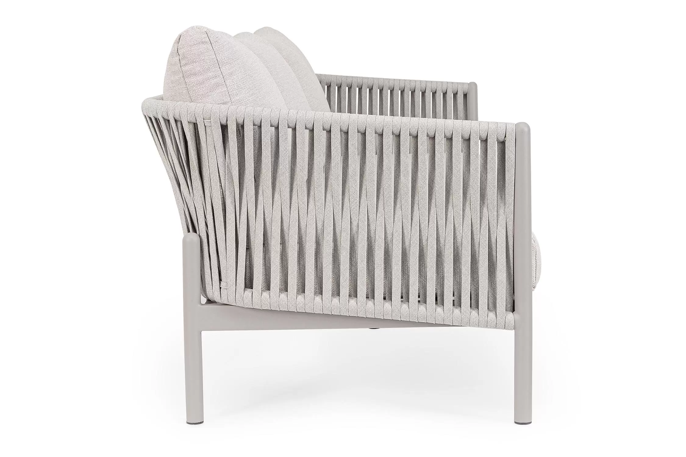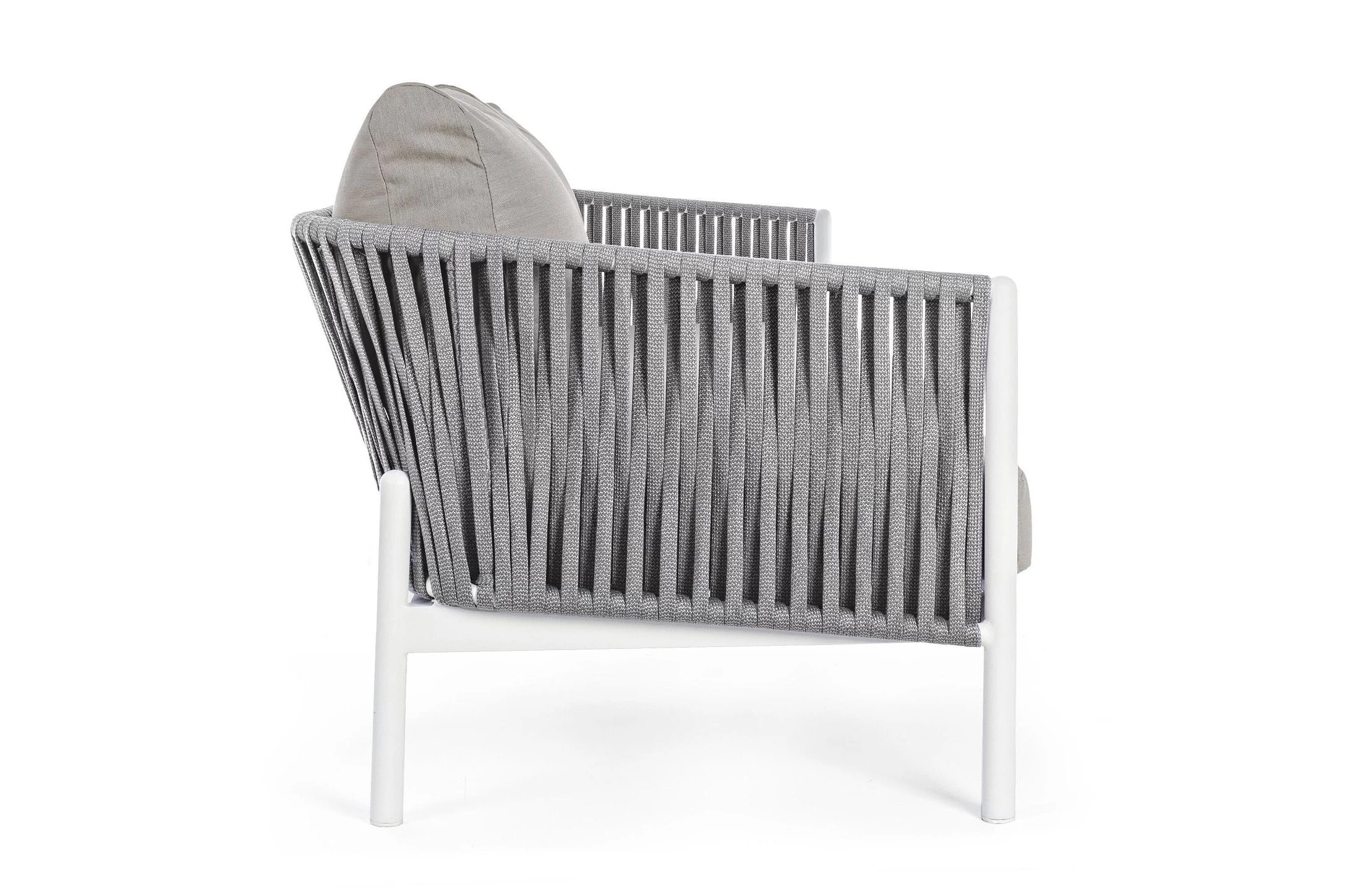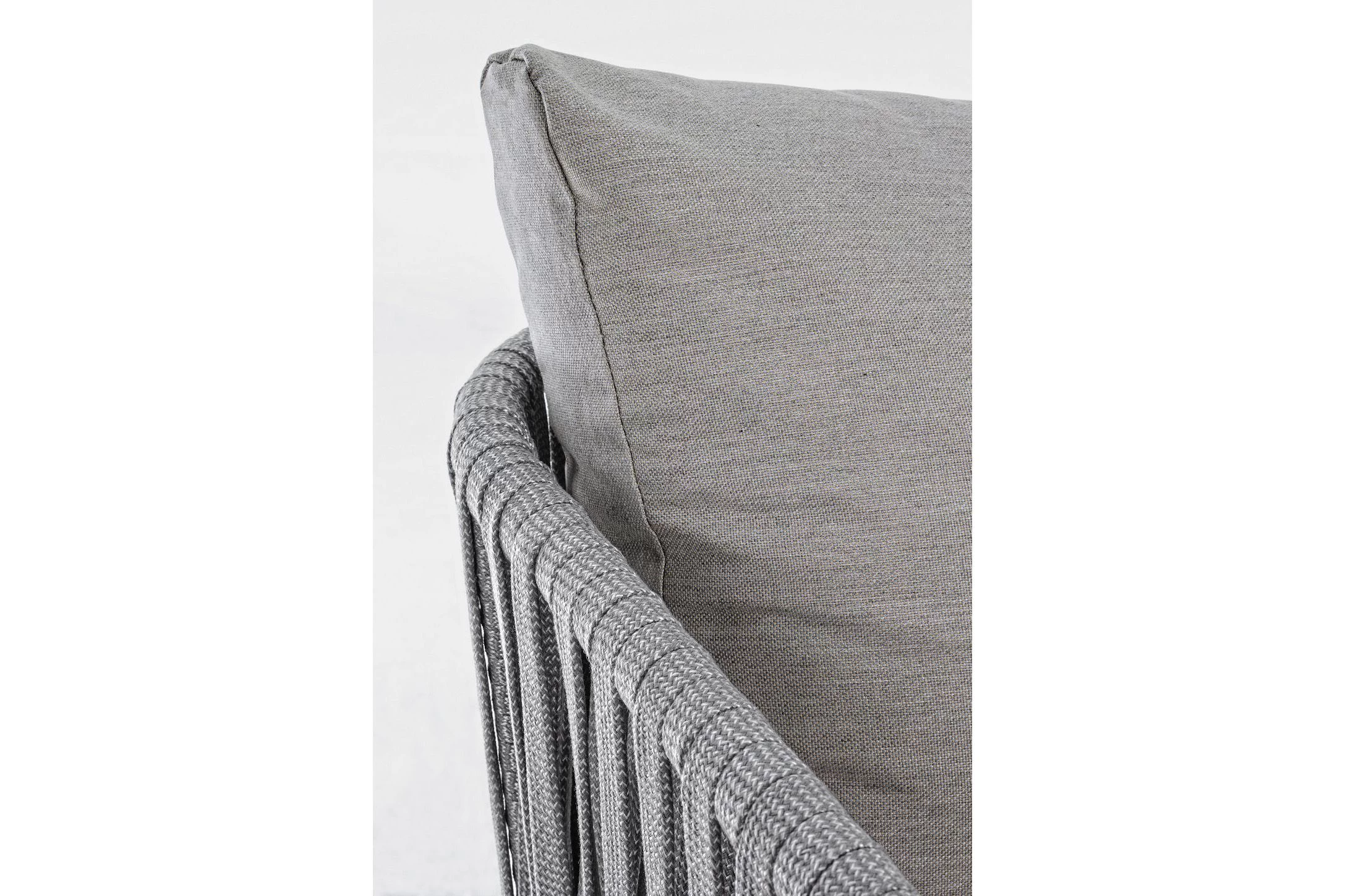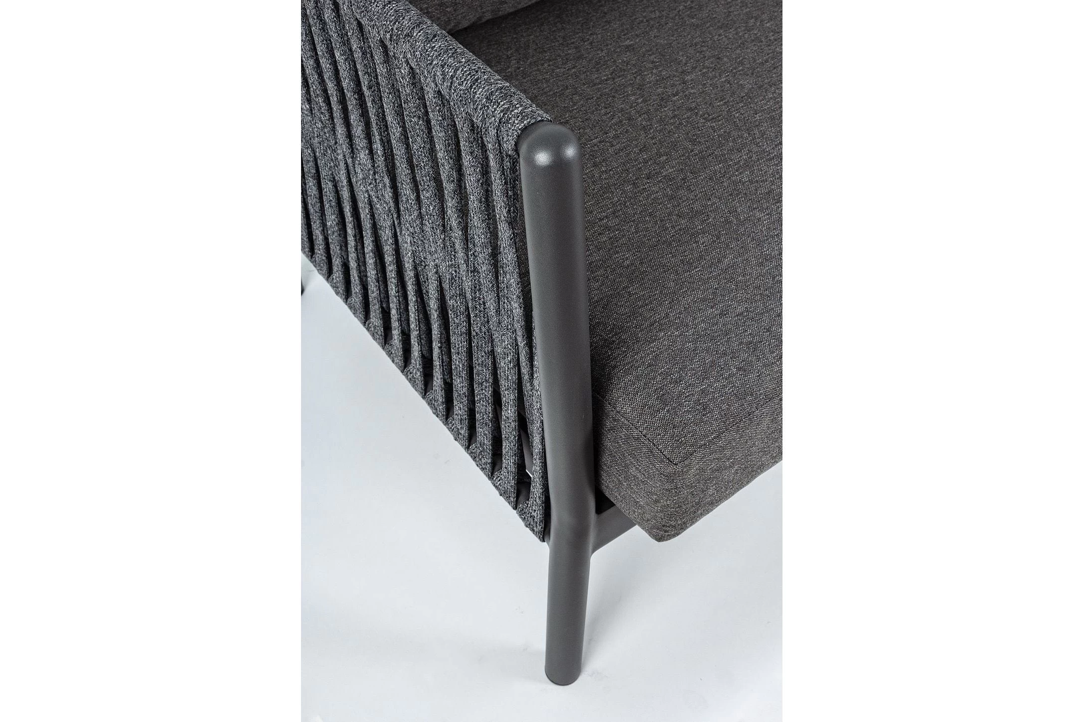 Boki i oparcie oplecione liną polipropylenową, wodoodporne i odporne na uv.
