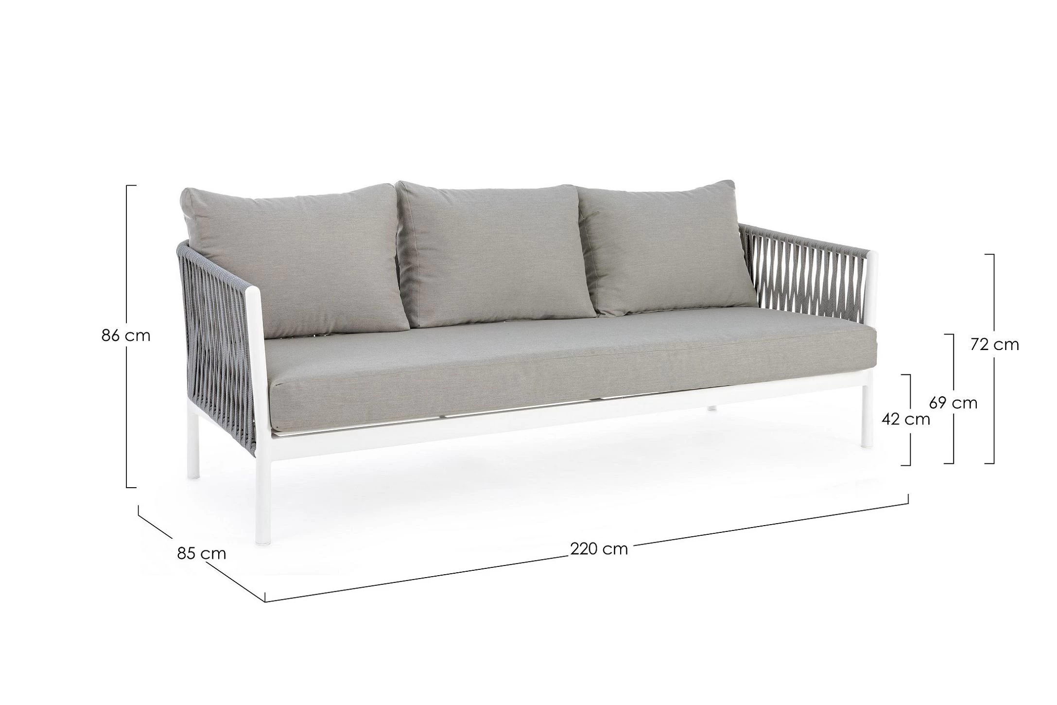 Szerokość 200 cm / Głębokość 85 cm / Wysokość 86 cm (72 cm do oparcia)