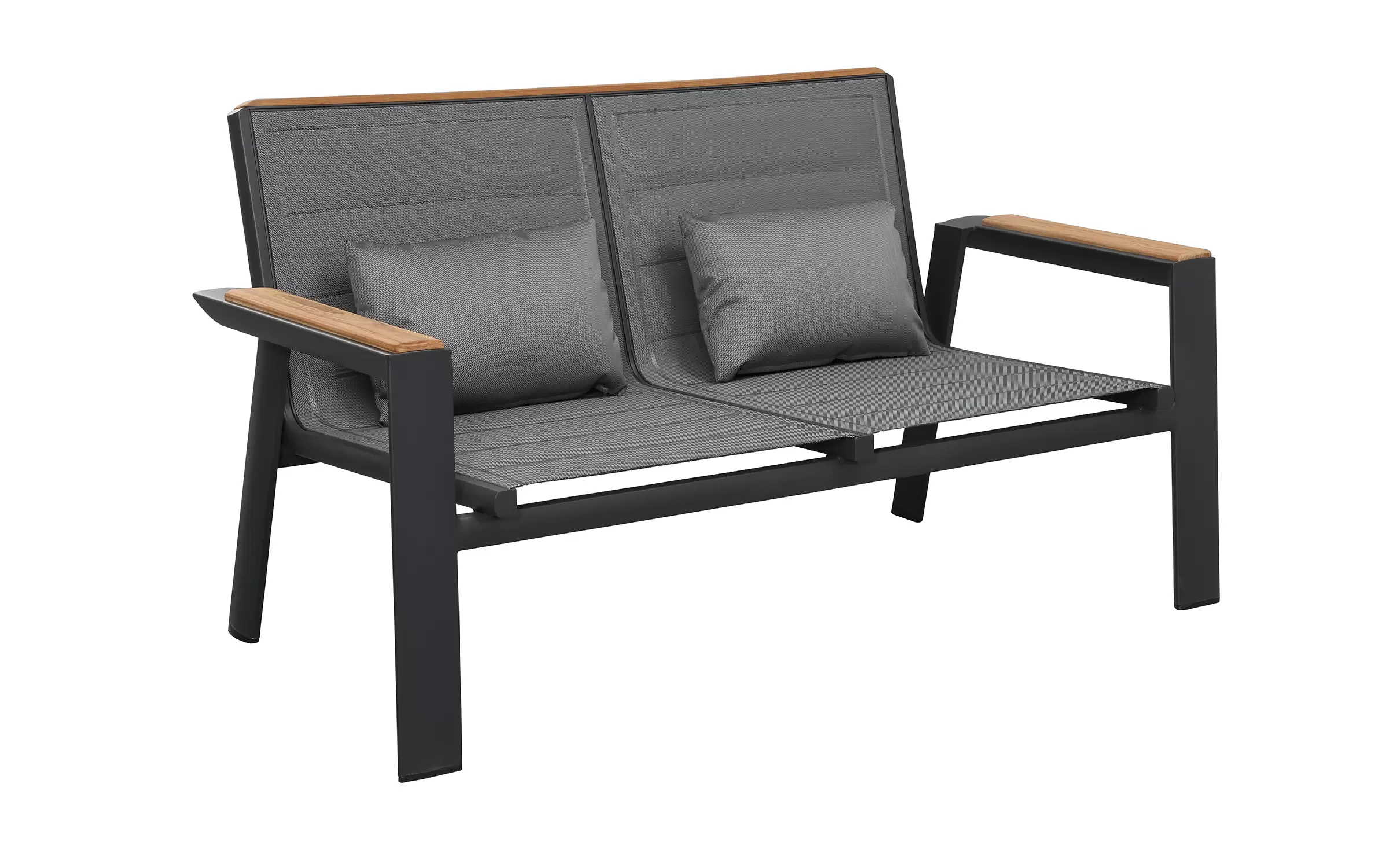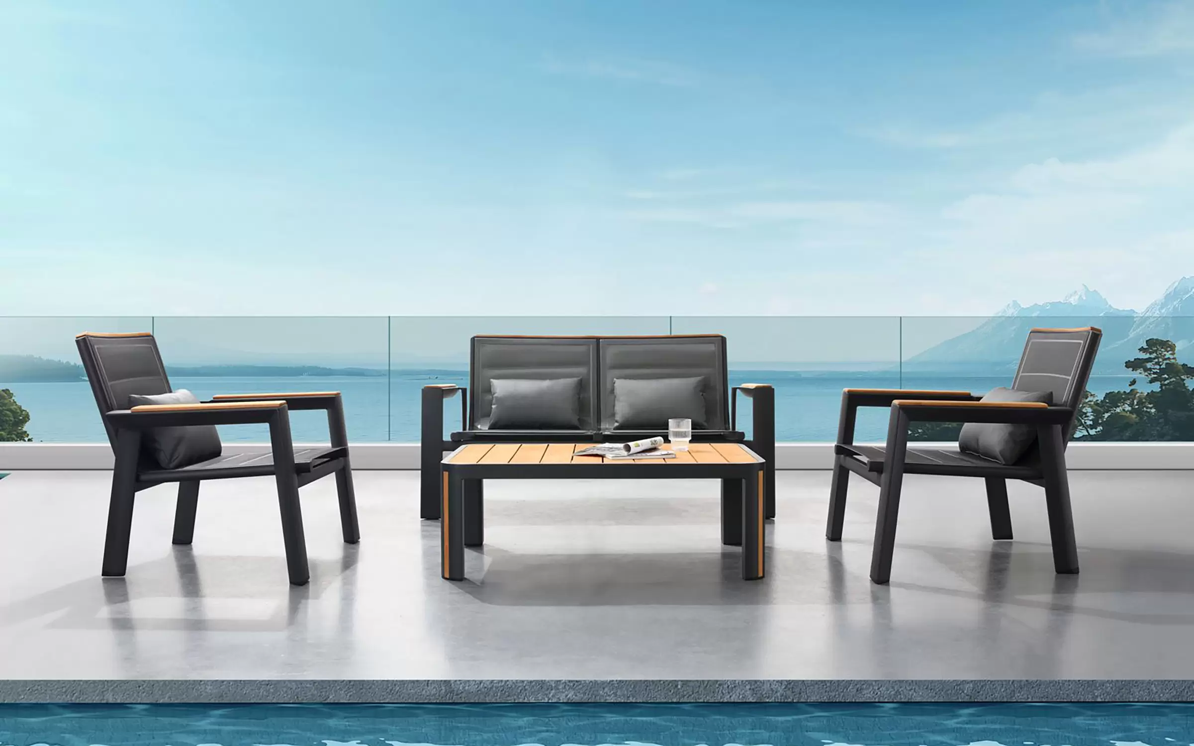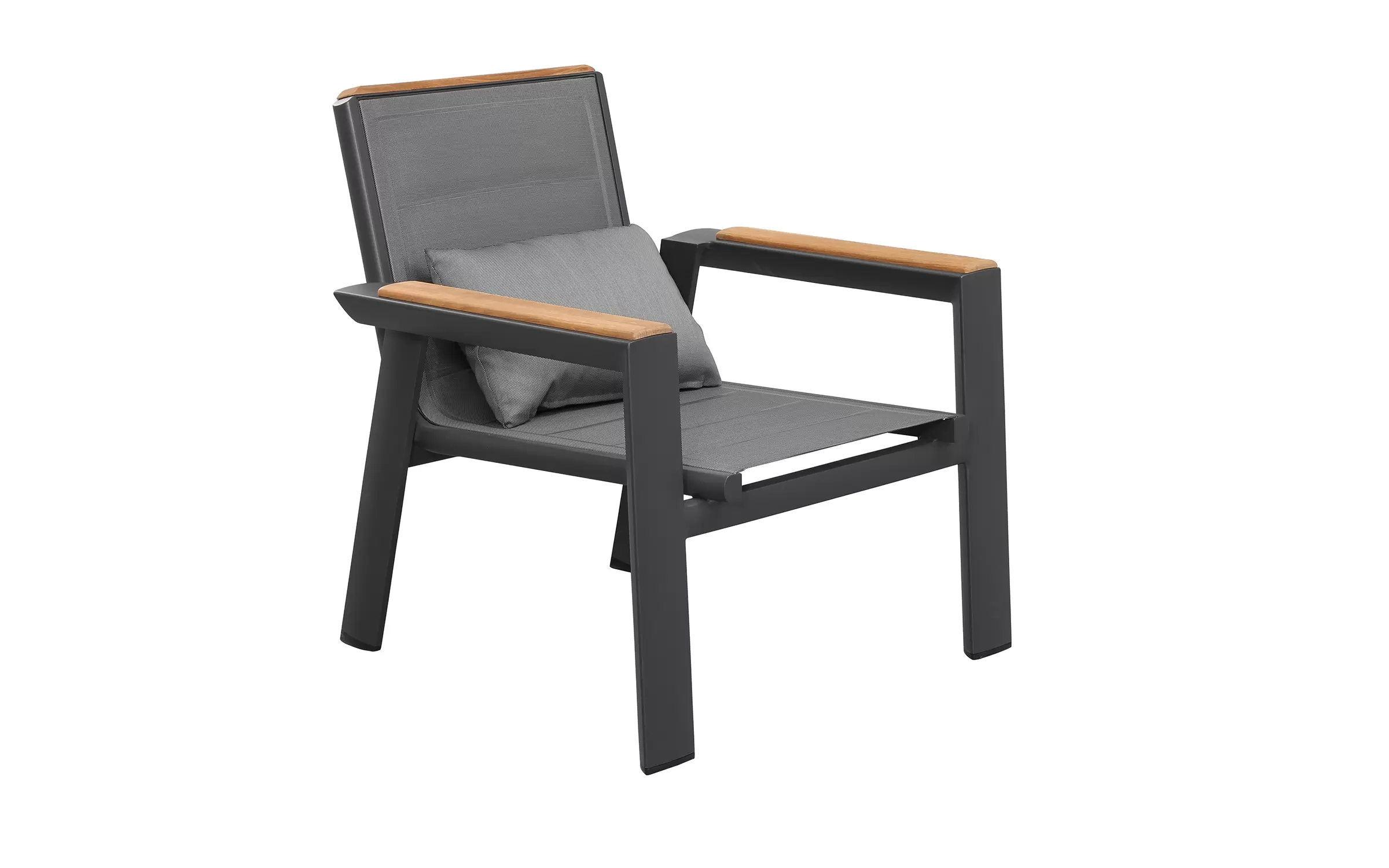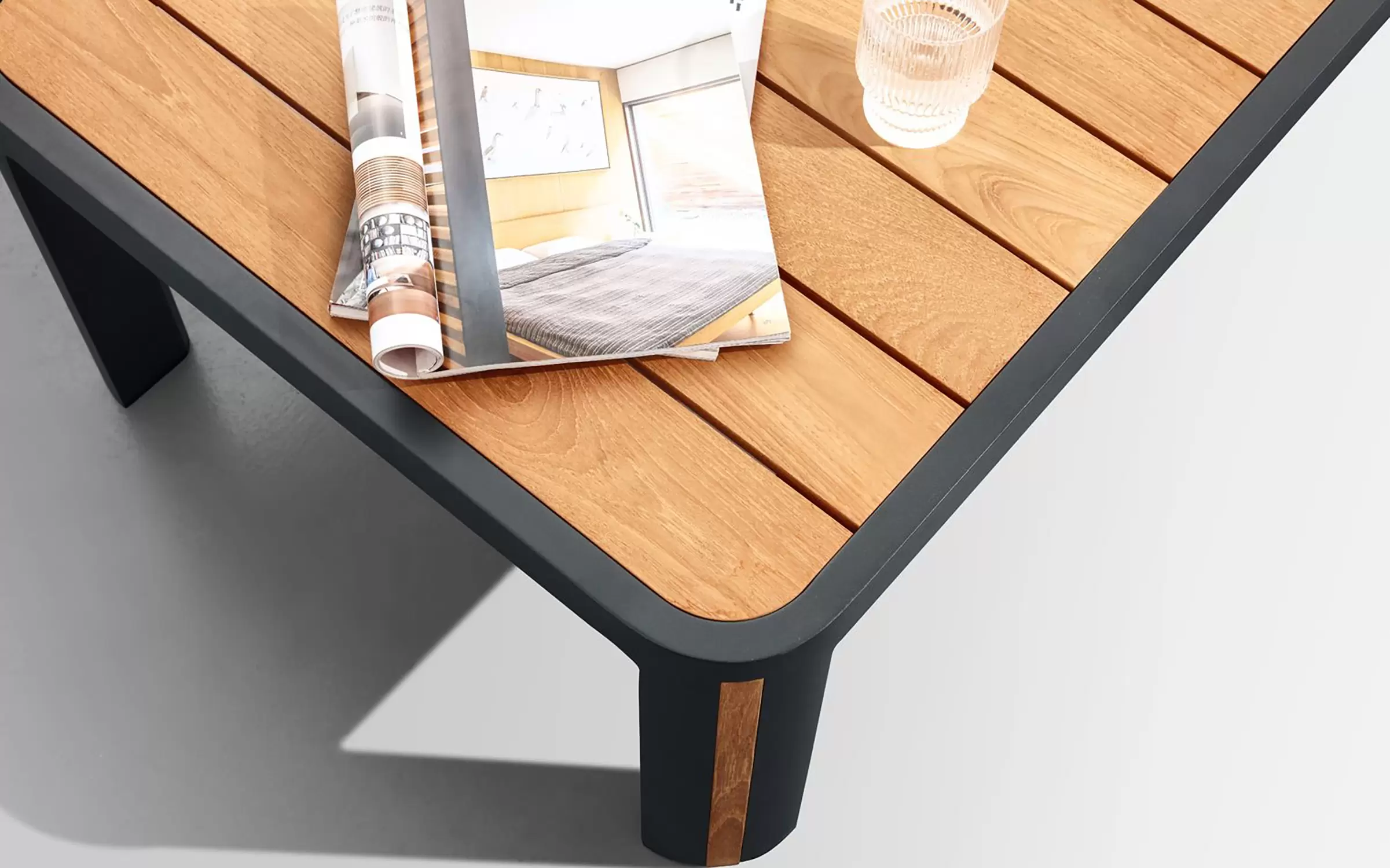 Zaprojektowany i wykonany z najwyższą jakością i detalami nowoczesny modułowy komplet wypoczynkowy na taras firmy HIGOLD. Konstrukcja opiera się na spawanej ramie aluminiowej malowanej proszkowo, elementach dekoracyjnych z teaku i wygodnych poduszek z obiciami z materiału Olefin. Oparcie oplecione wysokiej jakości beżową liną polipropylenową odporną zarówno na warunki atmosferyczne panujące w Polsce.